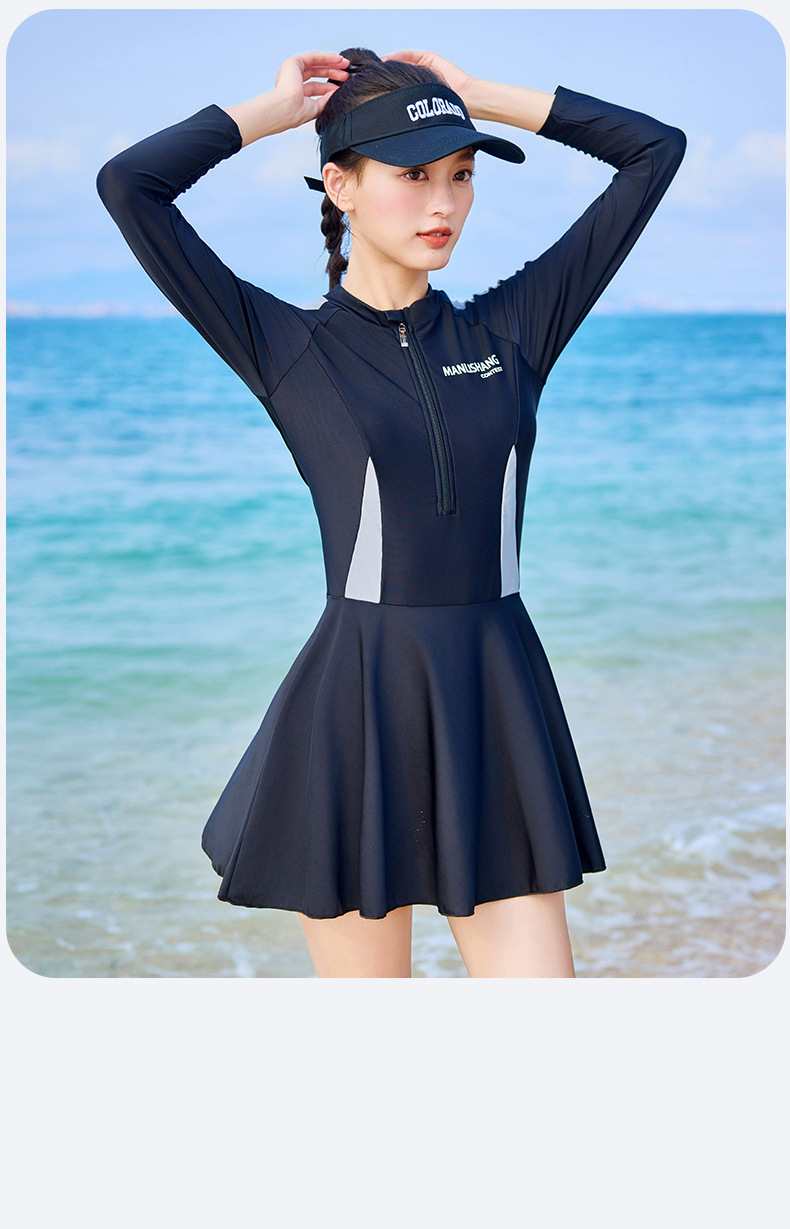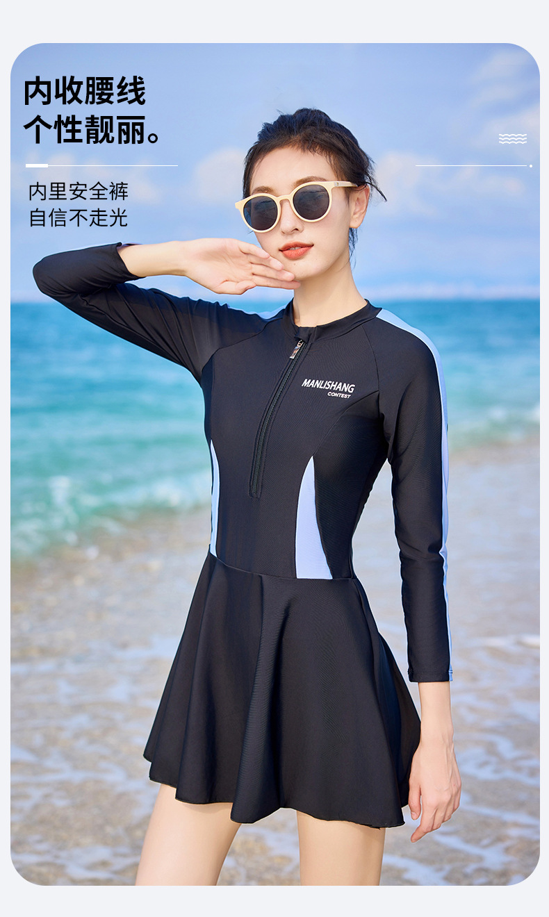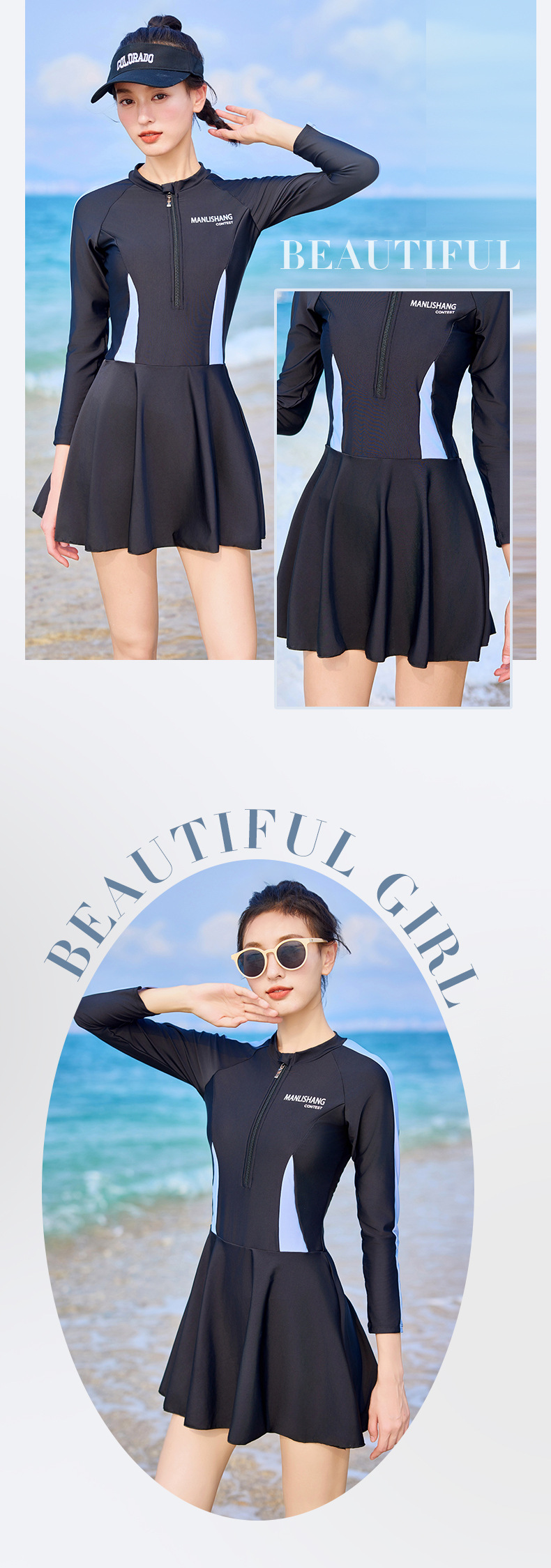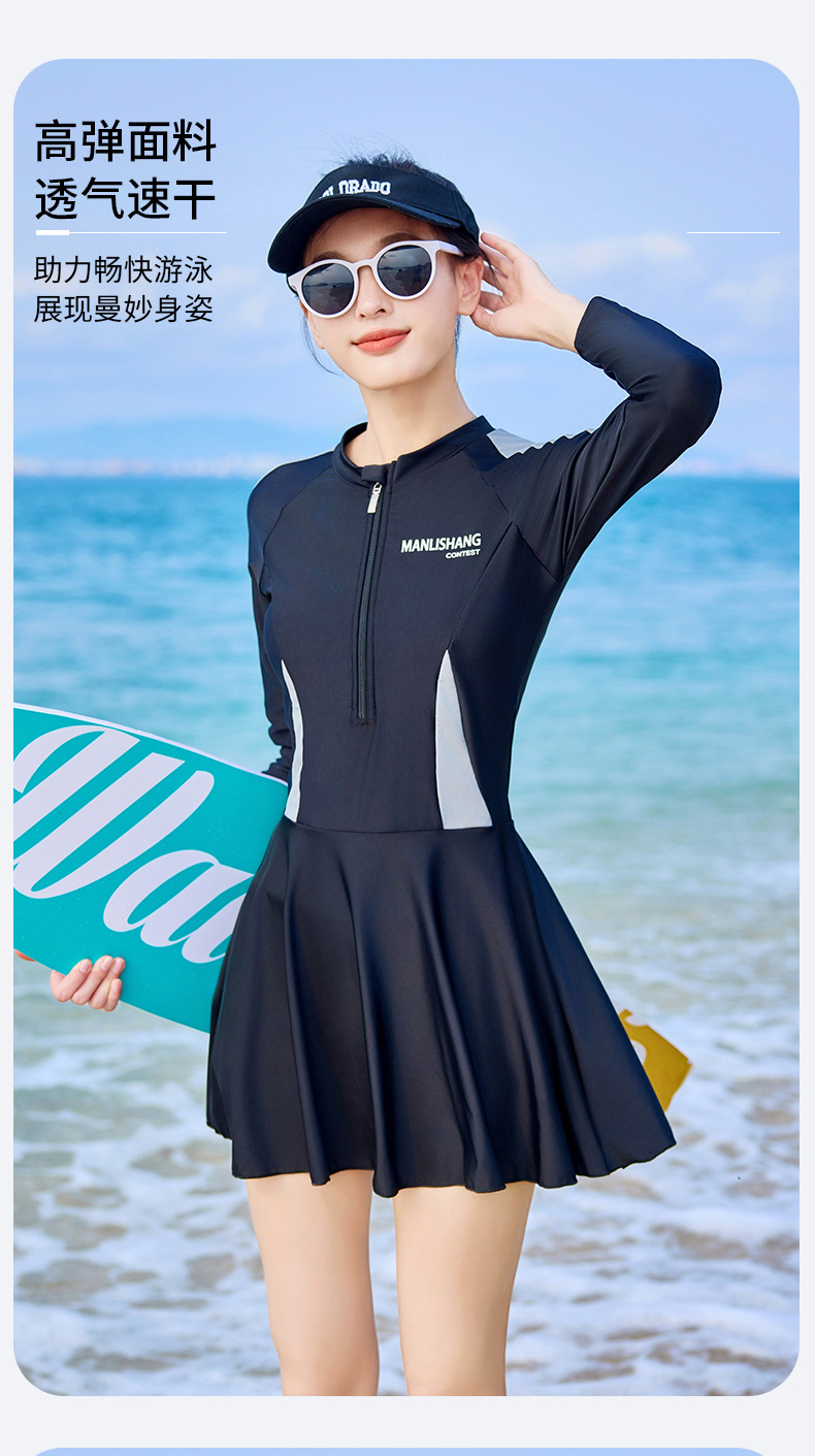 블랙 수영복 여성 원피스 긴팔 자외선 차단제 배 커버 슬리밍 새로운 대형 보수적 수영복 캐주얼 스포츠 수영복스토어 가기