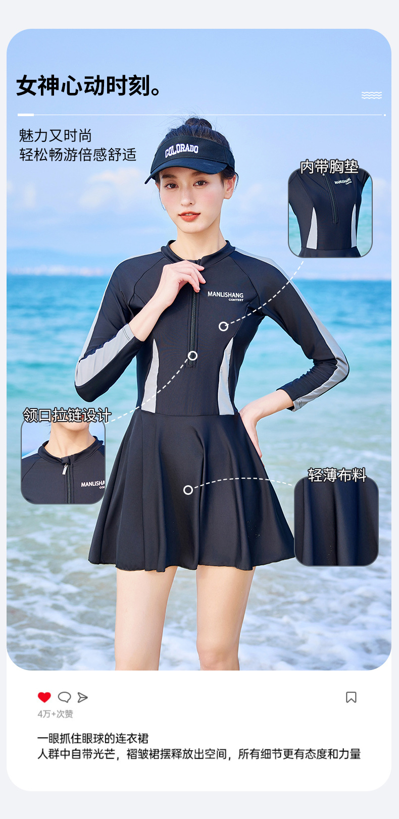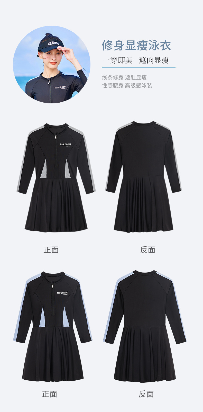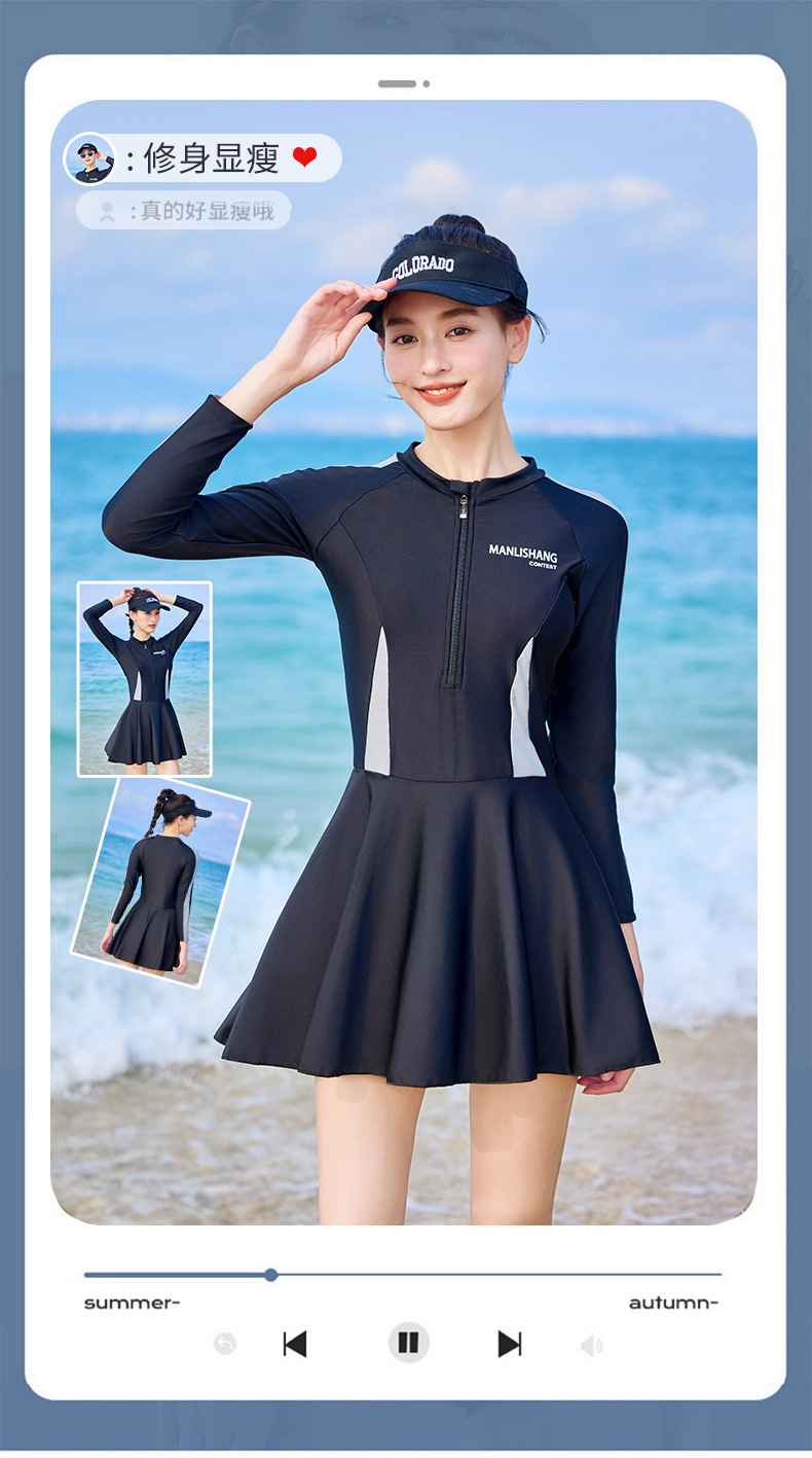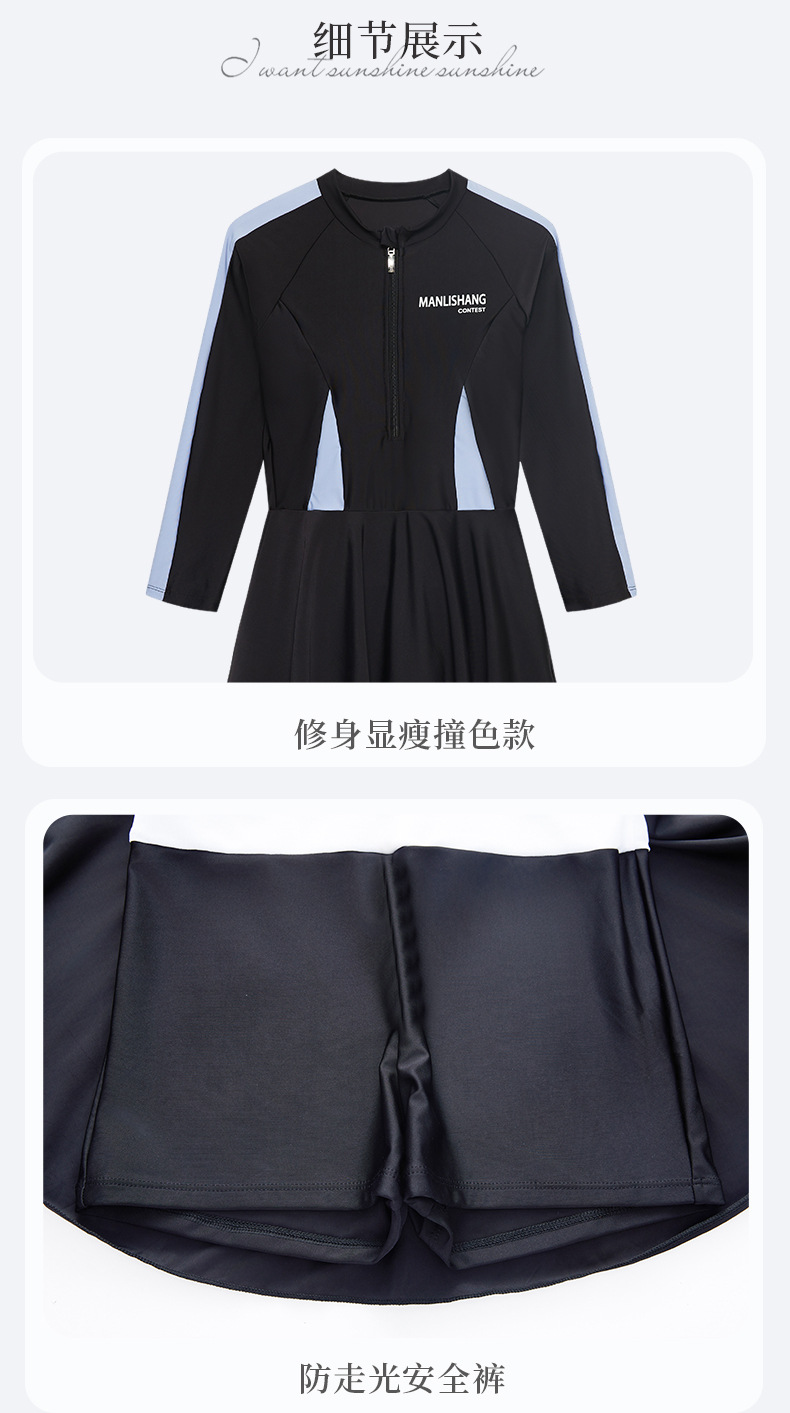 블랙 수영복 여성 원피스 긴팔 자외선 차단제 배 커버 슬리밍 새로운 대형 보수적 수영복 캐주얼 스포츠 수영복스토어 가기