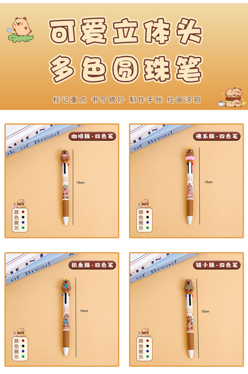 카피 발라 4 색 볼펜 푸시 귀여운 카피 바라 멀티 컬러 일대일 푸시 학생 컬러 마킹 펜