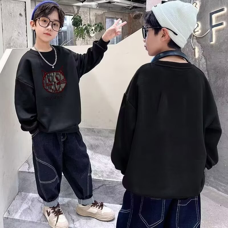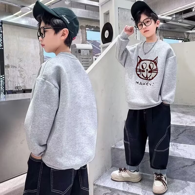어린이 의류 소년 잘 생긴 스웨트 셔츠 2024 새로운 어린이 가을 및 겨울 캐주얼 올 매치 보이 겨울 프라이드 스트리트 겨울 의류스토어 가기