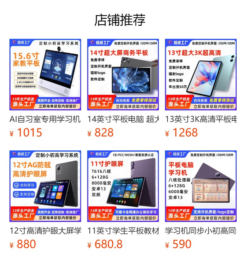 소스 공장 태블릿 컴퓨터 학습 기계 사용자 정의 개발 10.1 인치 HD 눈 보호 화면 동기화 작은 중학교 교재스토어 가기