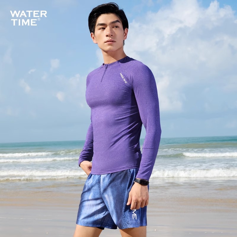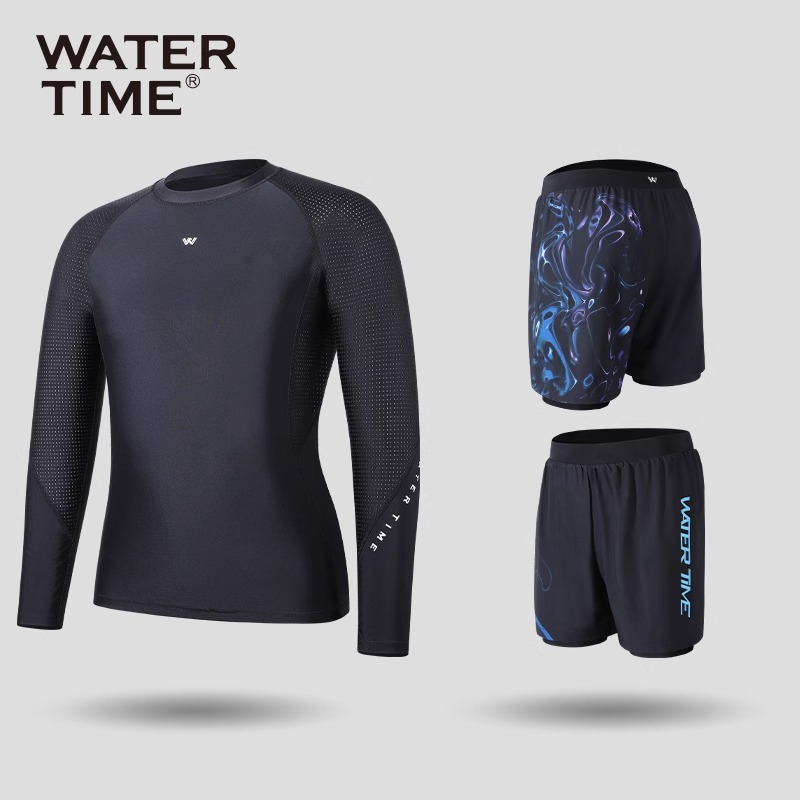 • 남색 긴팔 + 복층 사각수영복 [투피스세트]