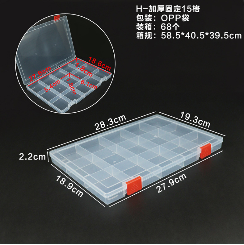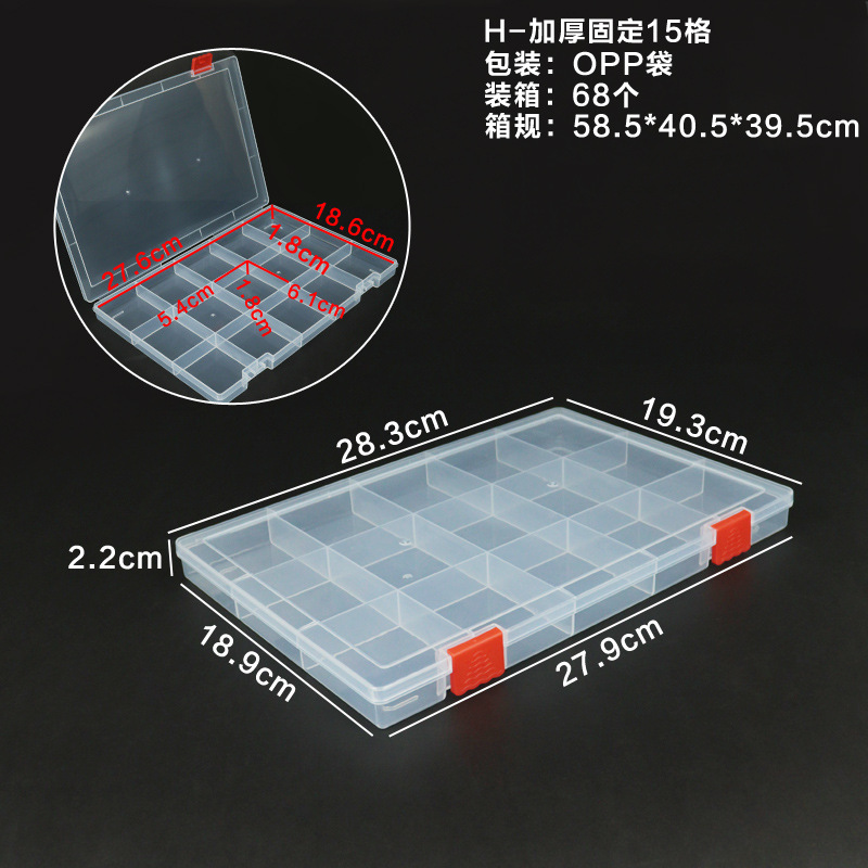 두꺼운 고정 15 그리드 투명 플라스틱 보관 상자 구슬 하드웨어 도구 보석 낚시 장비 PP 정리 포장 상자스토어 가기