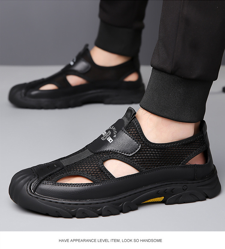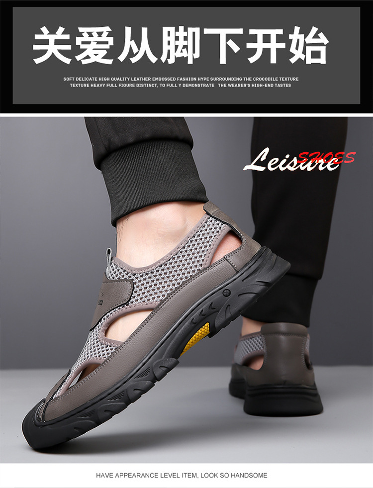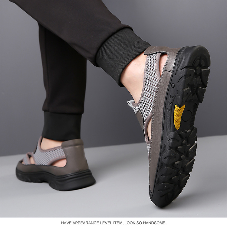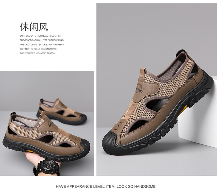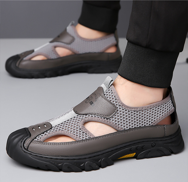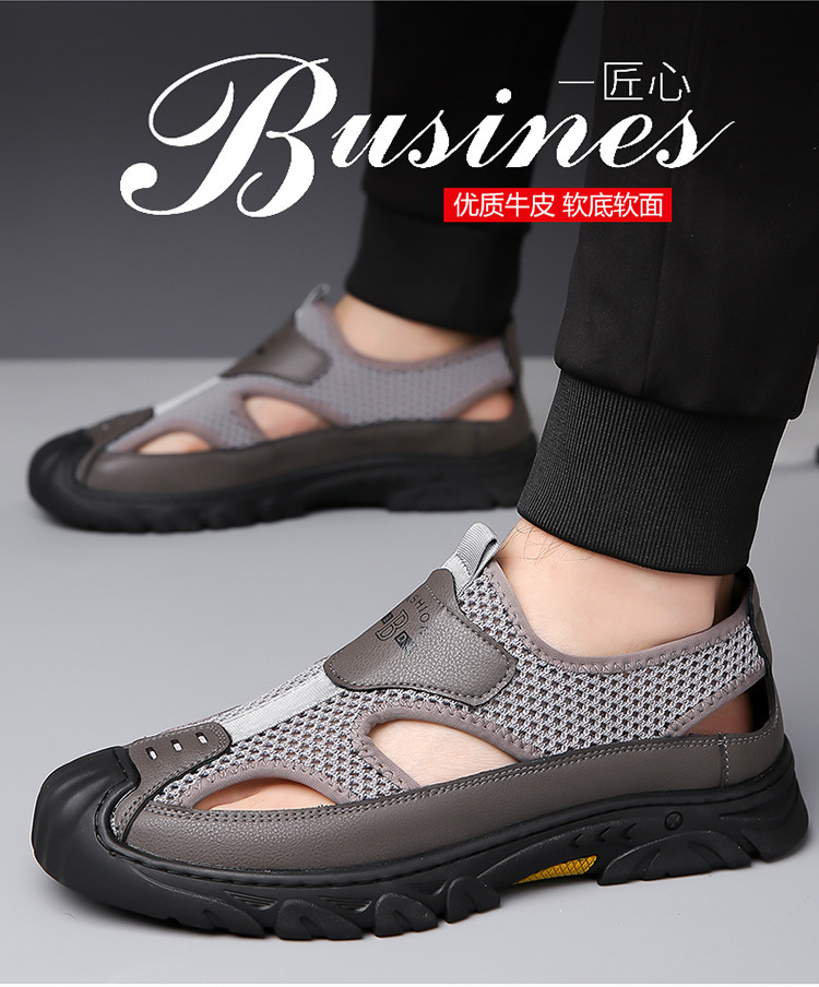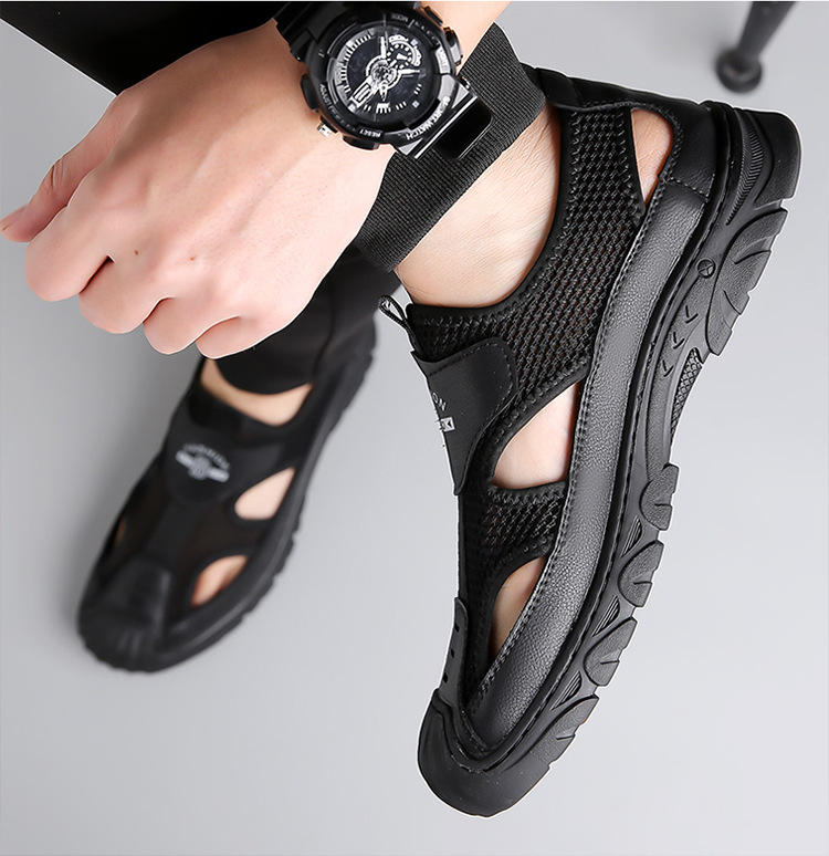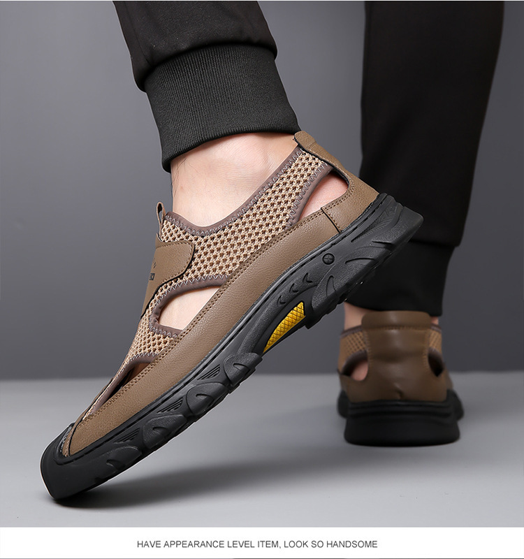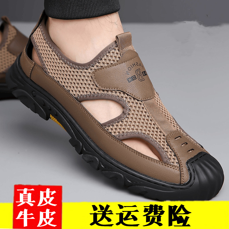 Parmat Xuanqi Bo Niu Shengli 마 샌들 남성 여름 새로운 야외 캐주얼 가죽 메쉬 중공 구멍 신발