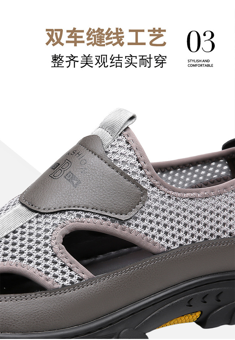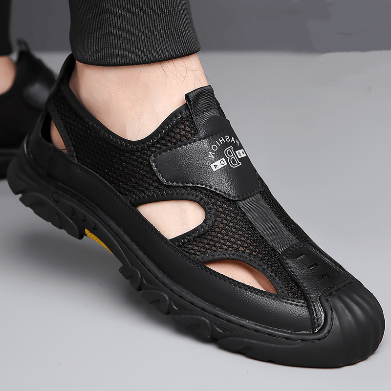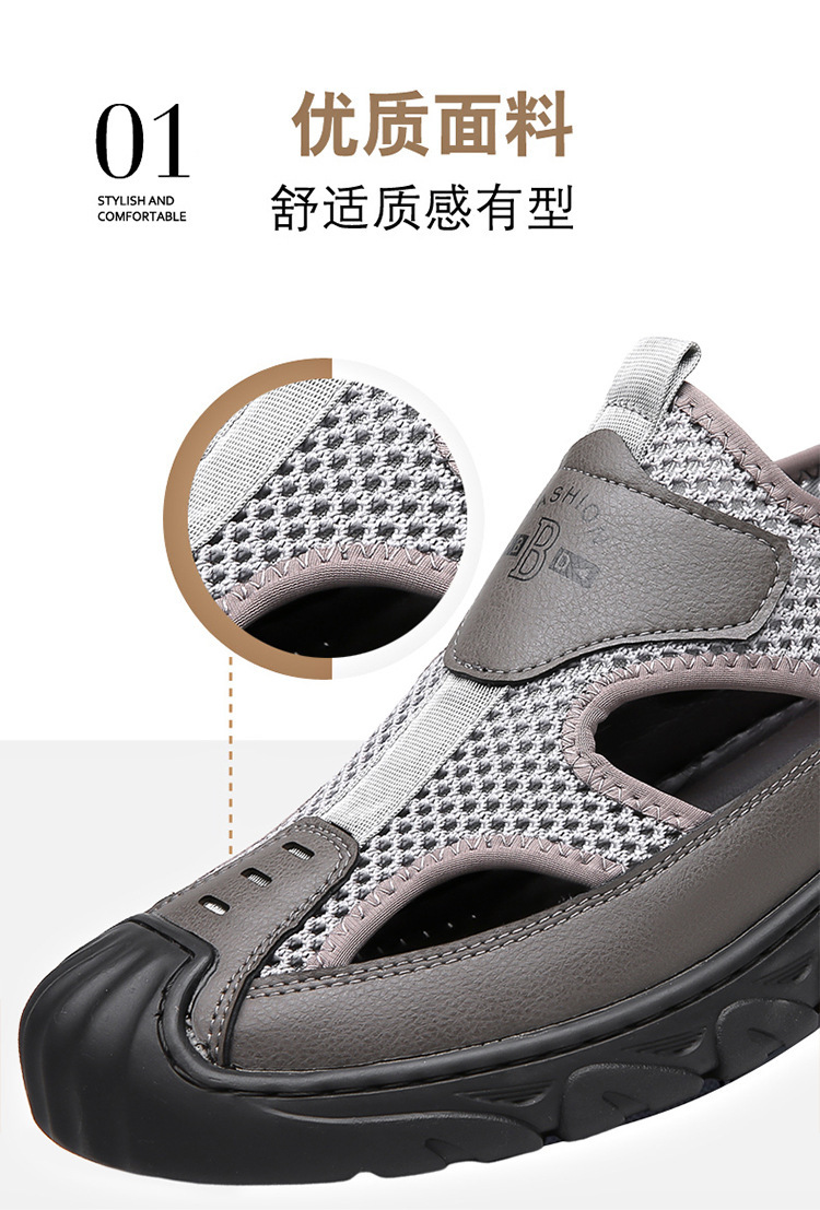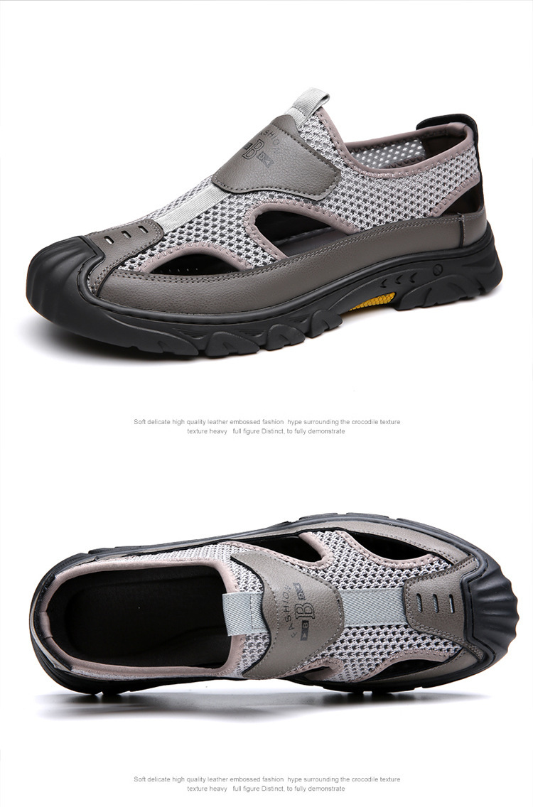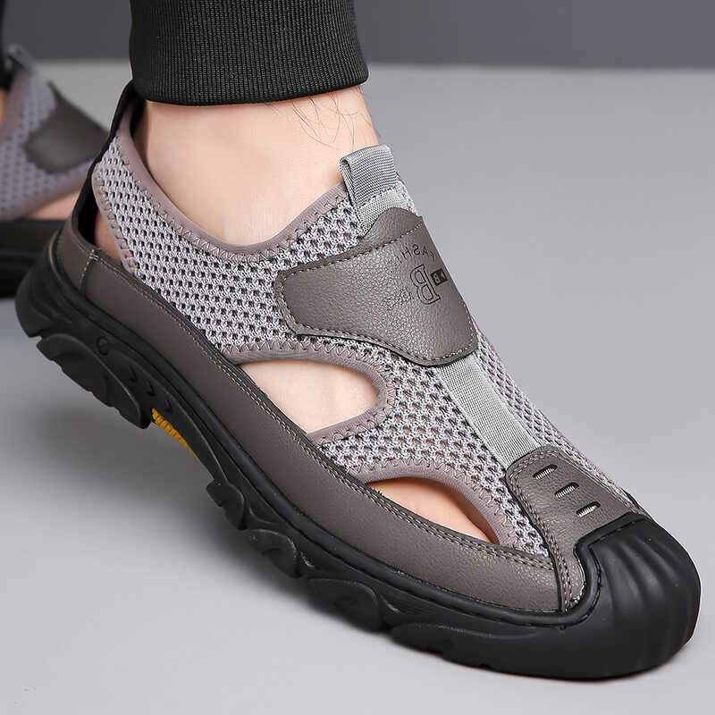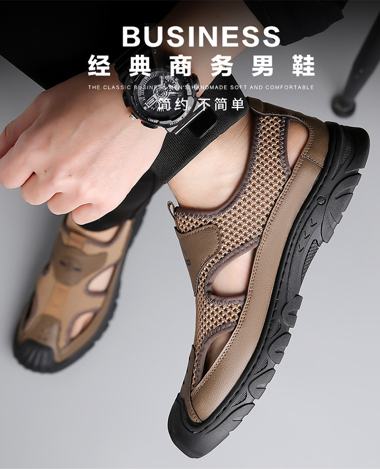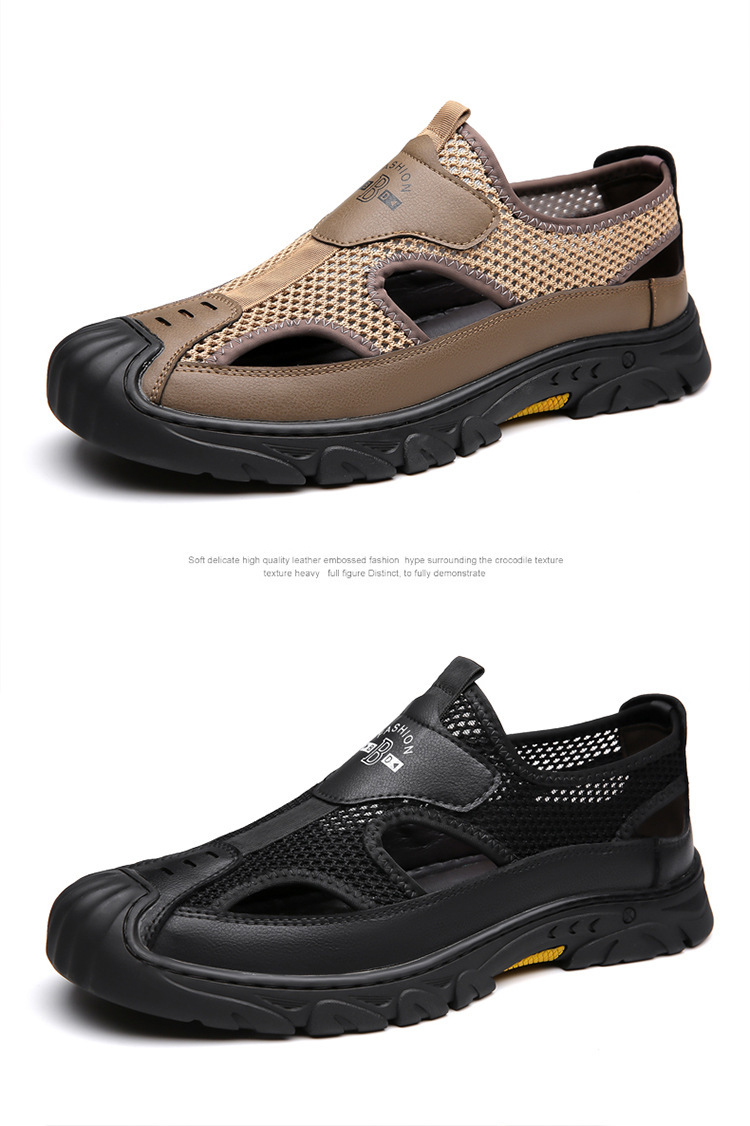 Parmat Xuanqi Bo Niu Shengli 마 샌들 남성 여름 새로운 야외 캐주얼 가죽 메쉬 중공 구멍 신발