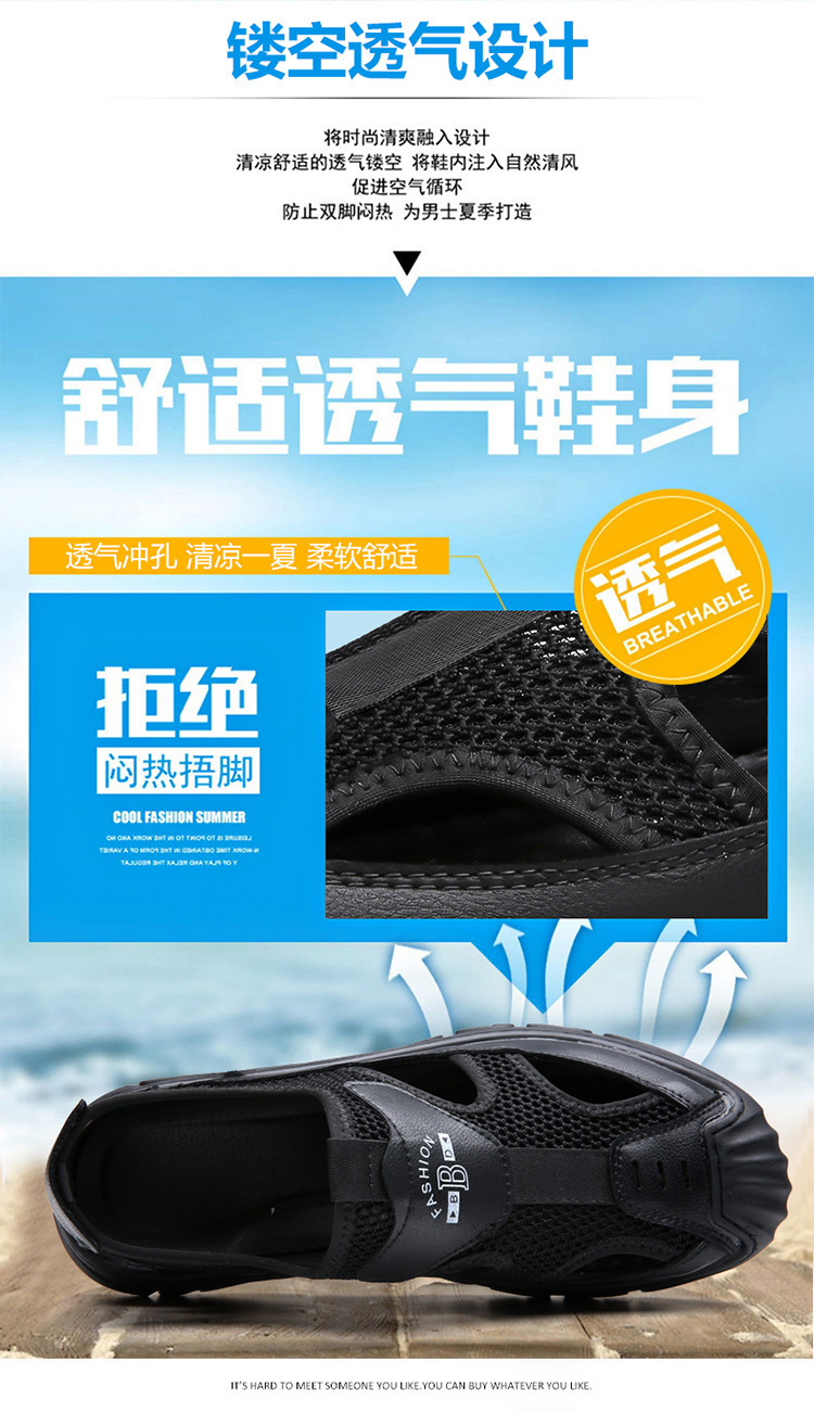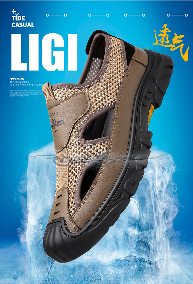 Parmat Xuanqi Bo Niu Shengli 마 샌들 남성 여름 새로운 야외 캐주얼 가죽 메쉬 중공 구멍 신발스토어 가기
