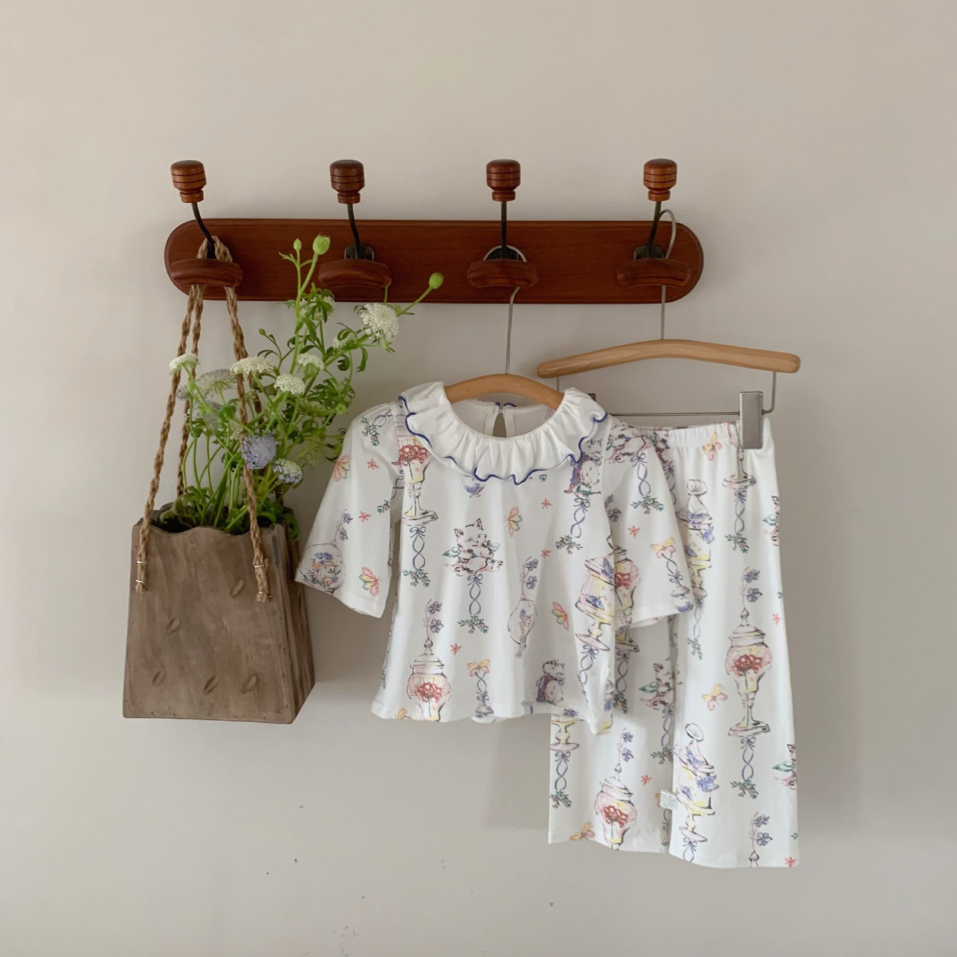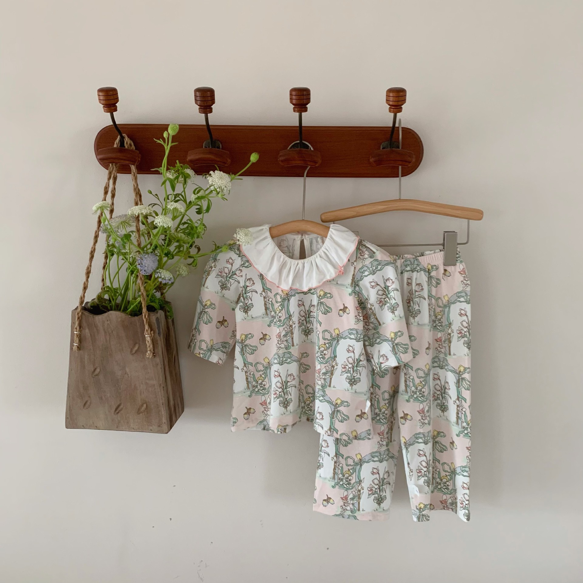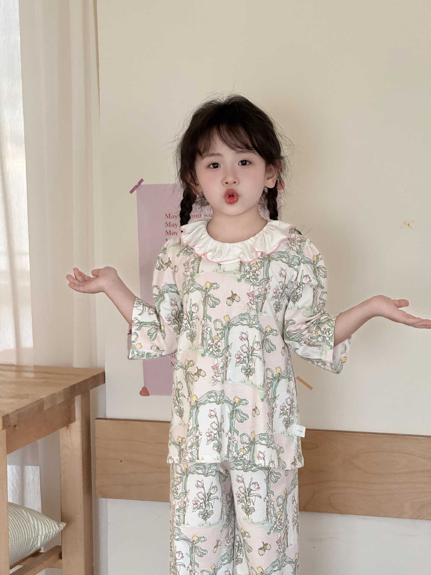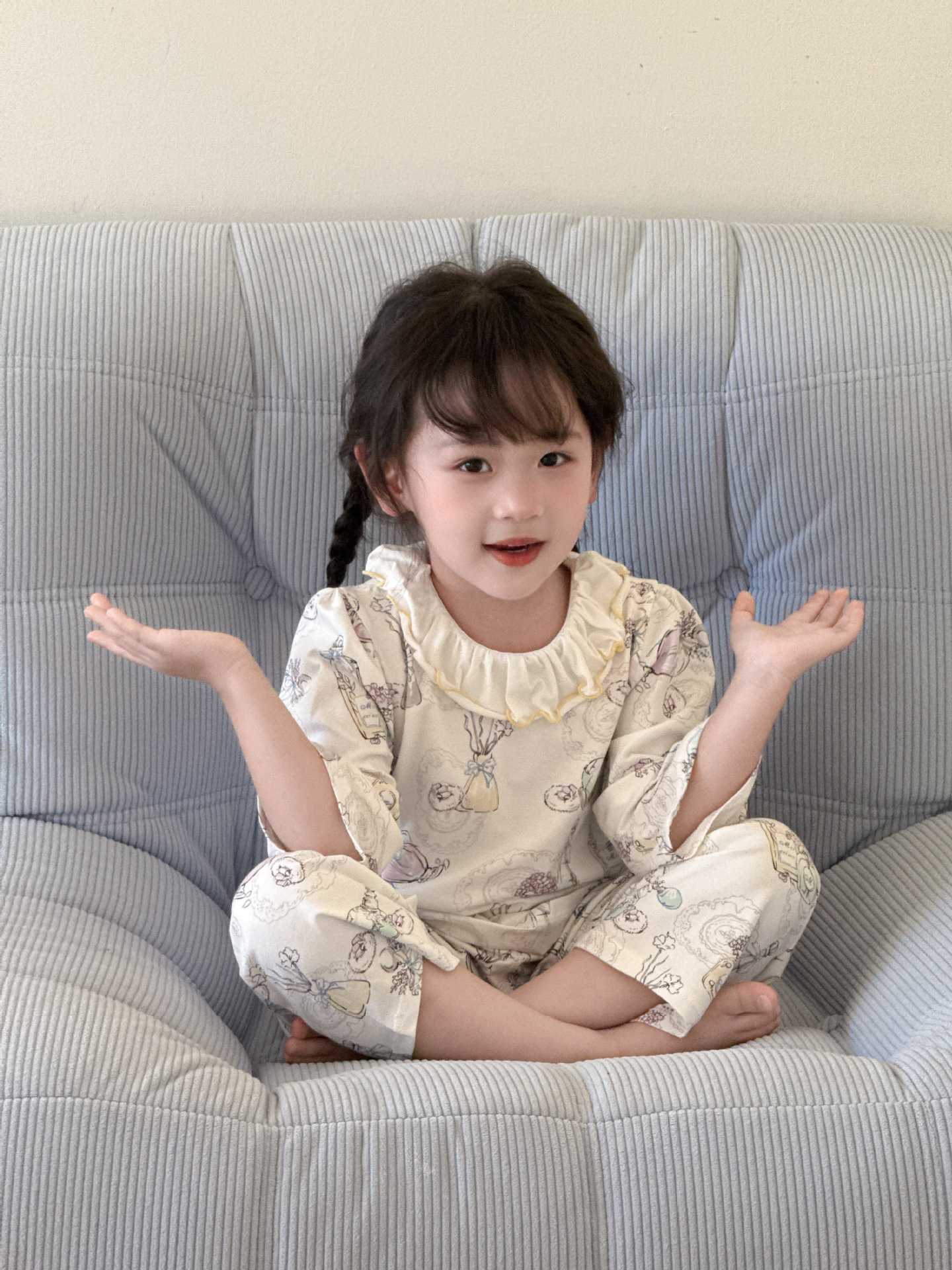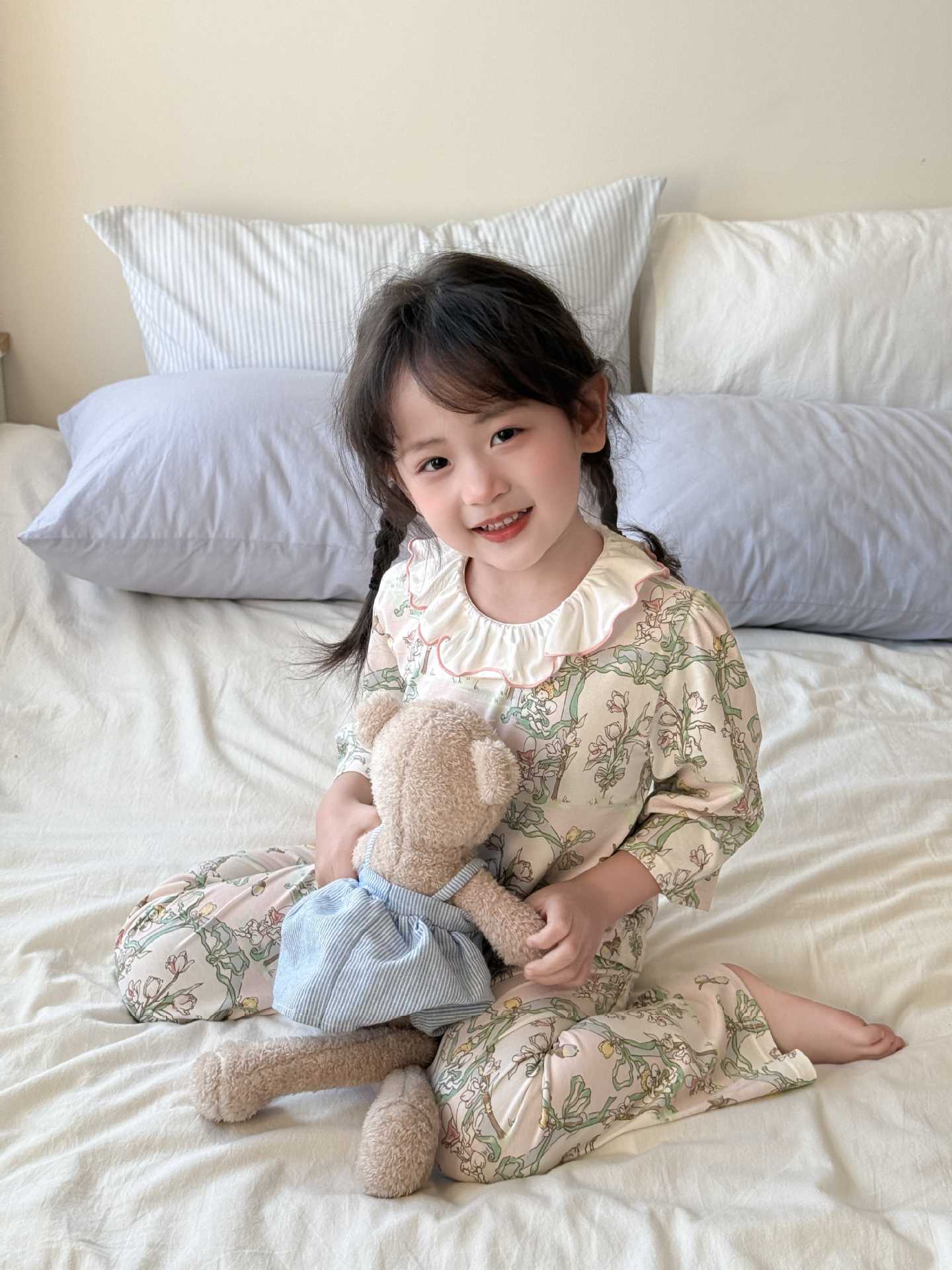 소녀 잠옷 카테고리 작은 깨진 레이스 칼라 어린이 집 옷 소녀 중 큰 소녀 세트 인 스타일 아동복스토어 가기