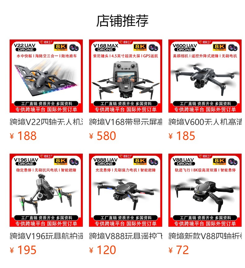 국경 간 V186 브러시리스 8K 드론 브러시리스 장애물 회피 고화질 4축 원격 제어 항공기 긴 내구성 장난감 항공기스토어 가기