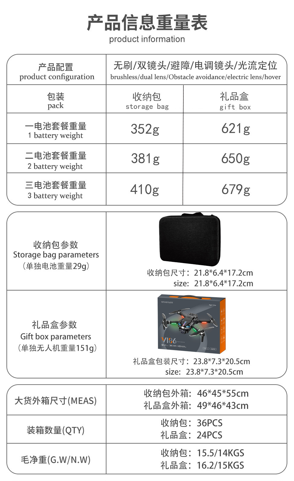 국경 간 V186 브러시리스 8K 드론 브러시리스 장애물 회피 고화질 4축 원격 제어 항공기 긴 내구성 장난감 항공기