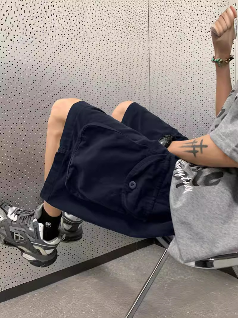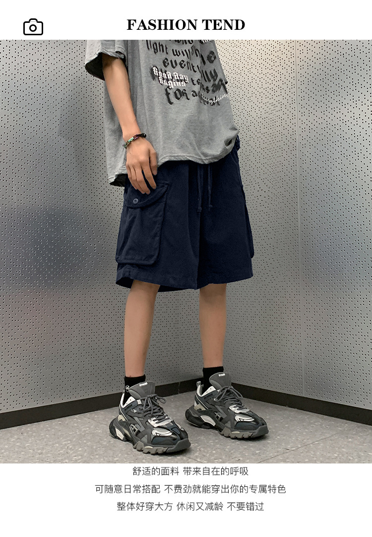 일본 기능성 멀티 포켓 툴링 반바지 남성 여름 유행 도시 소년 느슨한 캐주얼 스트레이트-다리 와이드 다리 바지