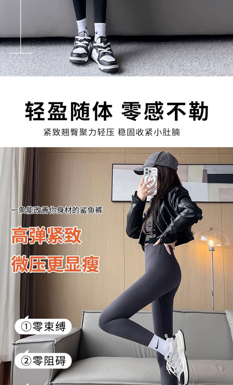 봄, 가을 여성용 9부 샤크 팬츠, 하이웨이스트 뱃살 조절 타이즈, 요가 바비 팬츠, 벨벳 겨울 레깅스스토어 가기