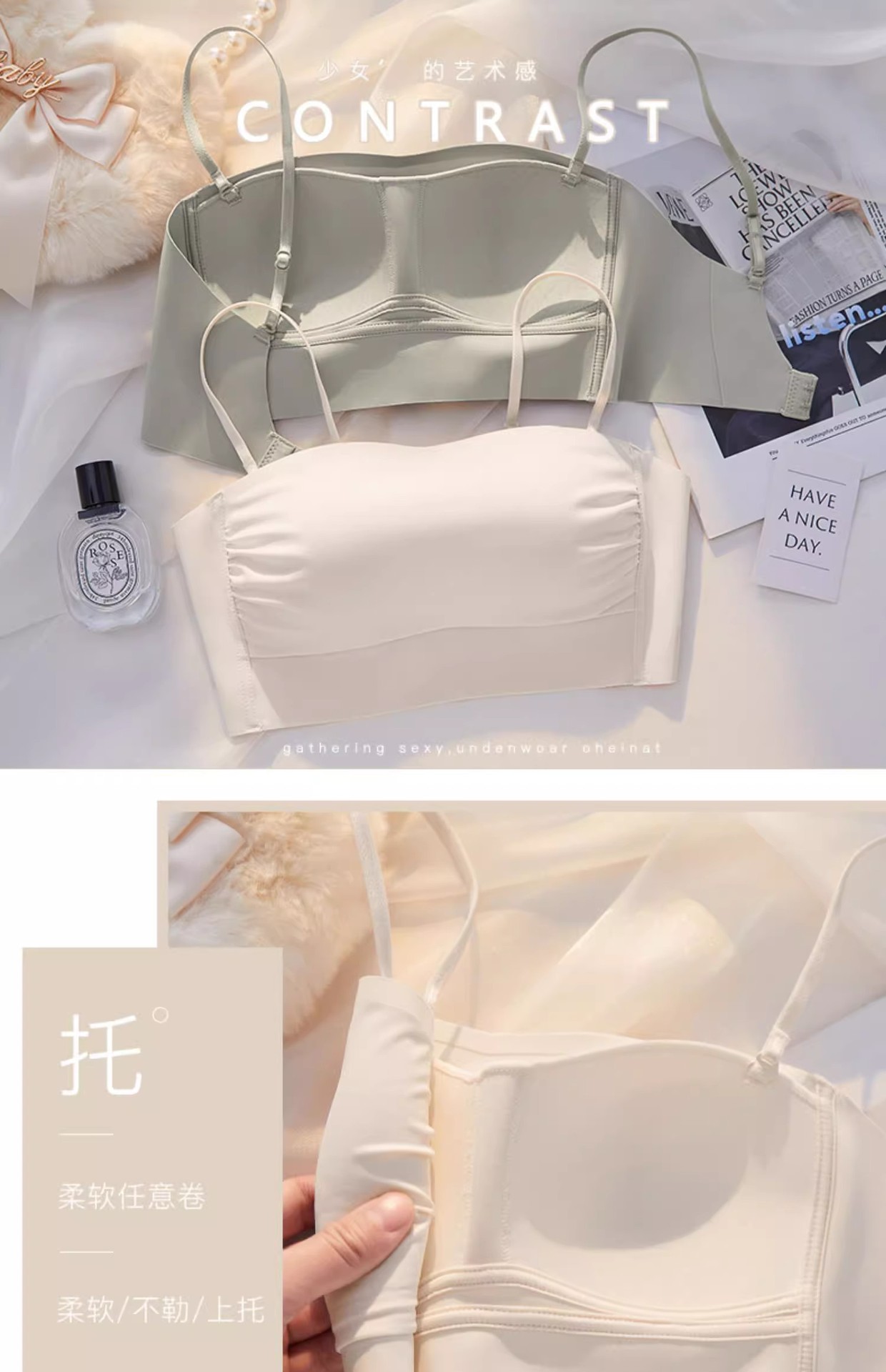 흰색 tracless 속옷 여성의 큰 가슴 작은 튜브 탑 미끄럼 방지 글로우 포장 가슴 U 자형 뷰티 백 카미 솔 브라