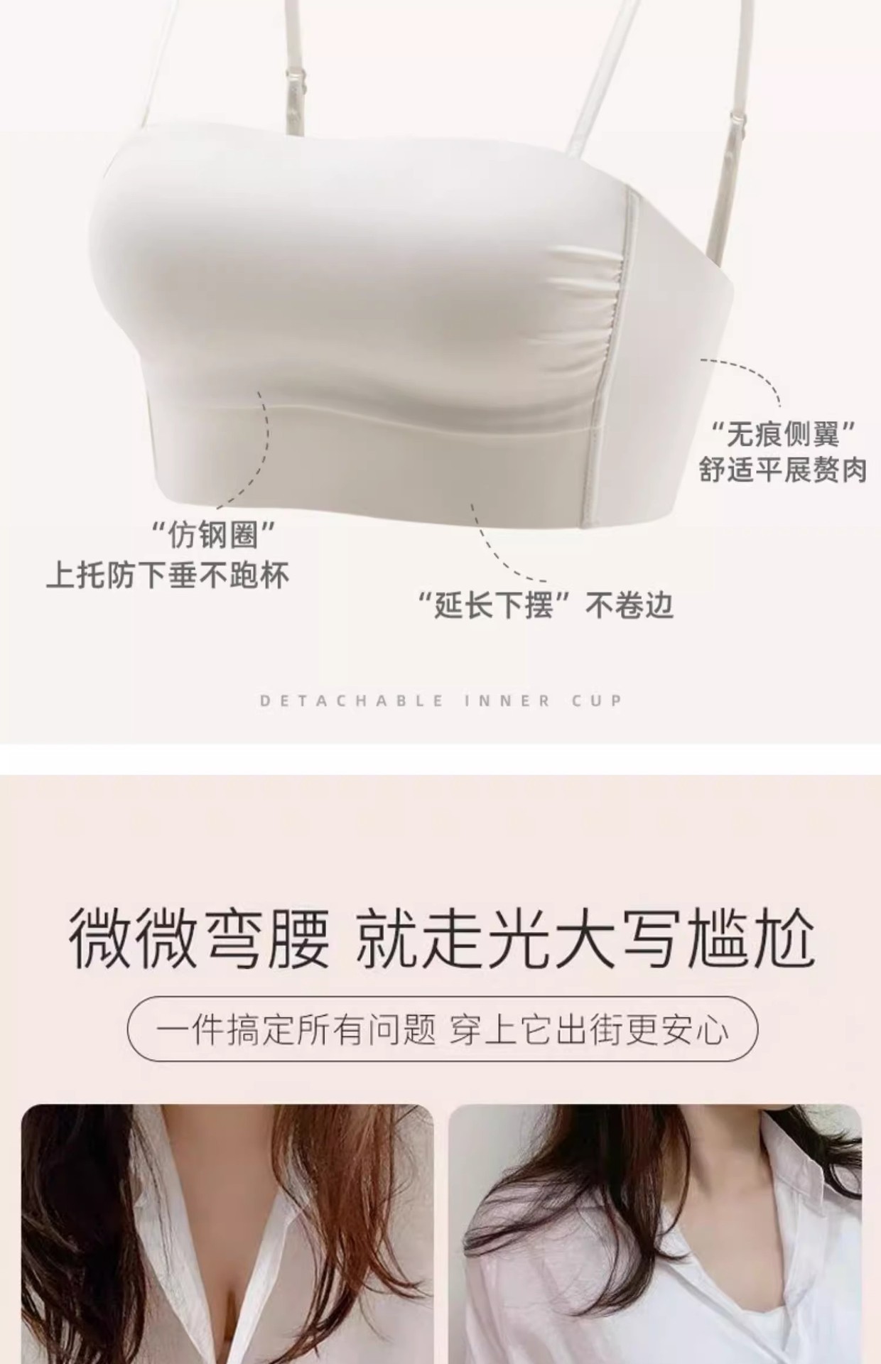 흰색 tracless 속옷 여성의 큰 가슴 작은 튜브 탑 미끄럼 방지 글로우 포장 가슴 U 자형 뷰티 백 카미 솔 브라스토어 가기