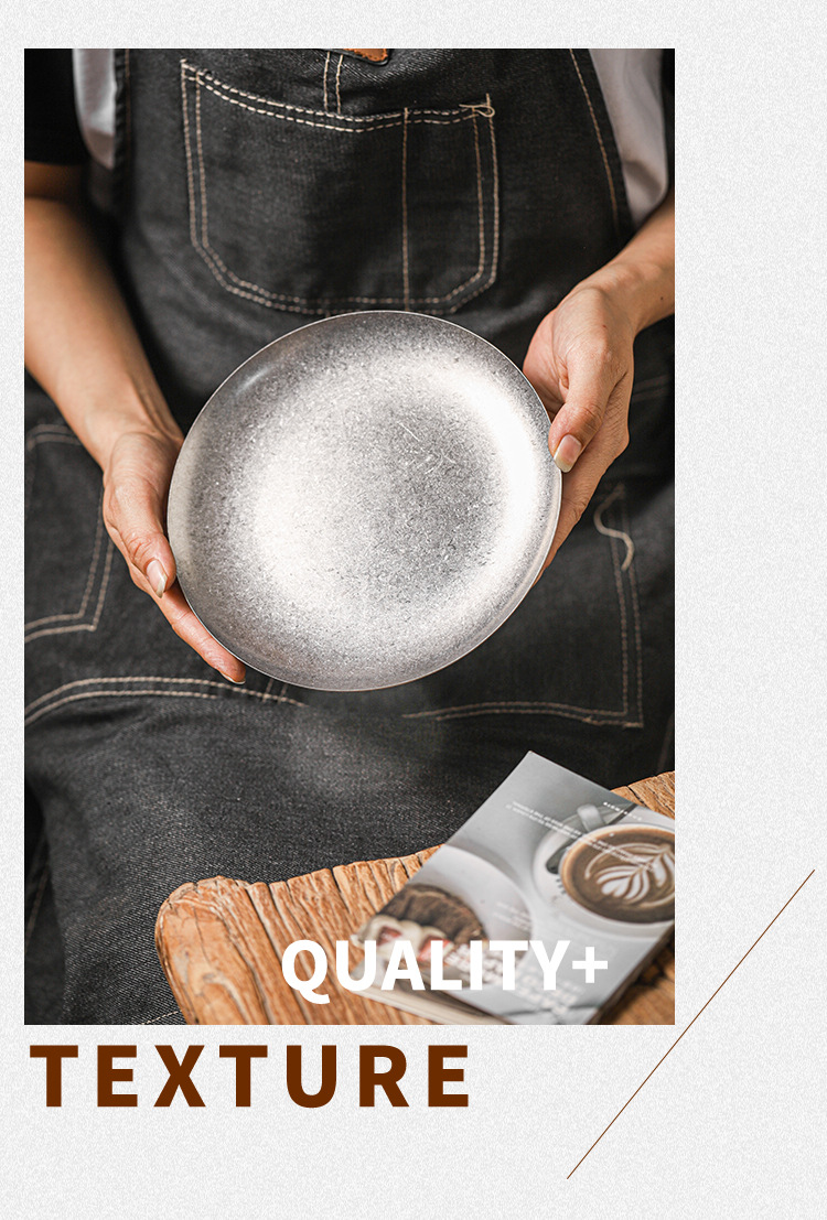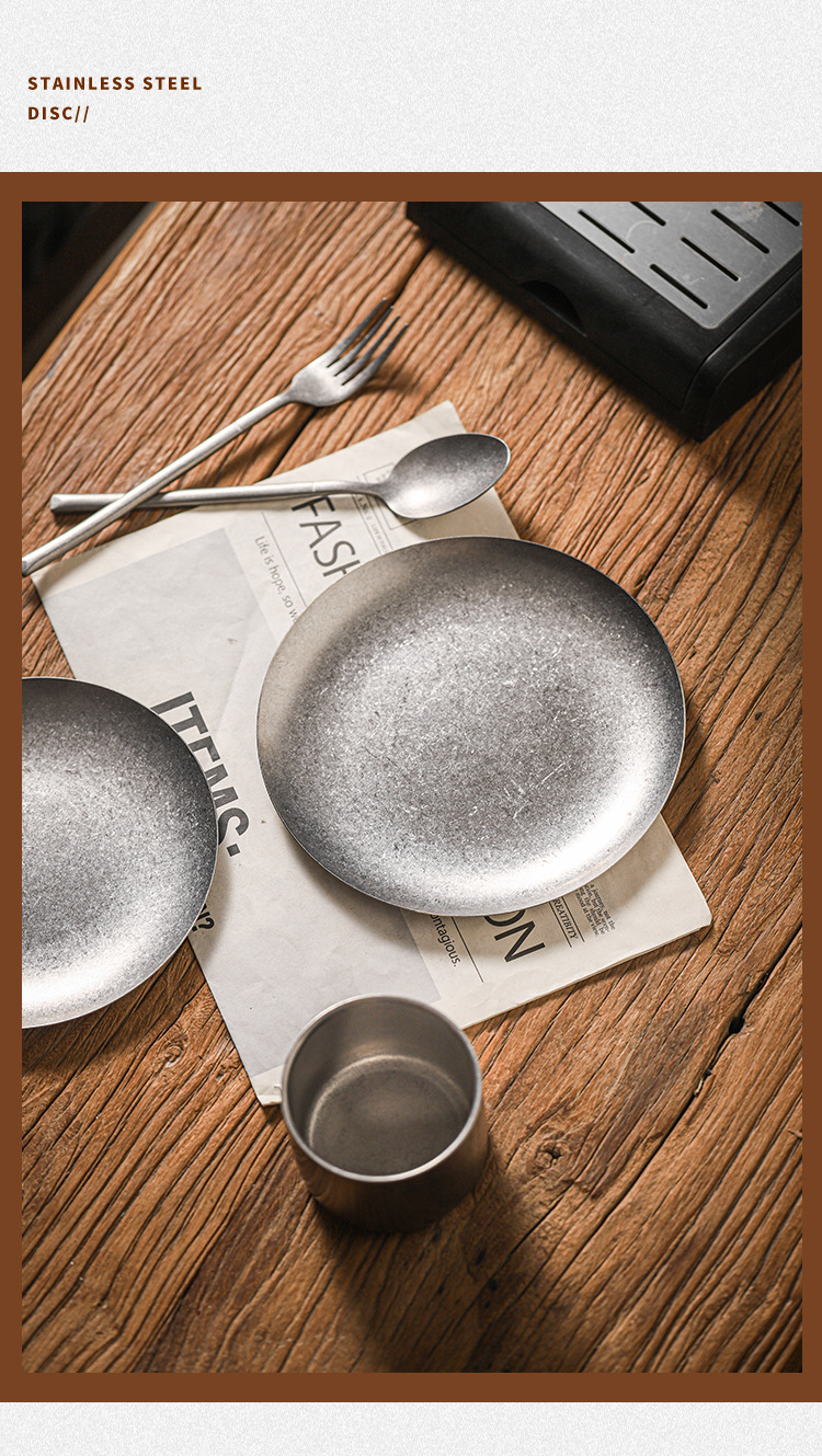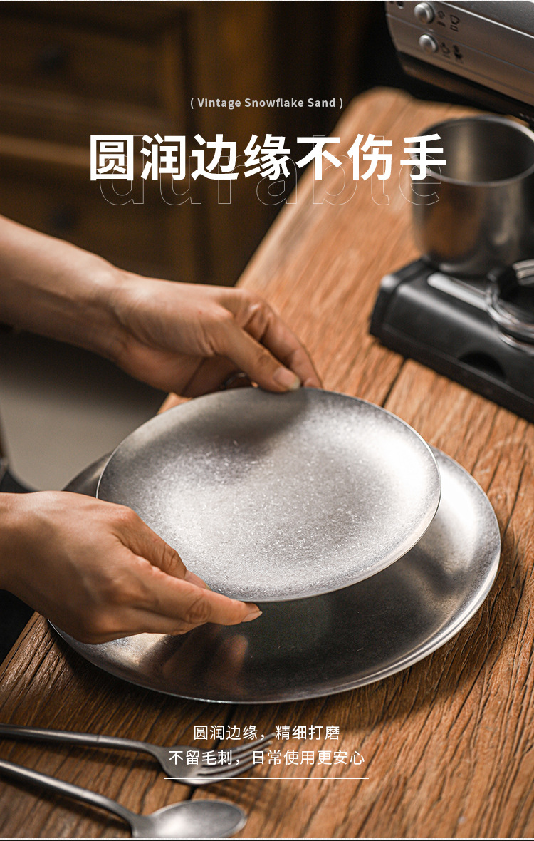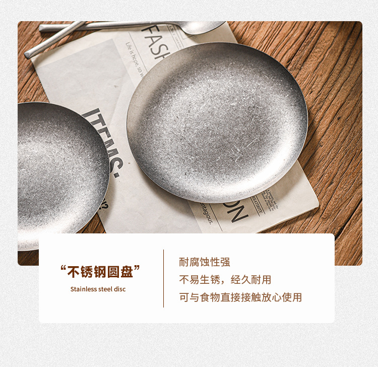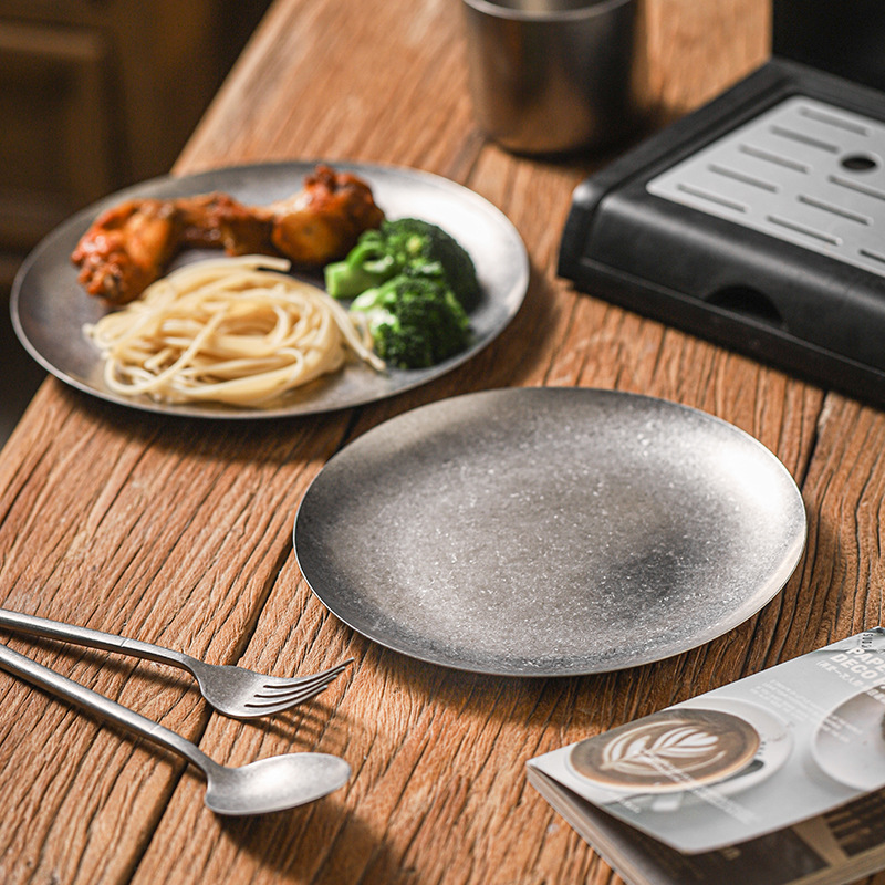 아메리칸 레트로 접시 스테인레스 스틸 접시 식기 서양 음식 접시 버거 접시 스테이크 접시 상업용 원형 접시 베이킹 B&스토어 가기