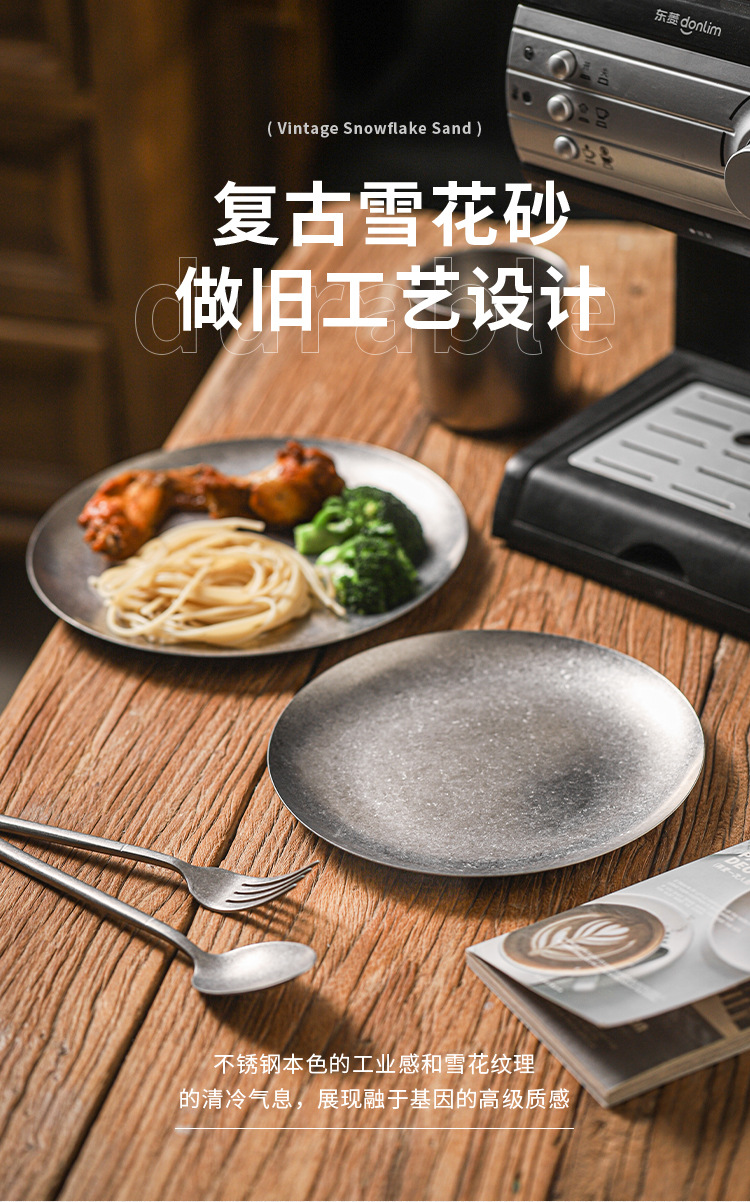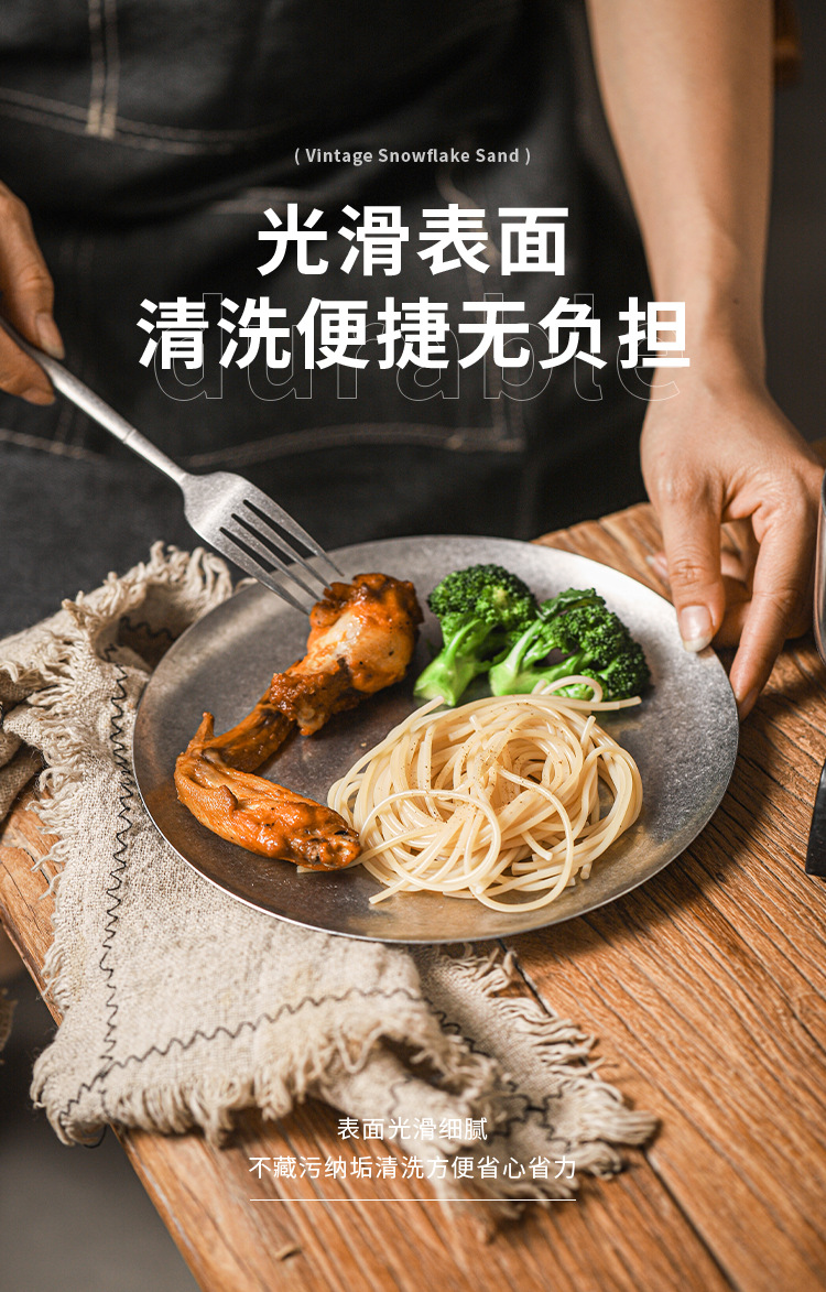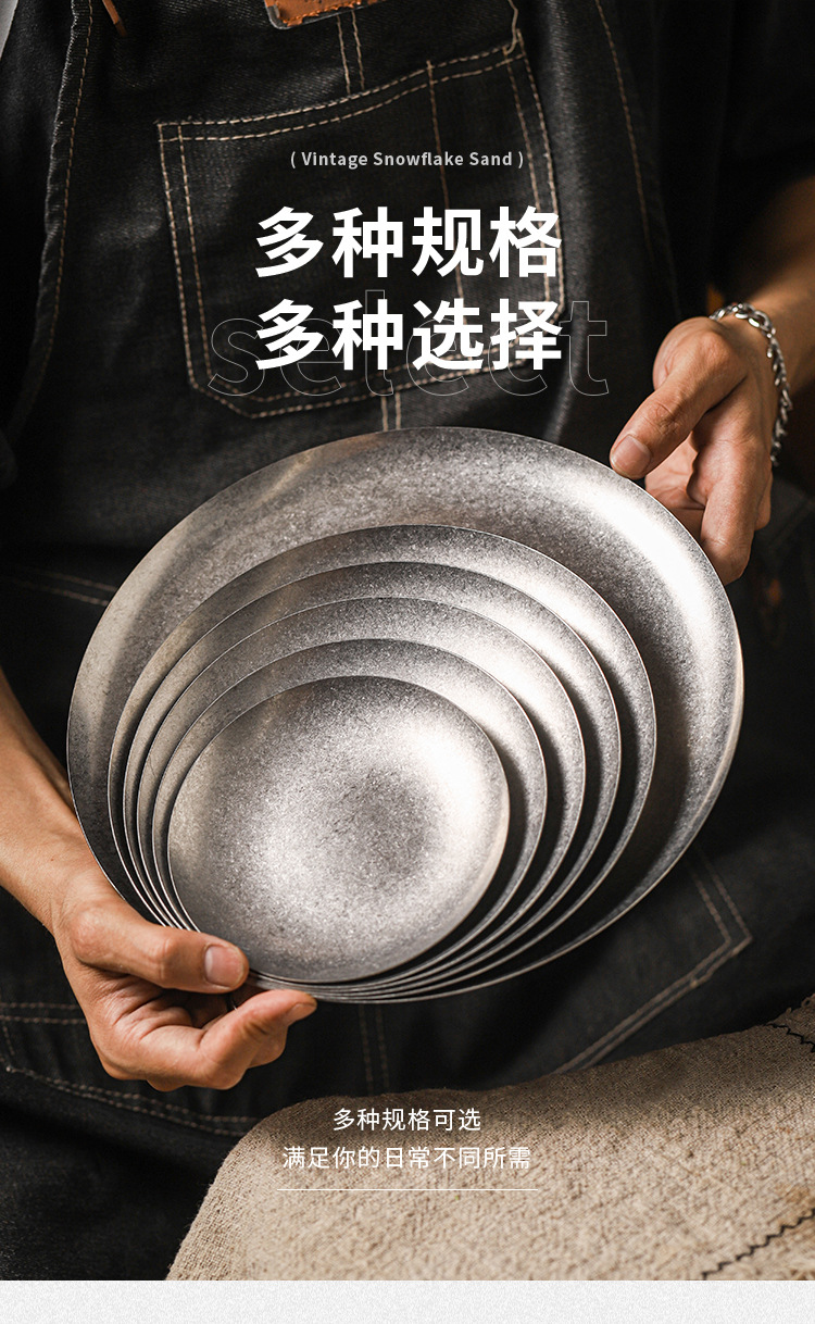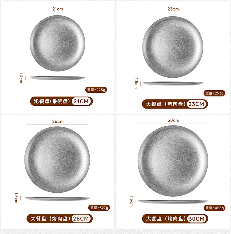 아메리칸 레트로 접시 스테인레스 스틸 접시 식기 서양 음식 접시 버거 접시 스테이크 접시 상업용 원형 접시 베이킹 B&스토어 가기