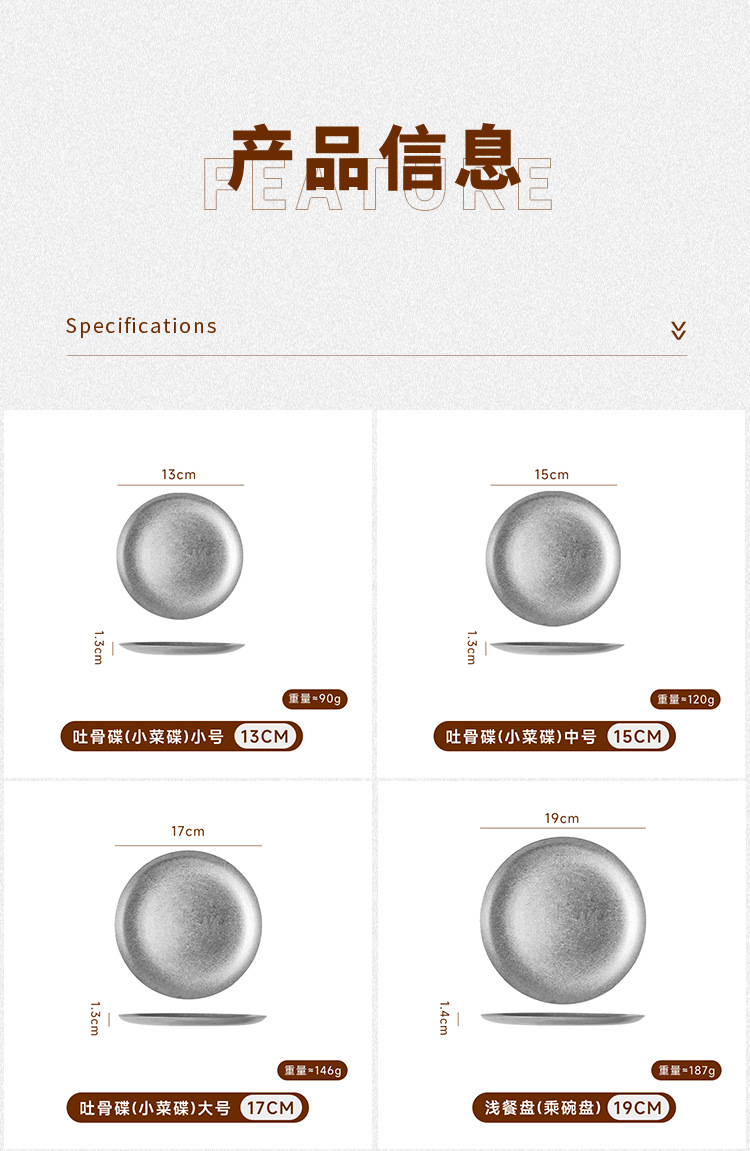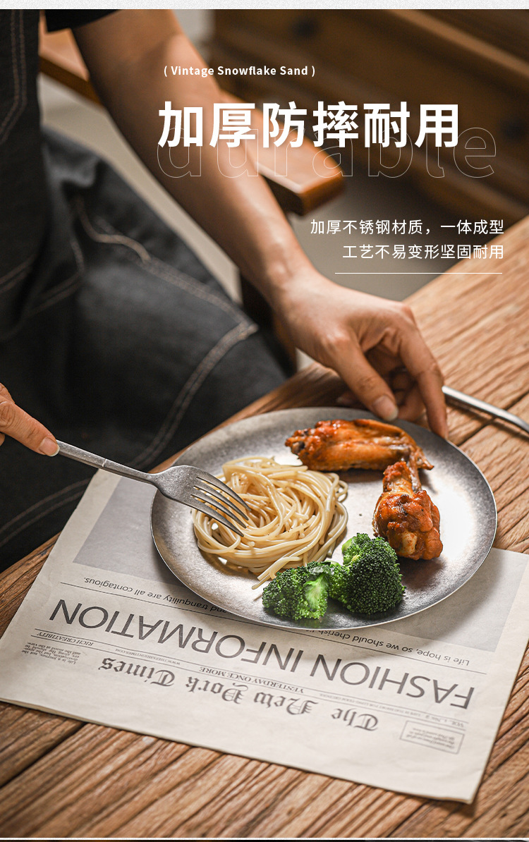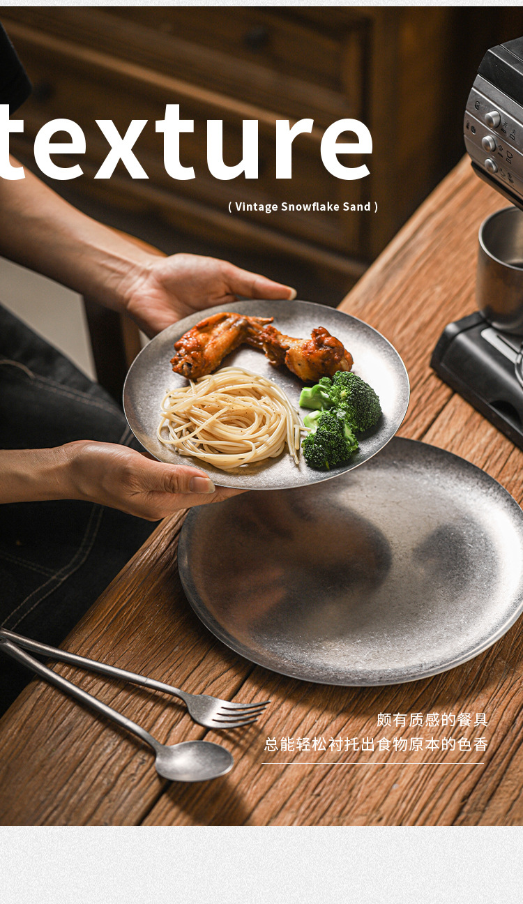 아메리칸 레트로 접시 스테인레스 스틸 접시 식기 서양 음식 접시 버거 접시 스테이크 접시 상업용 원형 접시 베이킹 B&