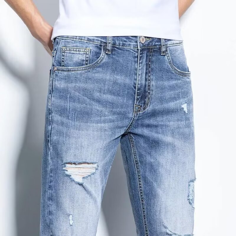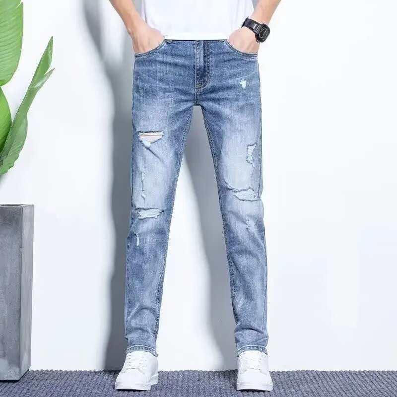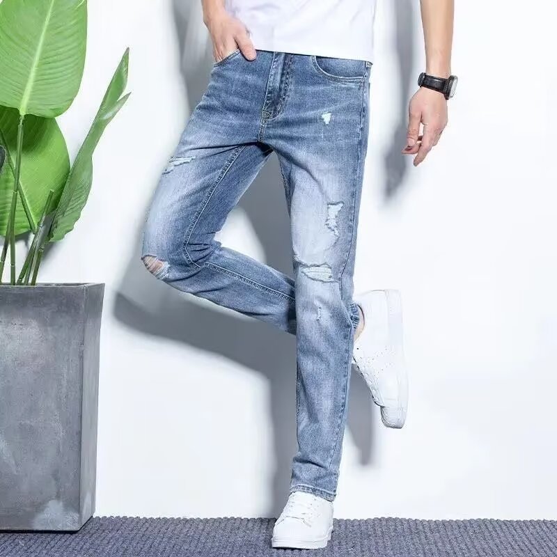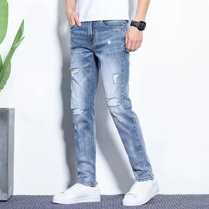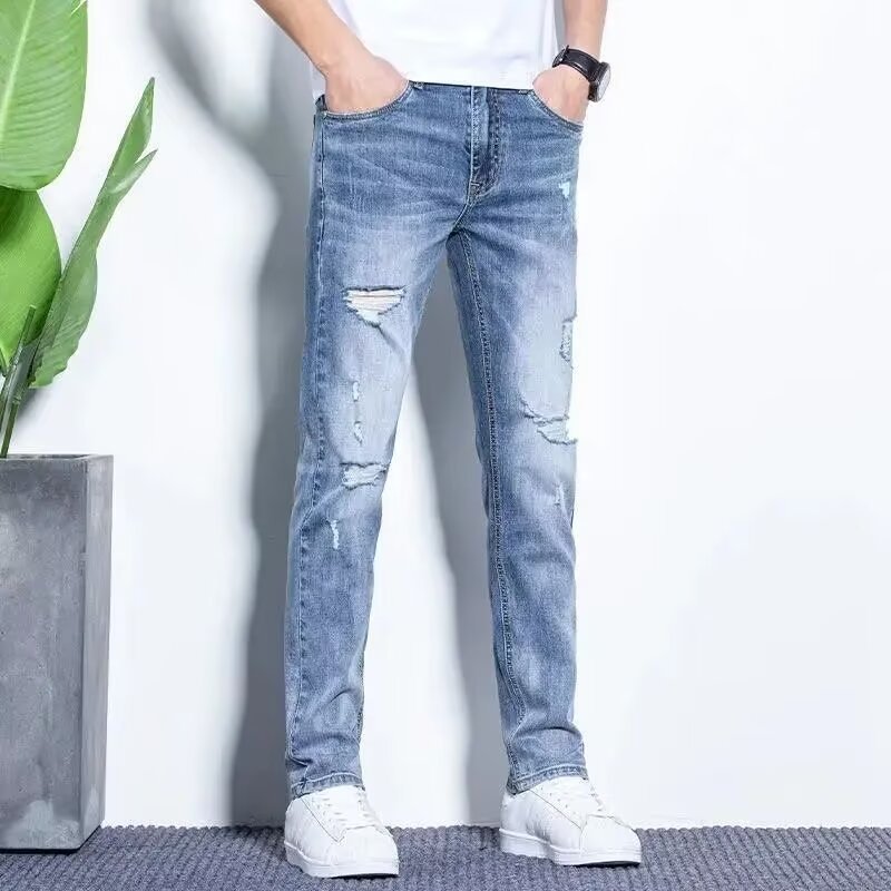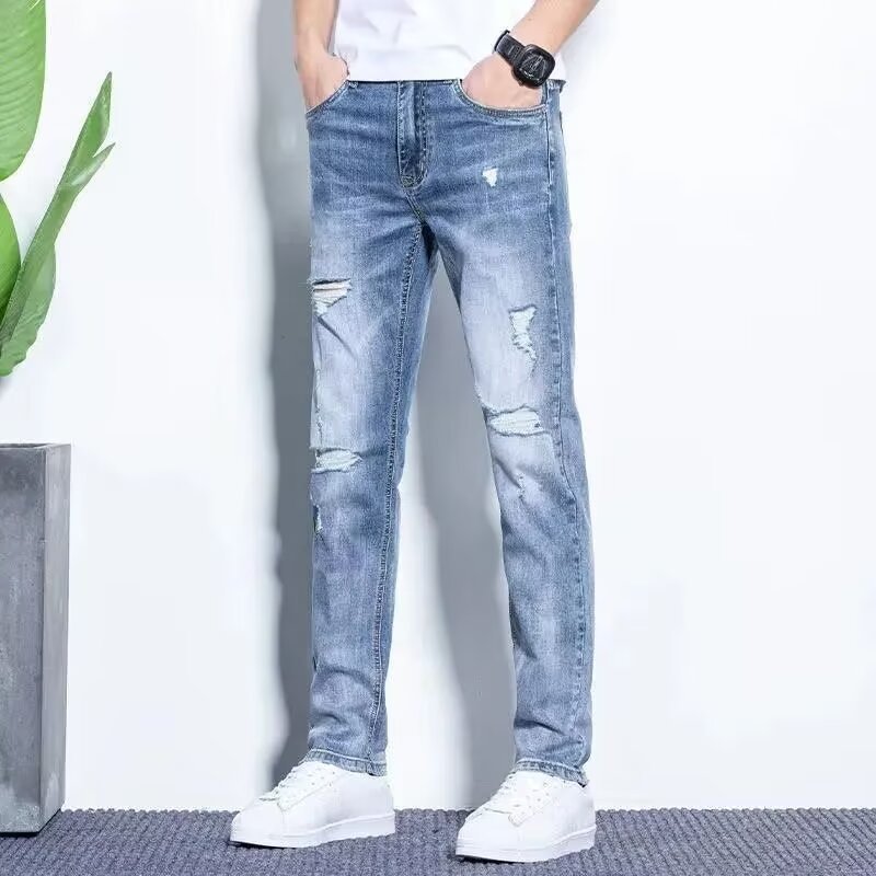 남성용 청바지 2024 여름 신작 트렌디 브랜드 트렌디 찢어진 스트레이트 캐주얼 바지 남성용 루즈한 봄, 가을 스타일스토어 가기