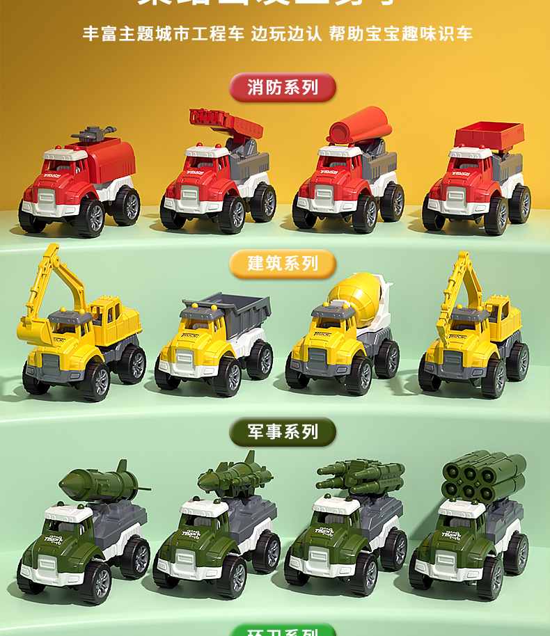 • 풀백 엔지니어링 차량 [4개 시리즈] 가방 16개 + 보관함