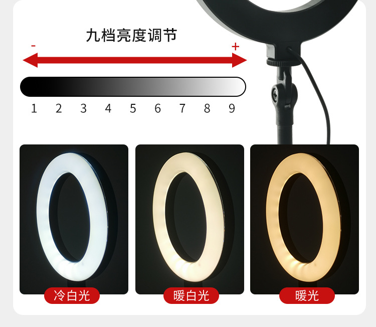휴대폰 홀더, 데스크탑 라이브 방송 홀더, 단일 카메라 필 라이트, LED 3색 링 라이트, 원형 필 라이트, 뷰티 셀카