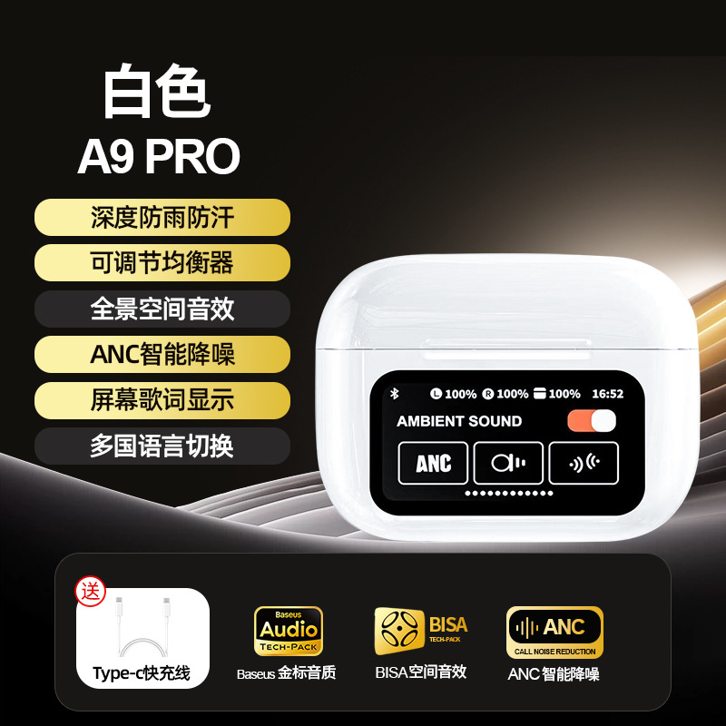새로운 A9pro 블루투스 헤드셋 ANC 소음 감소 긴 내구성 컬러 스크린 터치 인 이어 무선 스포츠 헤드셋