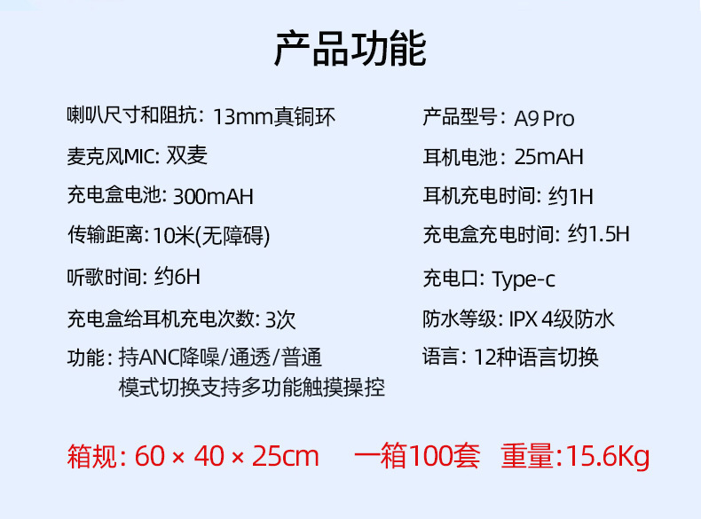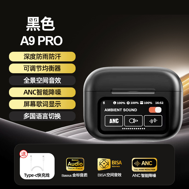 새로운 A9pro 블루투스 헤드셋 ANC 소음 감소 긴 내구성 컬러 스크린 터치 인 이어 무선 스포츠 헤드셋스토어 가기