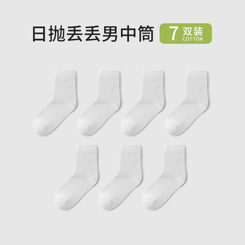 • 남성용 종아리 중간 양말 [화이트 7켤레]