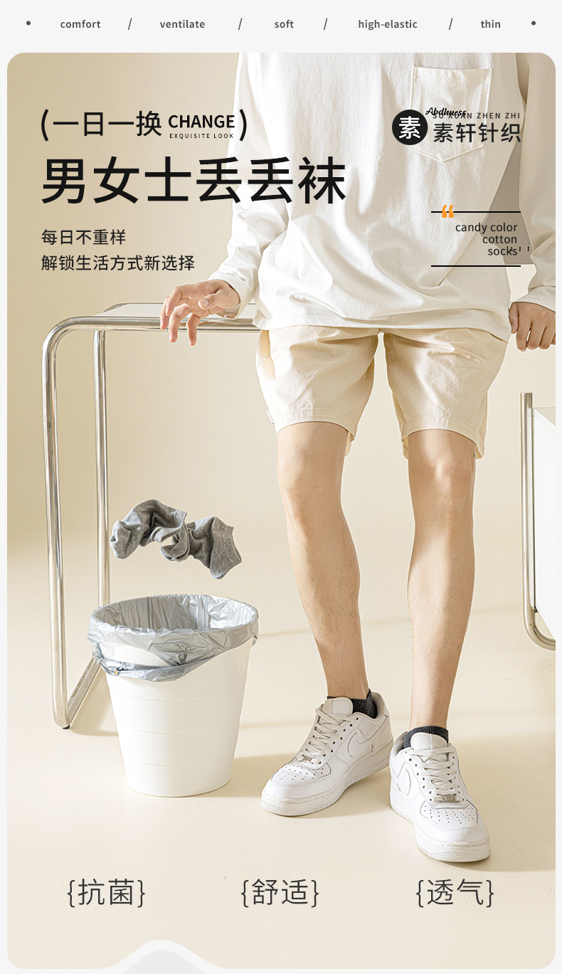 일회용 양말 남성과 여성의 매일 워시없는 짧은 보트 양말 중간 튜브 여름 얇은 여행 양말 커플 짧은 튜브 단색
