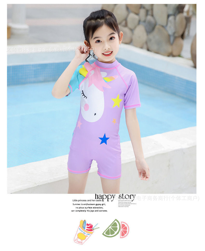 어린이 달콤한 서양식 워터 파크 수영복 소녀의 만화 포니 유니콘 플랫 뿔 원피스 수영복스토어 가기