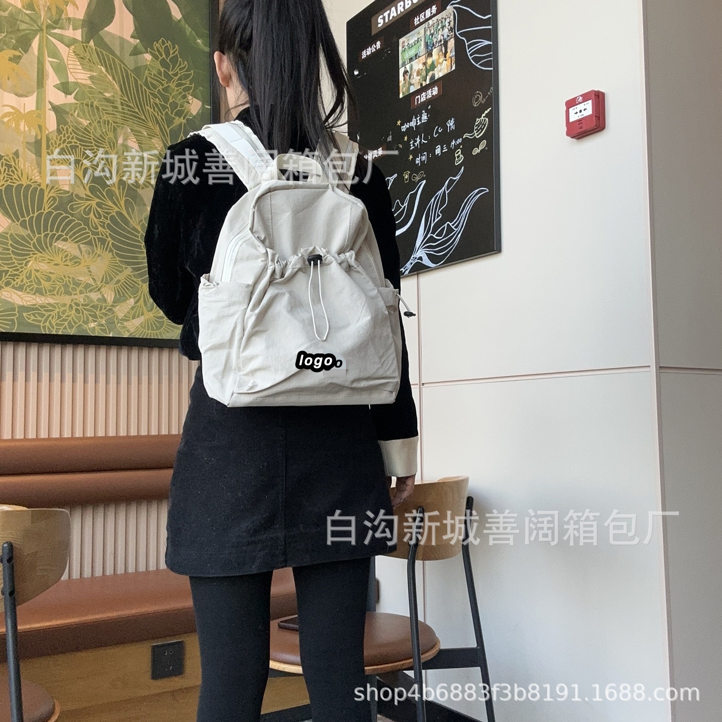 유행 브랜드 일본 단색 주름 나일론 배낭 남성 대용량 경량 캐주얼 여행 여성 대학생 컴퓨터 가방스토어 가기