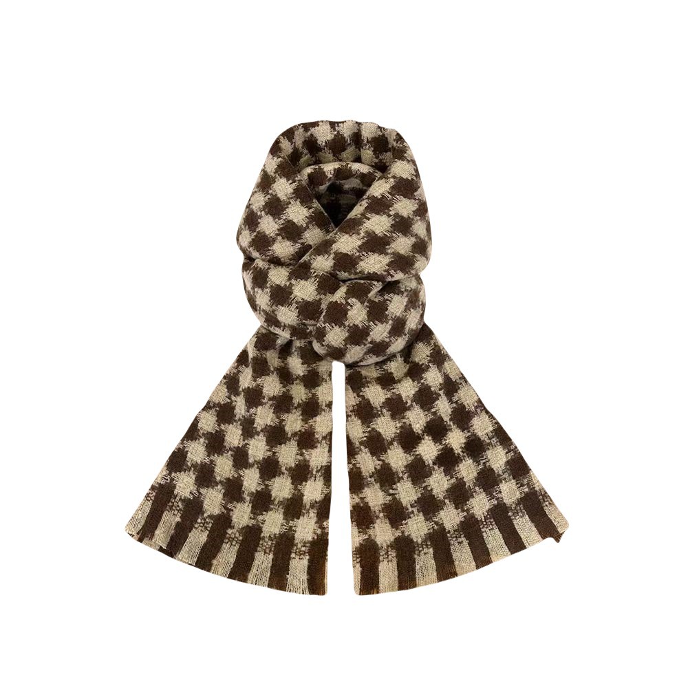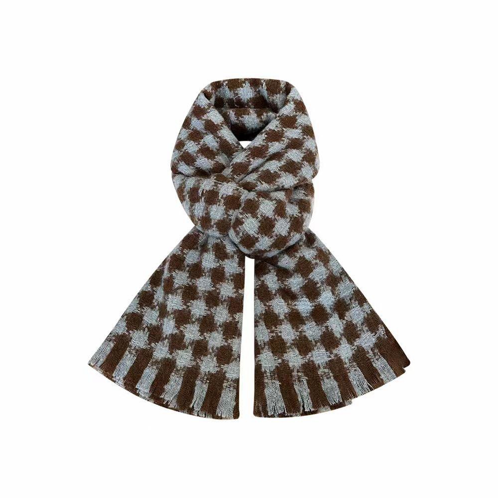 새로운 대비 컬러 다이아몬드 격자 무늬 스카프 여성의 겨울 두꺼운 캐시미어 니트 따뜻한 올 매치 학생 커플 스카프