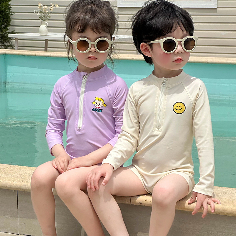여름 새로운 어린이 수영복 긴팔 선 스크린 수영복 간단한 만화 해변 온천 휴일 수영복 트렌디스토어 가기