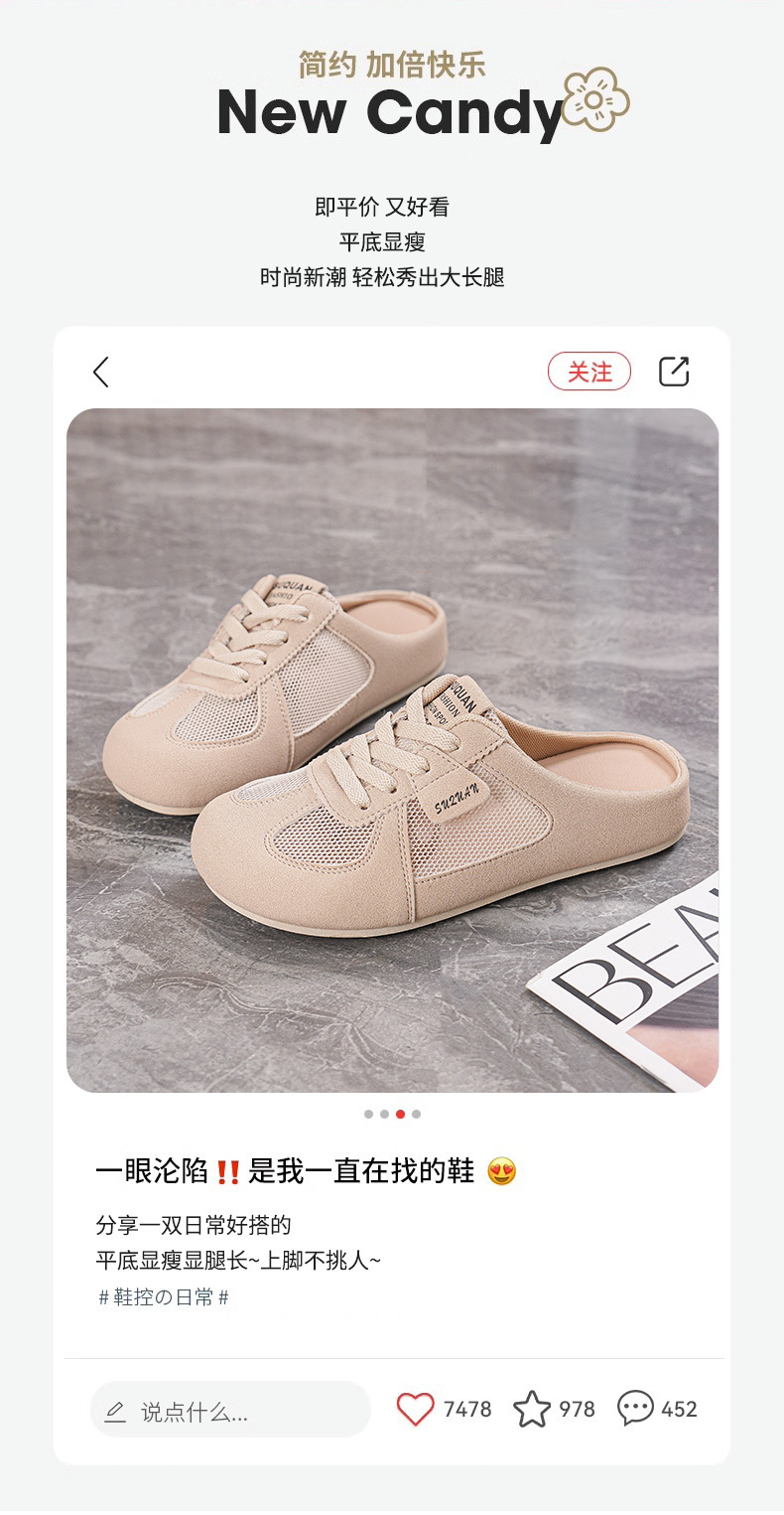 2025 여름 신형 바오터우 하프 슬리퍼 한국식 슬립 온 통기성 슬리퍼 캐주얼 슈즈 여성 학생 K3903스토어 가기