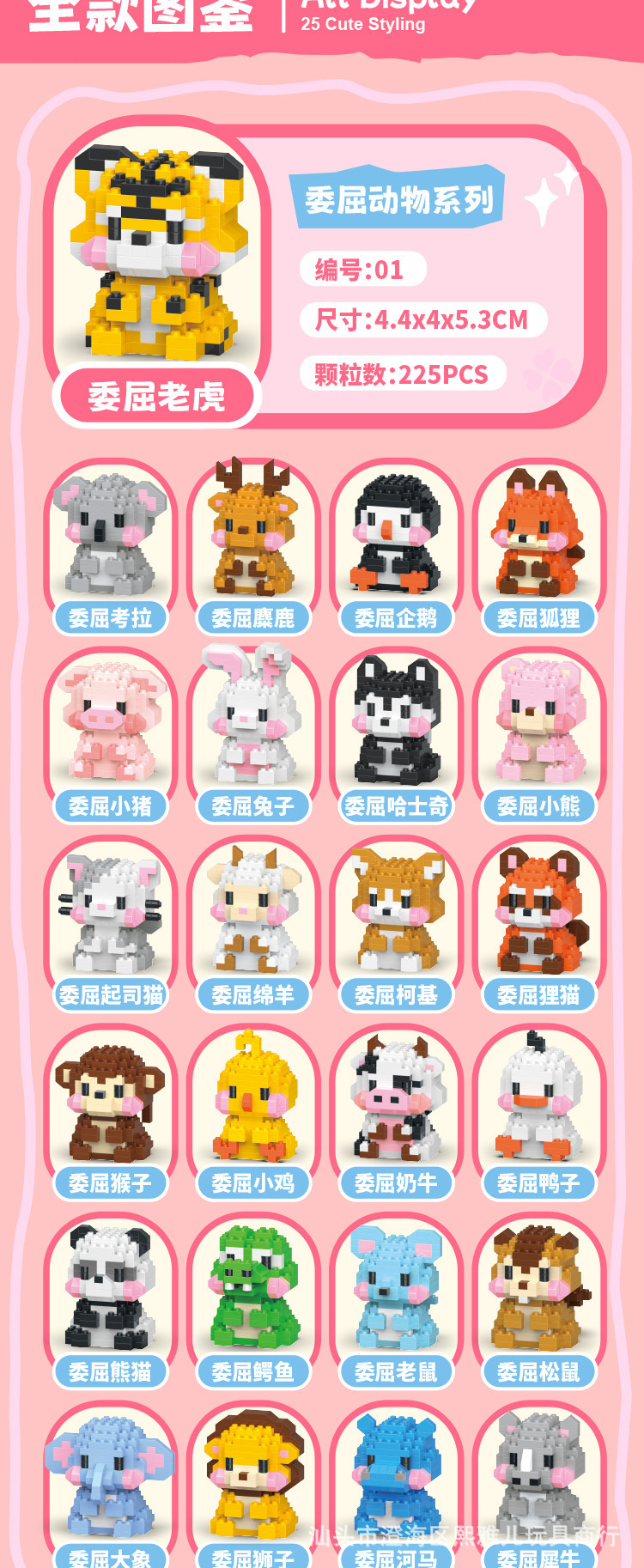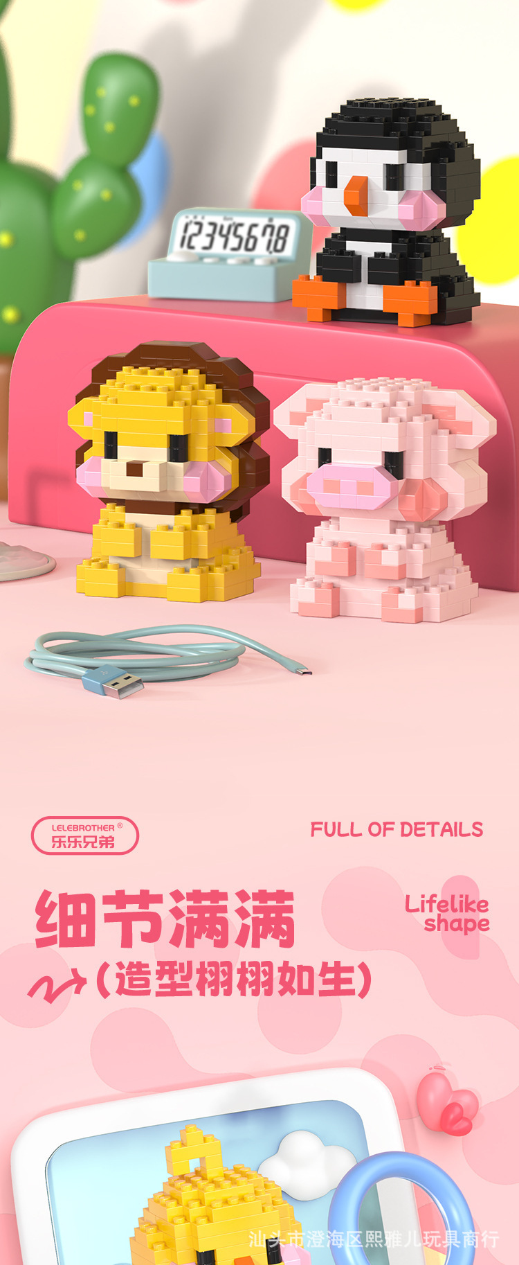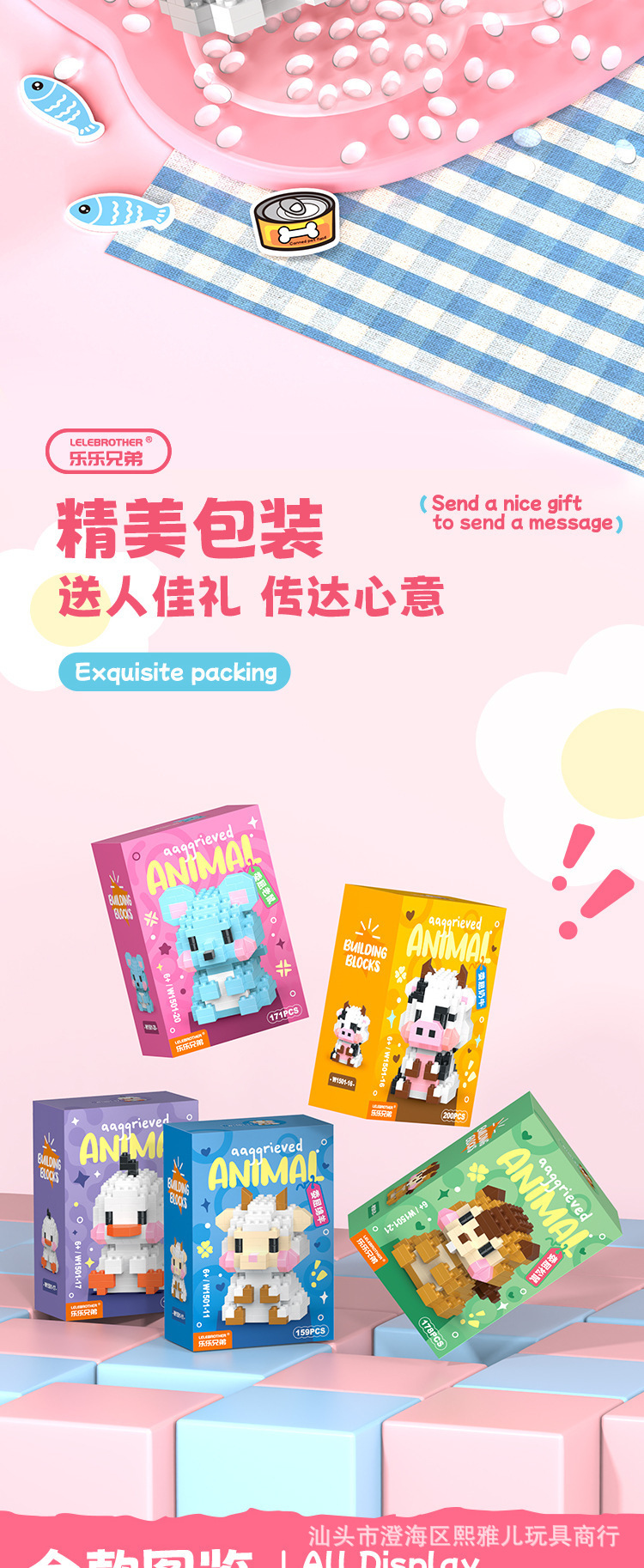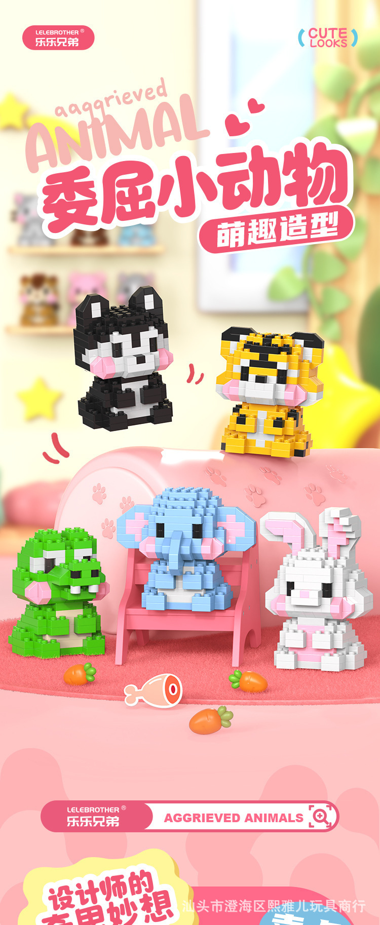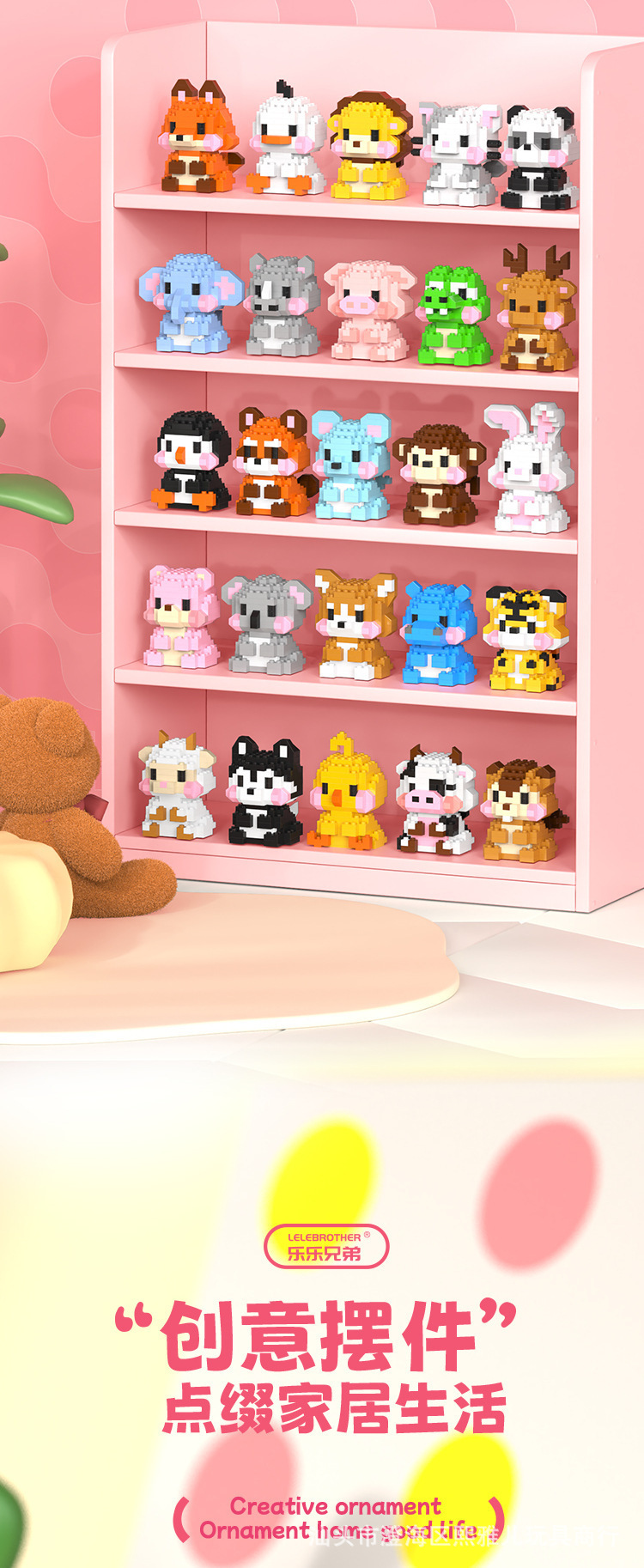 Lele Brothers 1051 Grievance 동물 만화 인형 시리즈 어린이 교육 조립 건물 블록 데스크탑 장식품 장난감스토어 가기