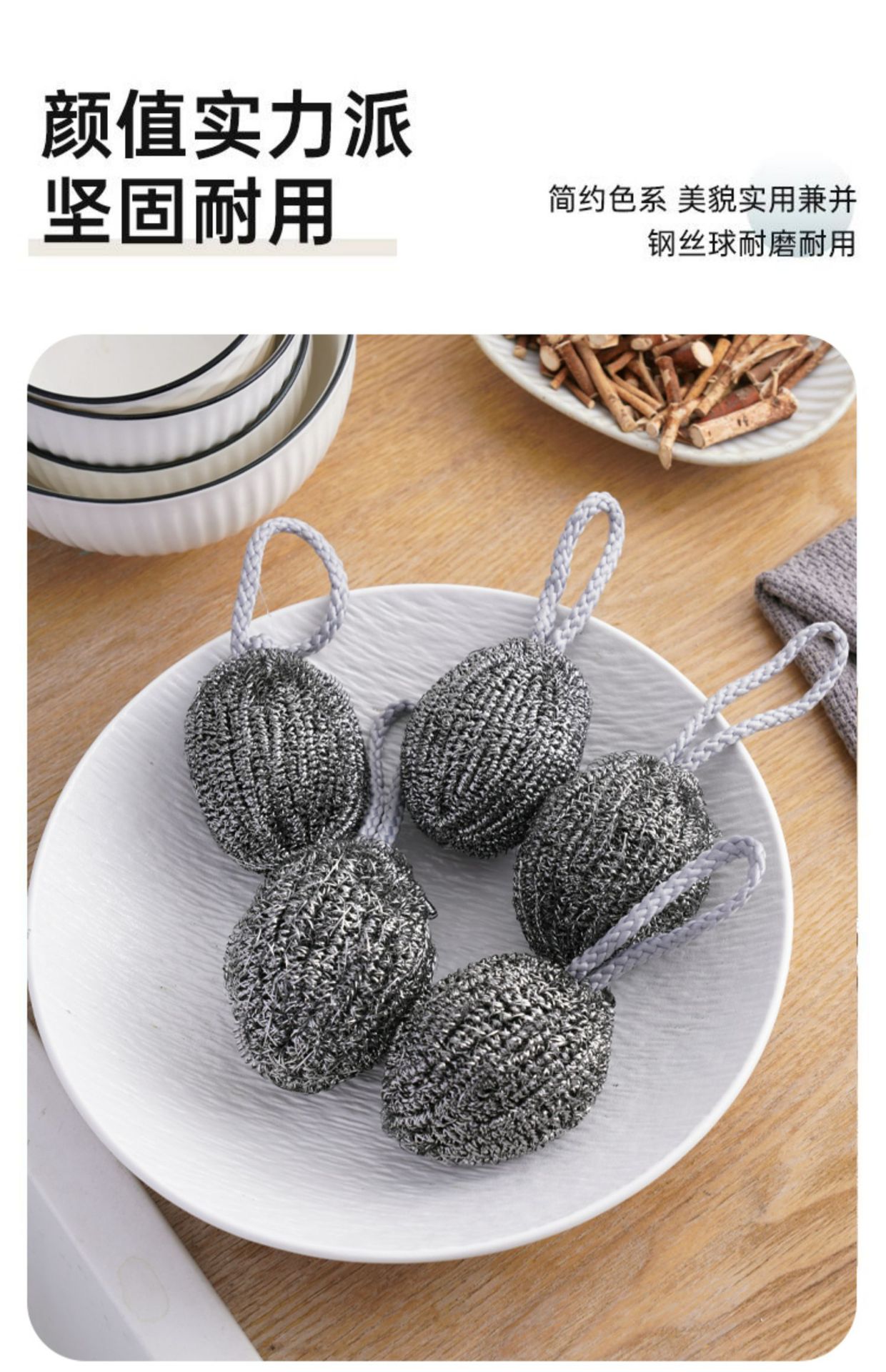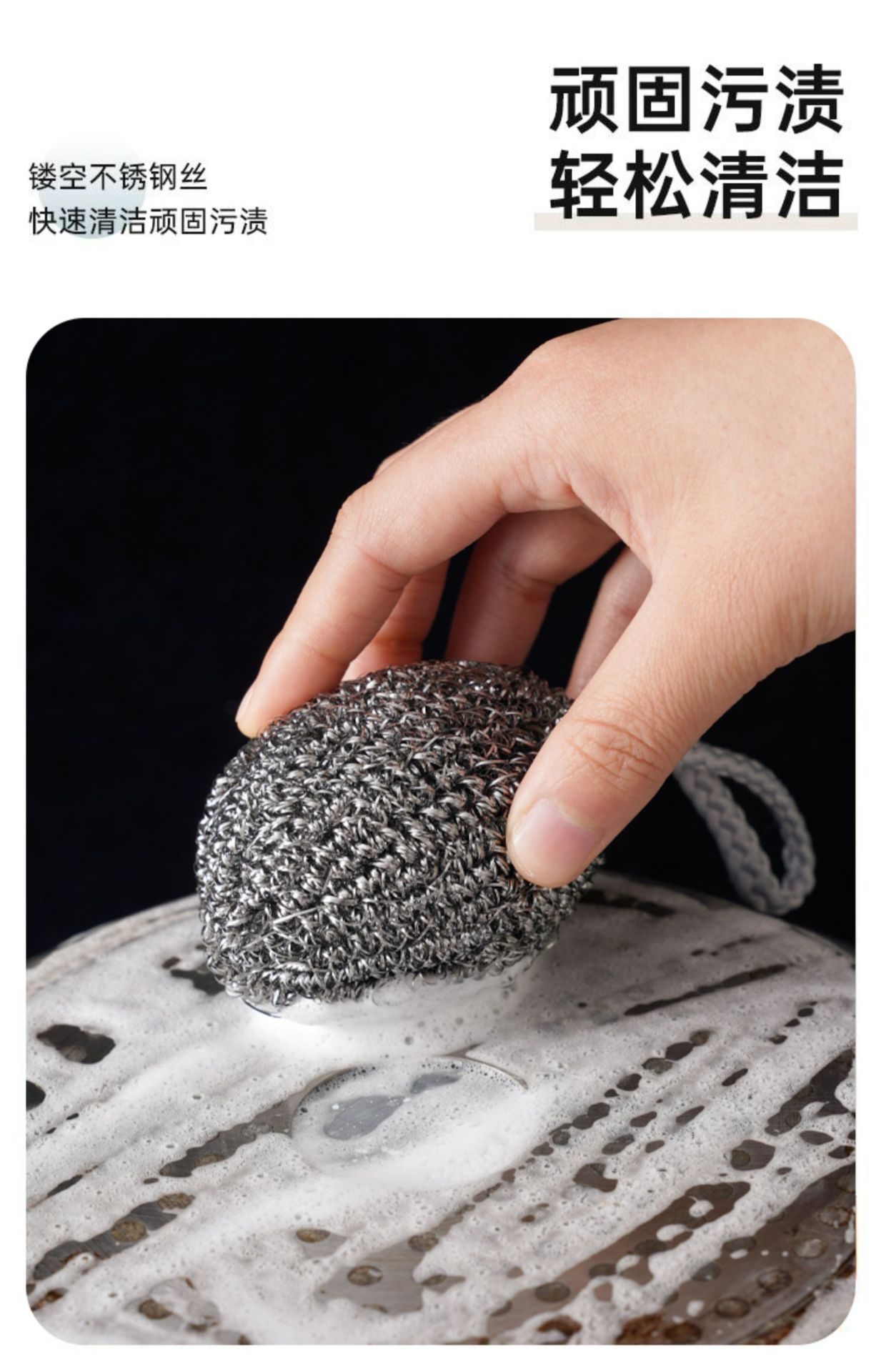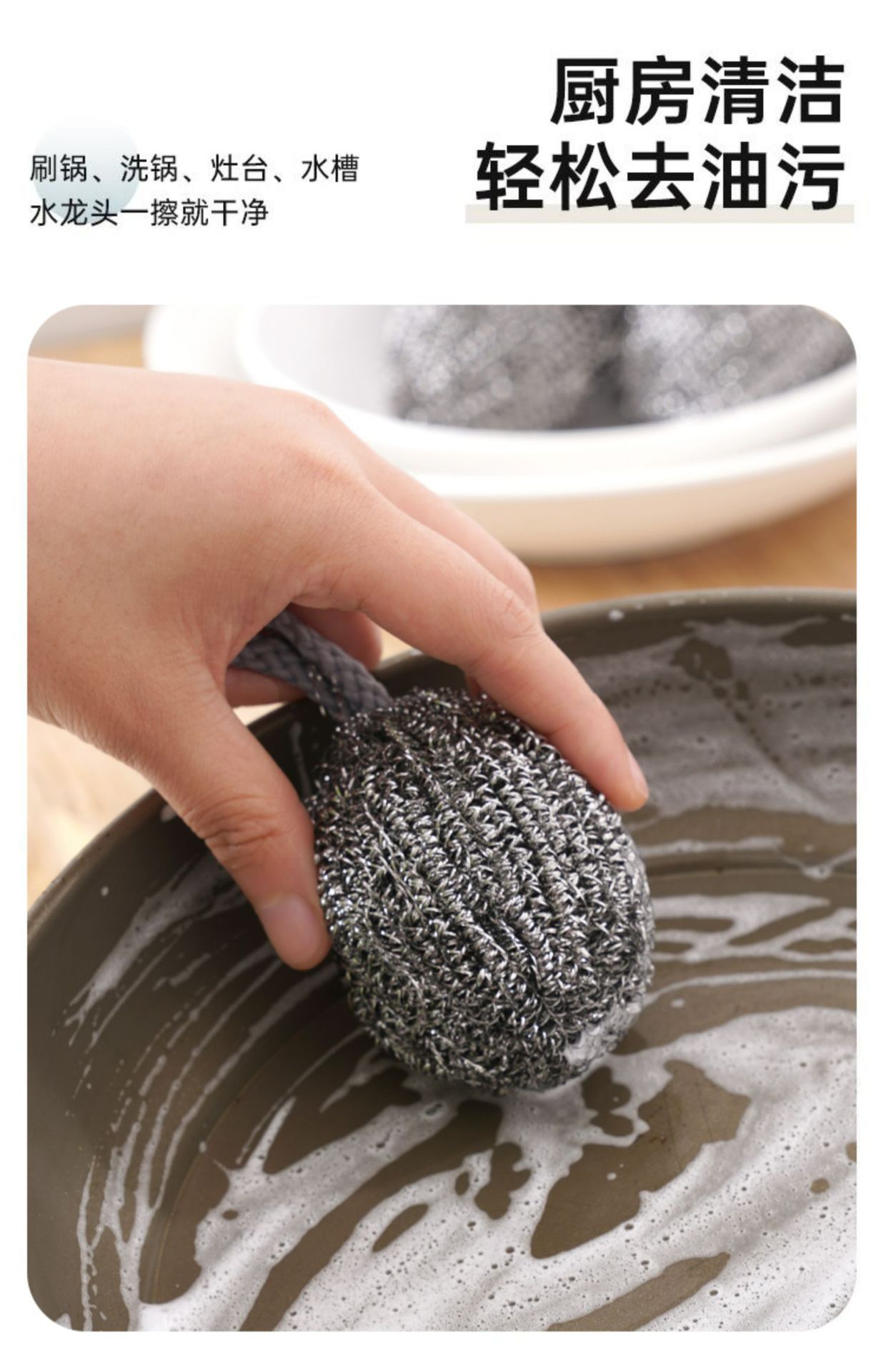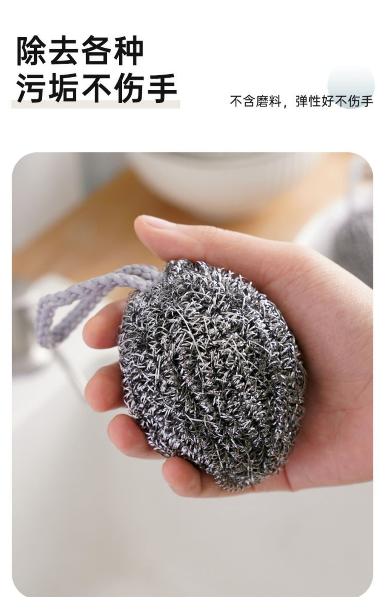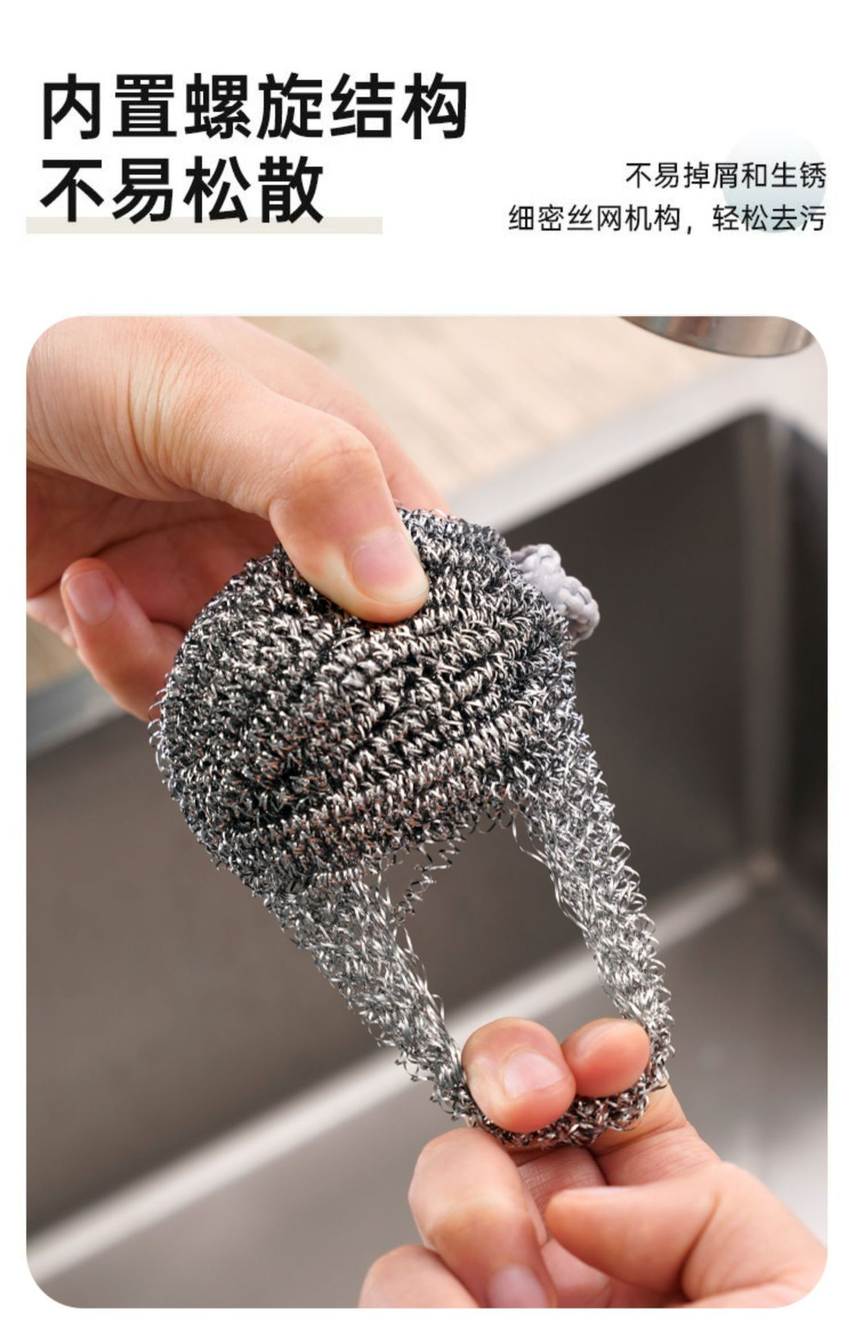 끈이있는 대형 암호화 스틸 와이어 볼 스테인레스 스틸 청소 공 주방 브러시 냄비 세척 설거지 오일 유물을 제거하는 것은 녹슬지 않습니다.스토어 가기