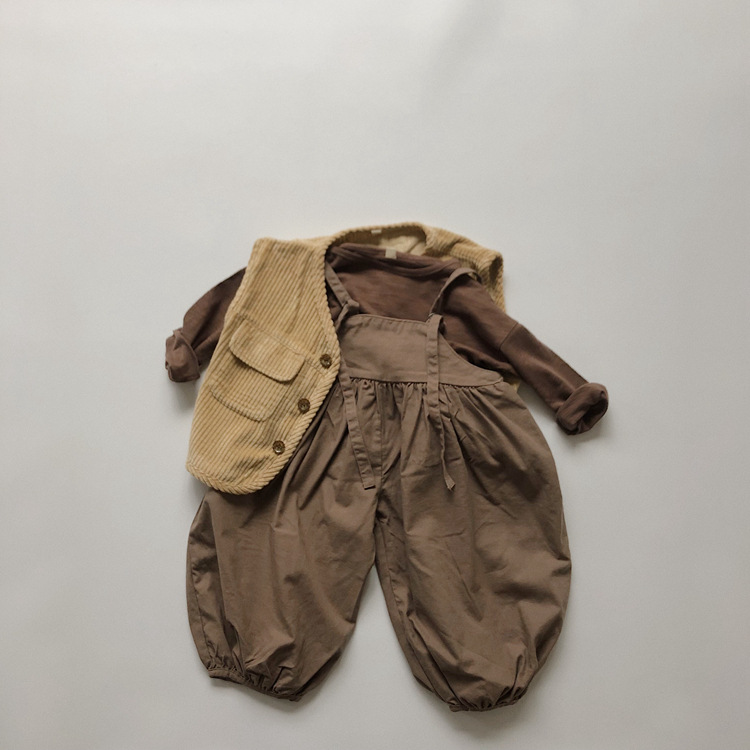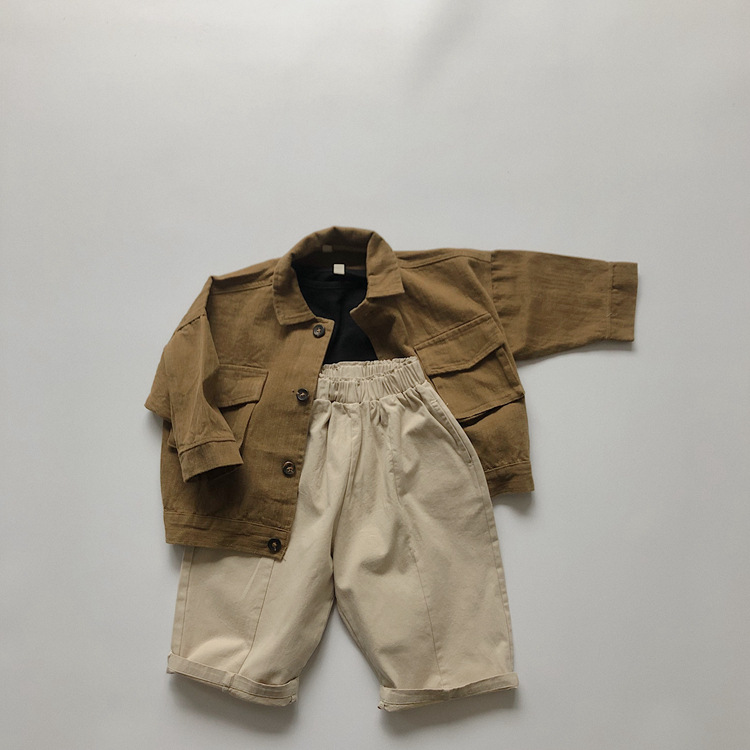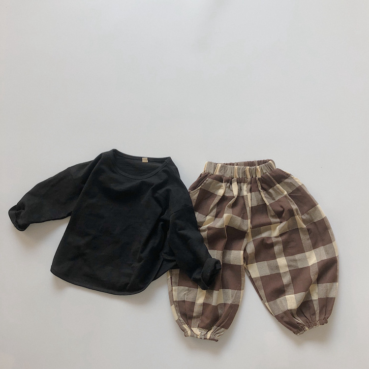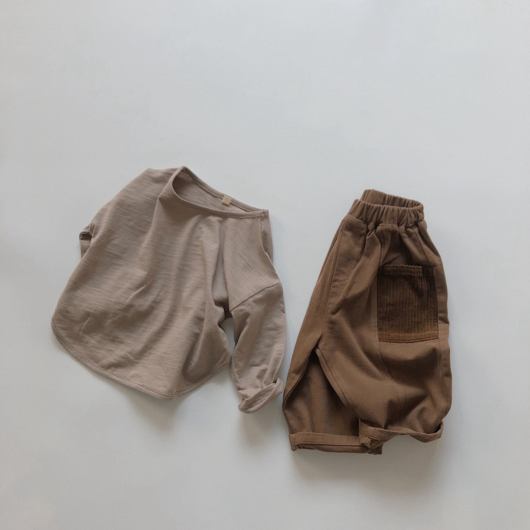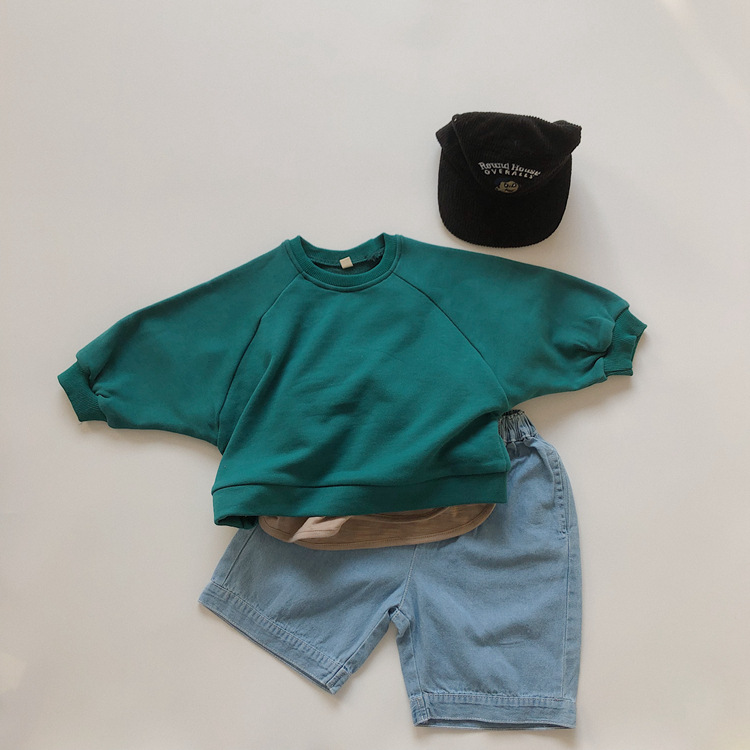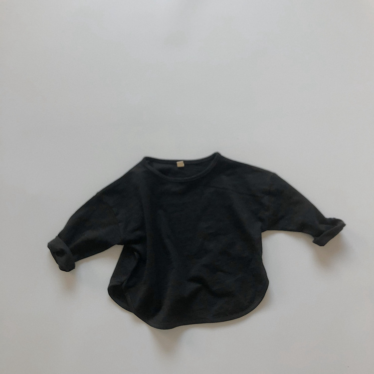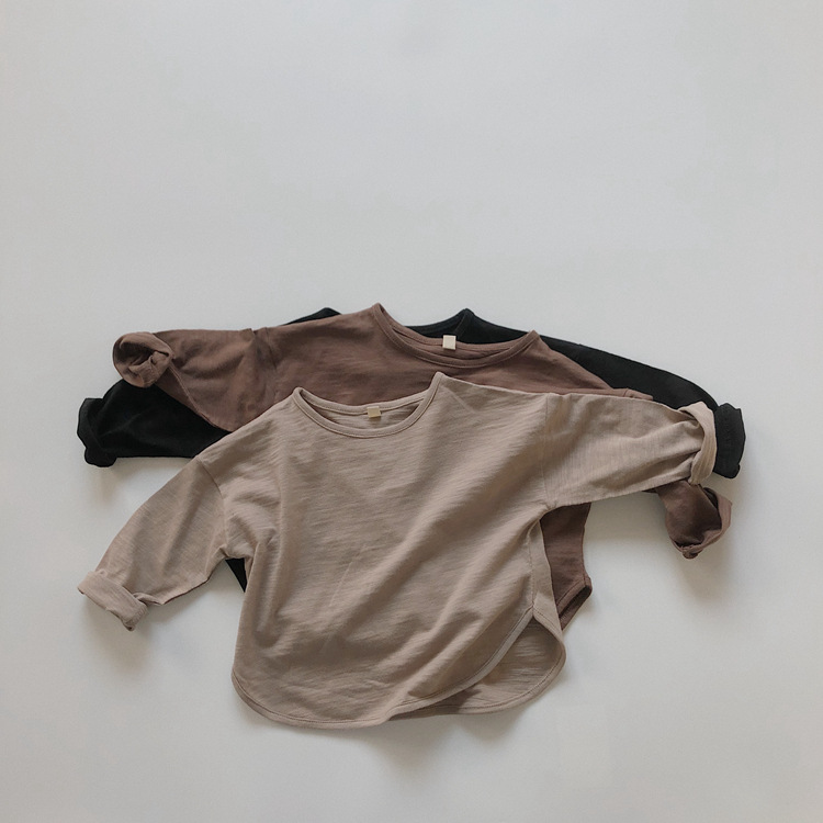 어린이 긴팔 티셔츠 봄과 가을 새 한국 스타일 레트로 슬럽 코튼 루즈베이스 셔츠 라운드 넥 탑
