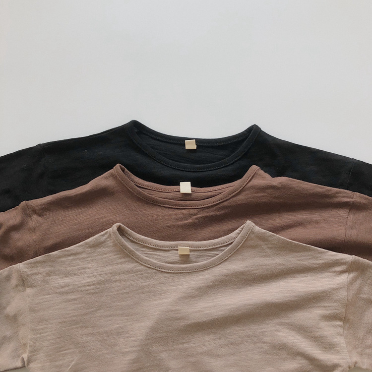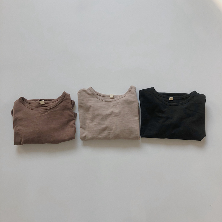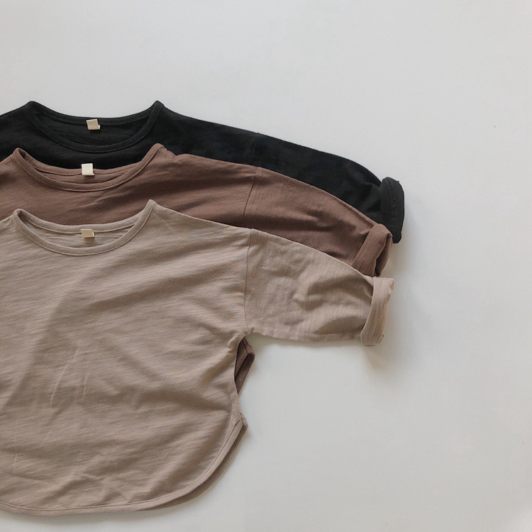 어린이 긴팔 티셔츠 봄과 가을 새 한국 스타일 레트로 슬럽 코튼 루즈베이스 셔츠 라운드 넥 탑스토어 가기