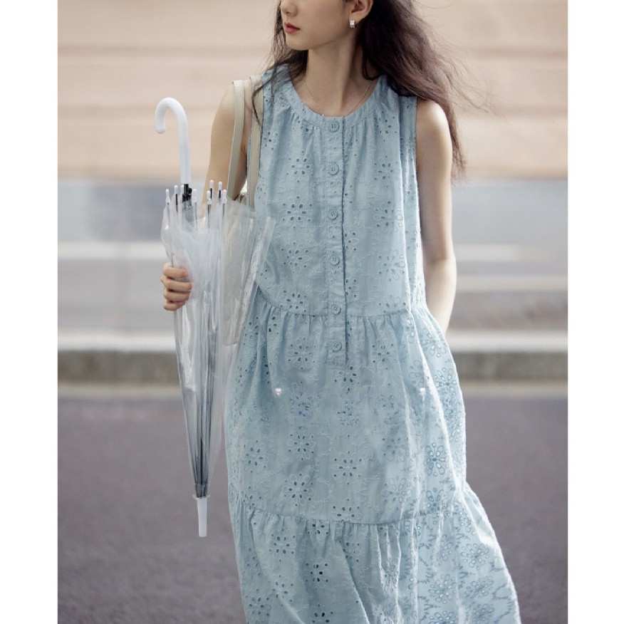 부드러운 예술적 텐셀 크로 셰 뜨개질 빈 블루 조끼 원피스 여성 휴일 원피스 느슨한 원피스스토어 가기
