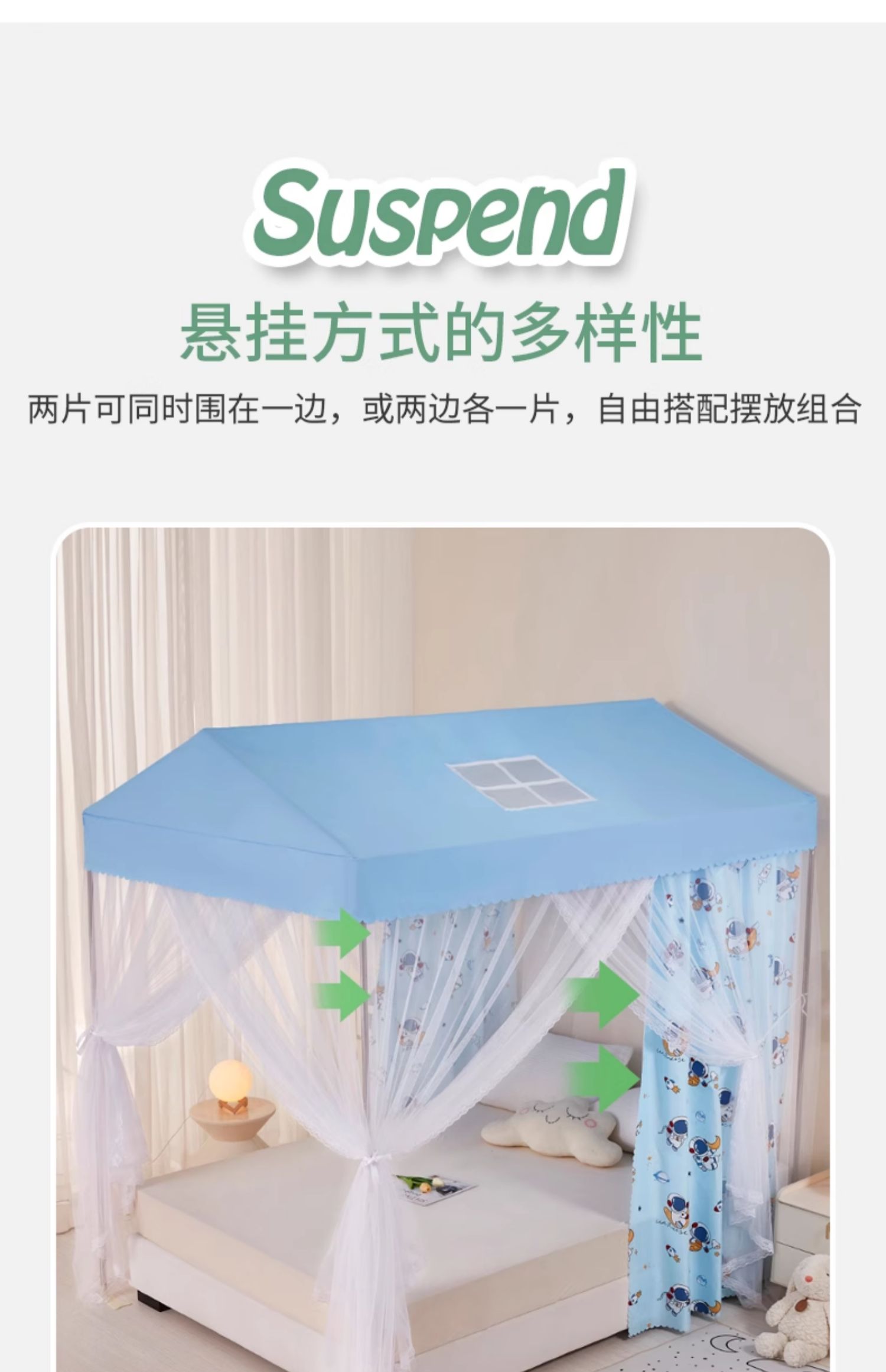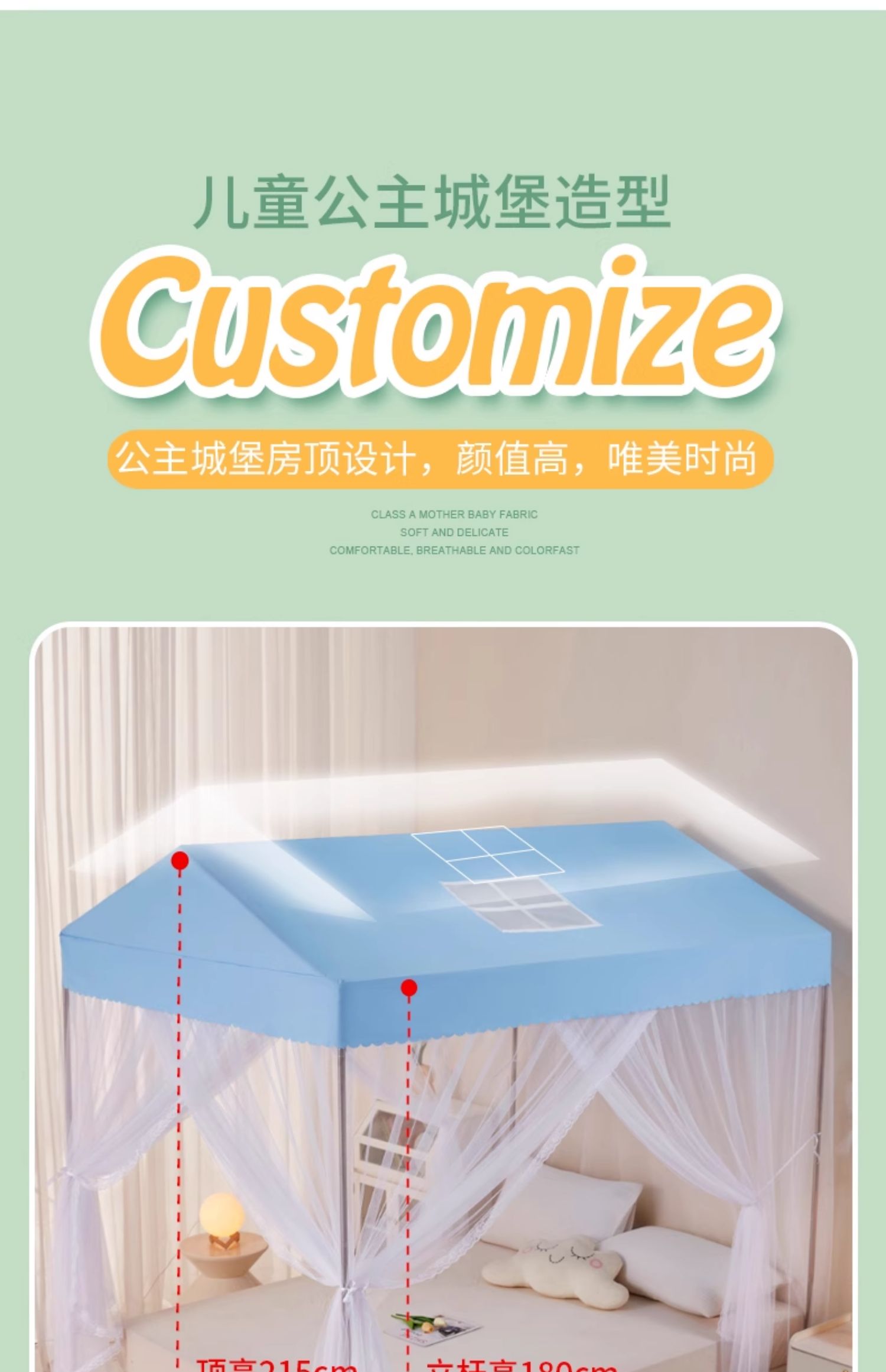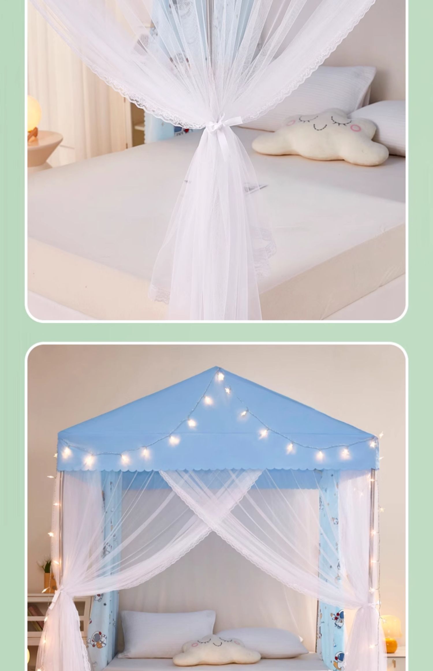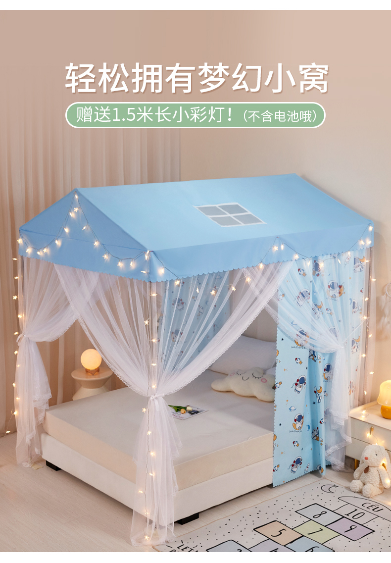 새로운 작은 집 바닥에서 천장까지의 침대 커튼, 빛 차단 침대 커튼, 공주 스타일 텐트, 어린이 모기장, 소녀의 가정용 모기장