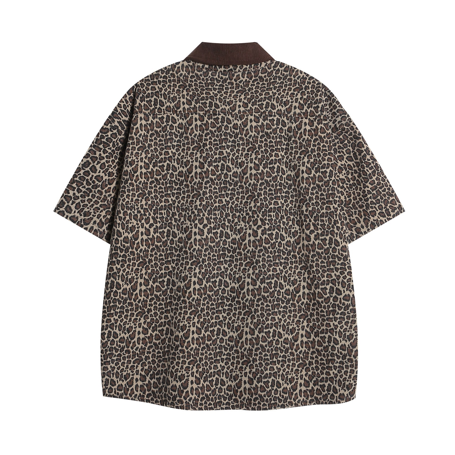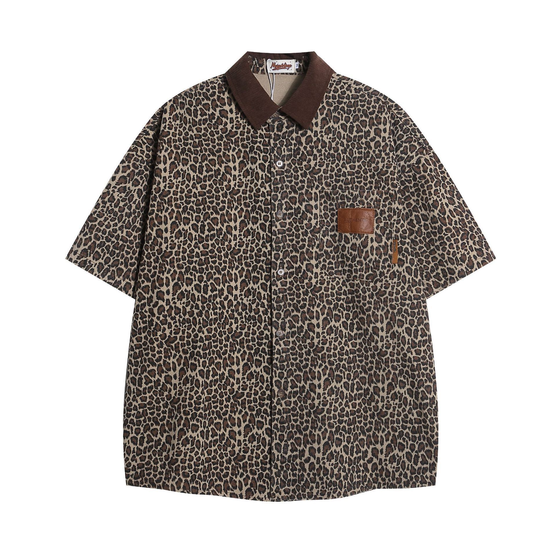 미국 스트리트 트렌드 레오파드 무늬 짧은 소매 셔츠 남성과 여성의 패션 성격 캐주얼 느슨한 연인 셔츠 얇은 재킷