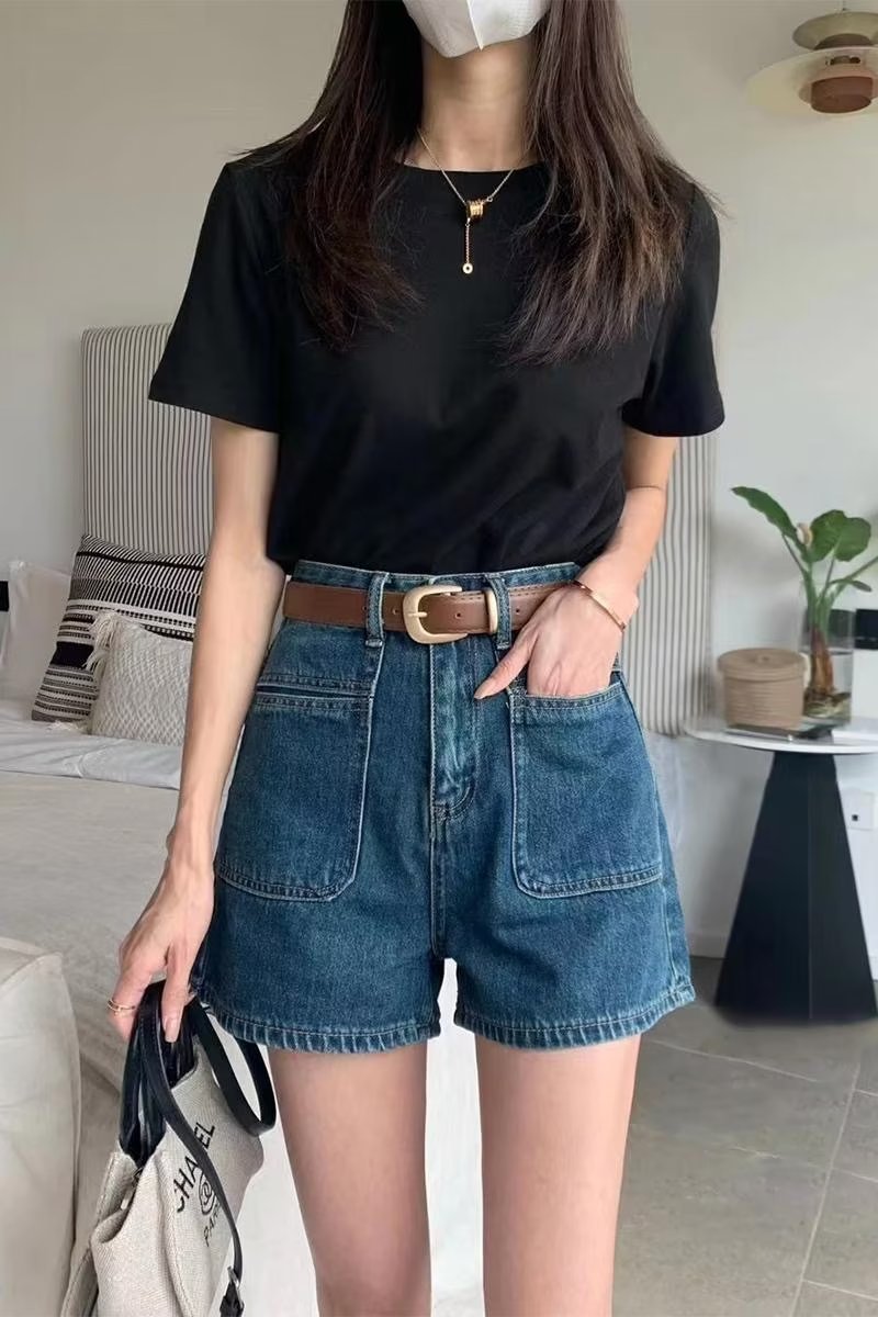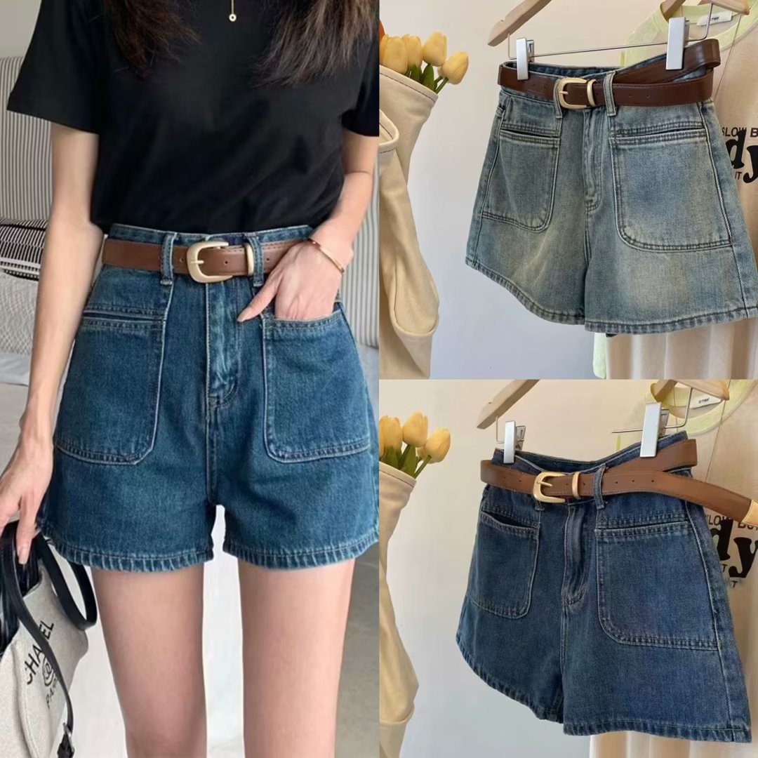 간단한 더블 포켓 데님 반바지 여성의 2023 여름 새로운 높은 허리 슬리밍 넓은 다리 포켓 디자인 A-워드 핫 바지스토어 가기