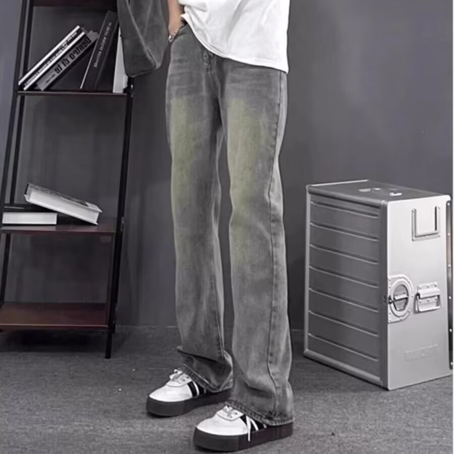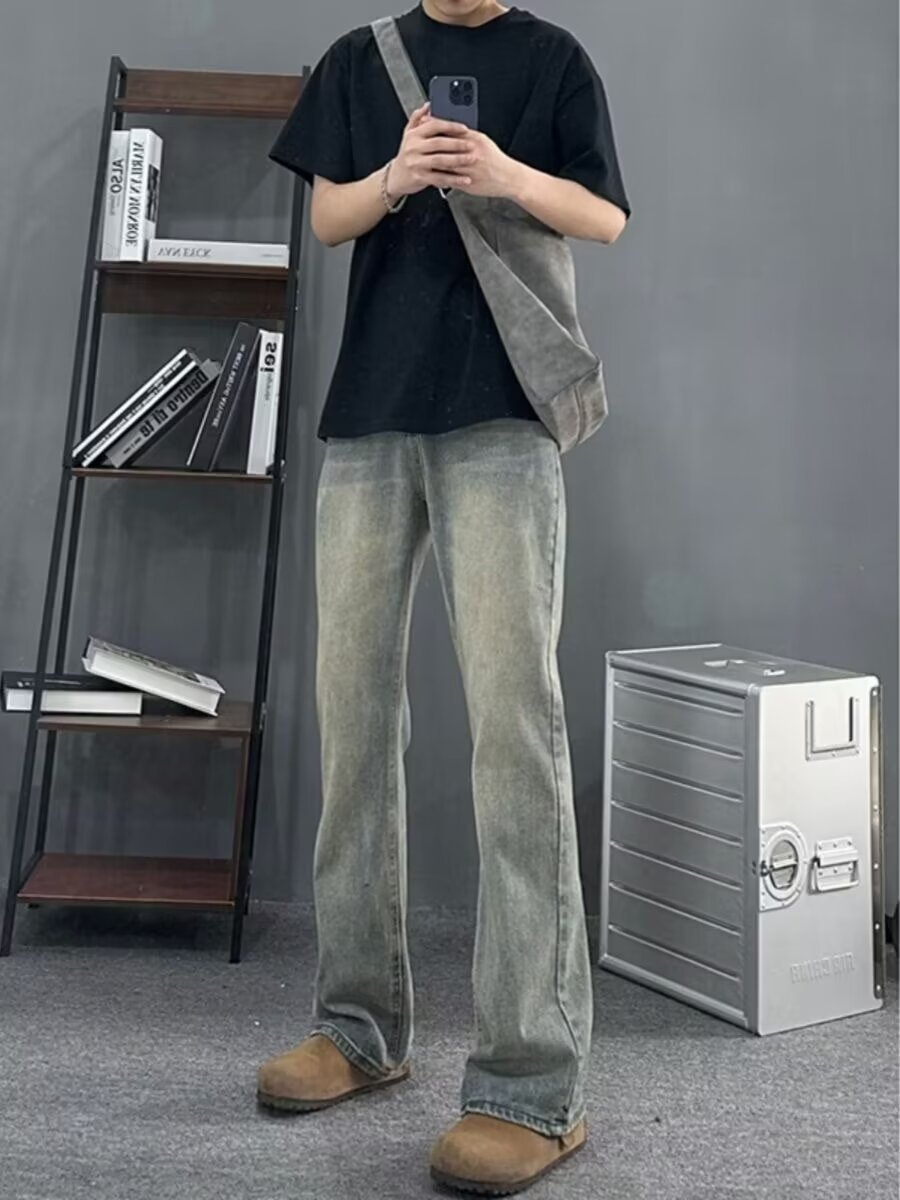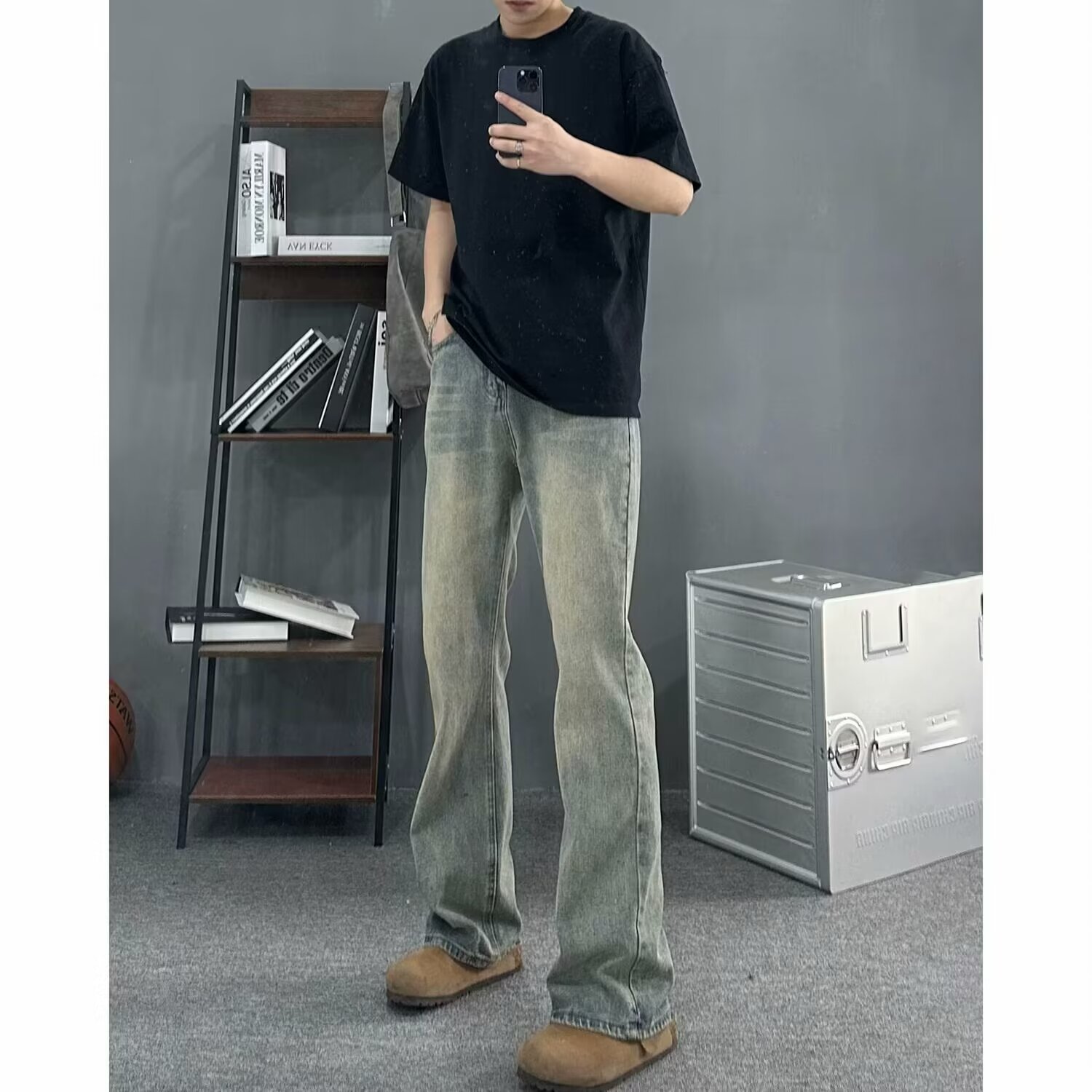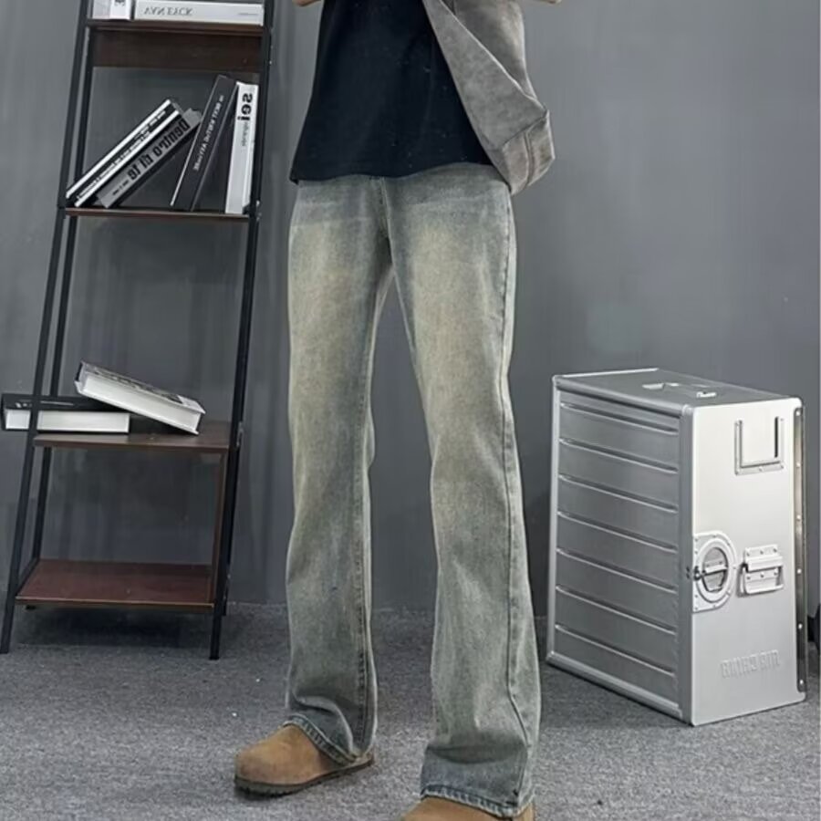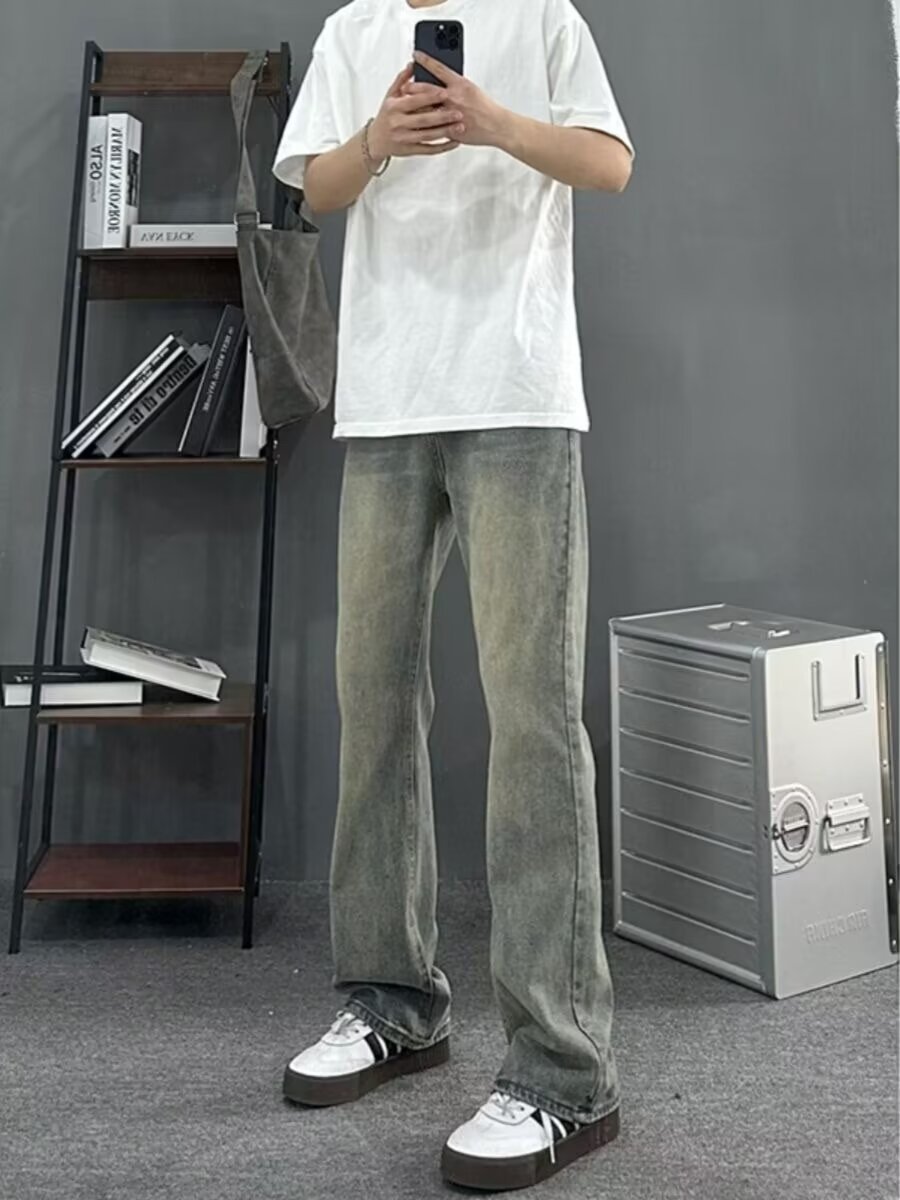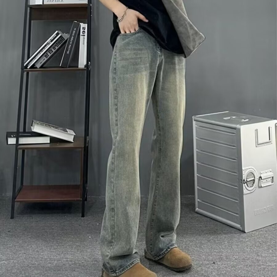 남아용 레트로 워싱 청바지, 하이 스트리트 바이브 옐로우 머드 스트레이트 팬츠, 레트로 다용도 캐주얼 바지, 내마모성 한국 버전스토어 가기