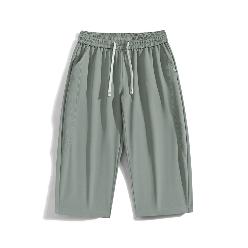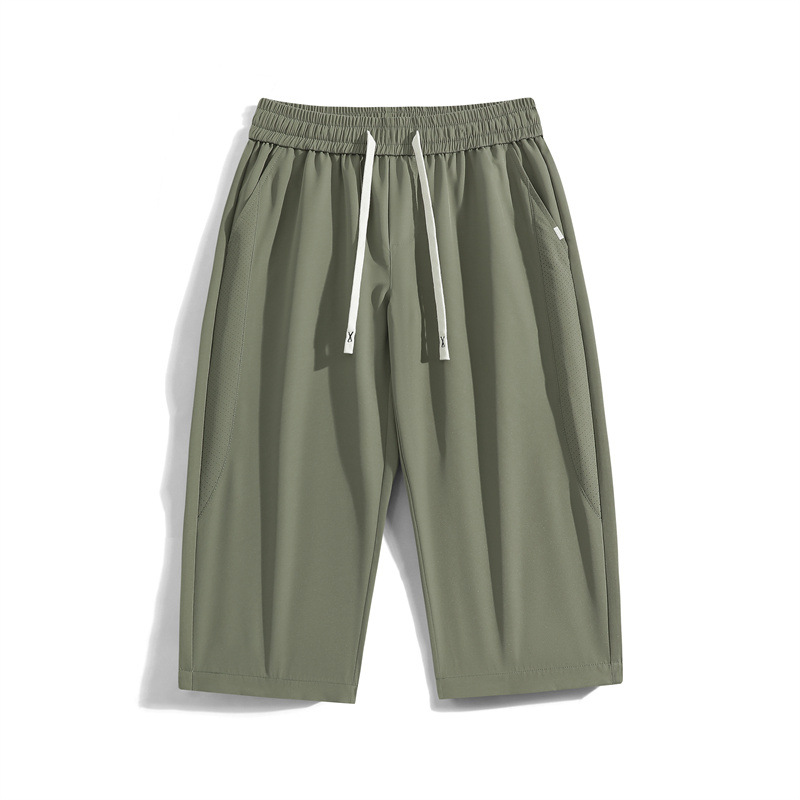 남성용 7부 바지 2026 여름 아이스 실크 얇은 루즈핏 와이드 스트레이트 팬츠 드레이프 속건 7부 캐주얼 바지 도매스토어 가기