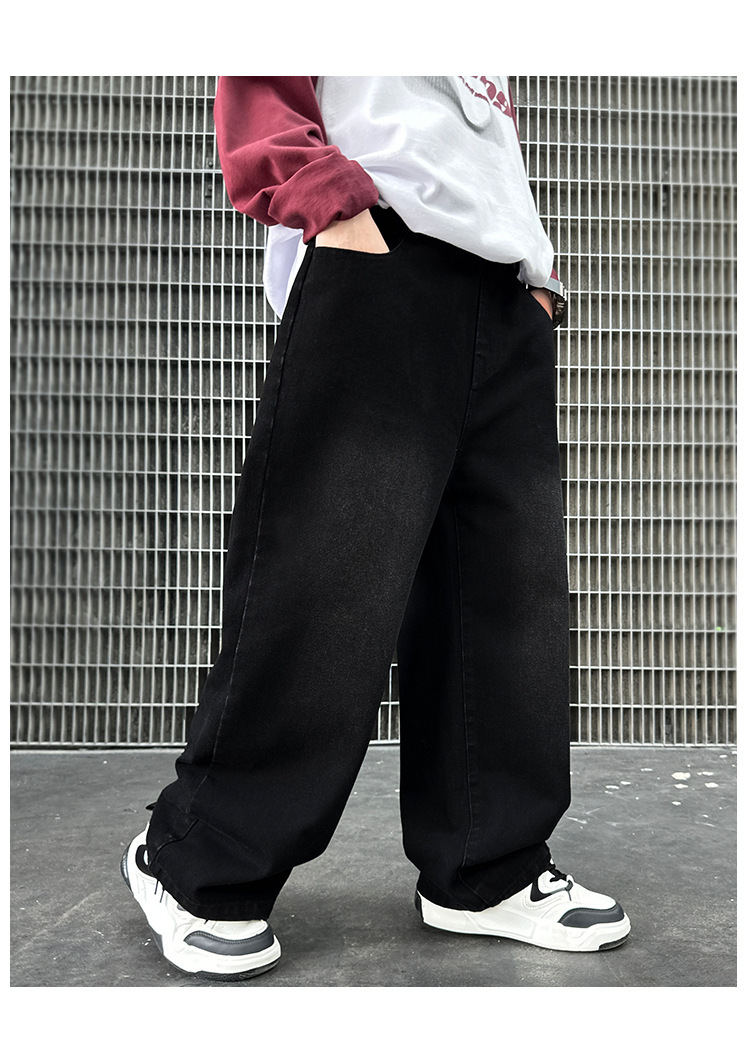 소년 청바지 봄, 가을 2025 새로운 미국 낙서 인쇄 와이드 레그 바지 어린이 스트리트 루즈 스트레이트 바지스토어 가기