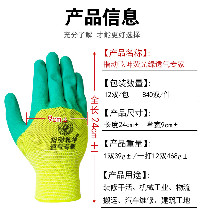 Zhijunqiankong 통기성 왕 내마모성 미끄럼 방지 작업 보호 고무 장갑 딥 코팅 여름 노동 보호 장갑스토어 가기