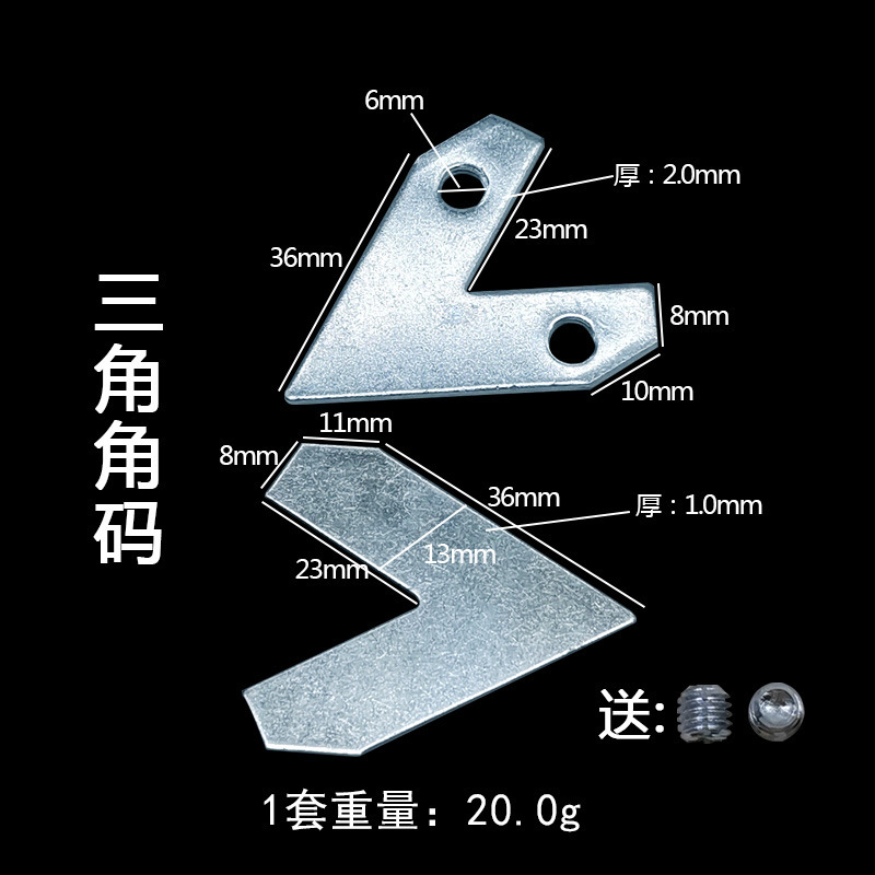 • 삼각형 코너 코드 세트에는 나사가 함께 제공됩니다.