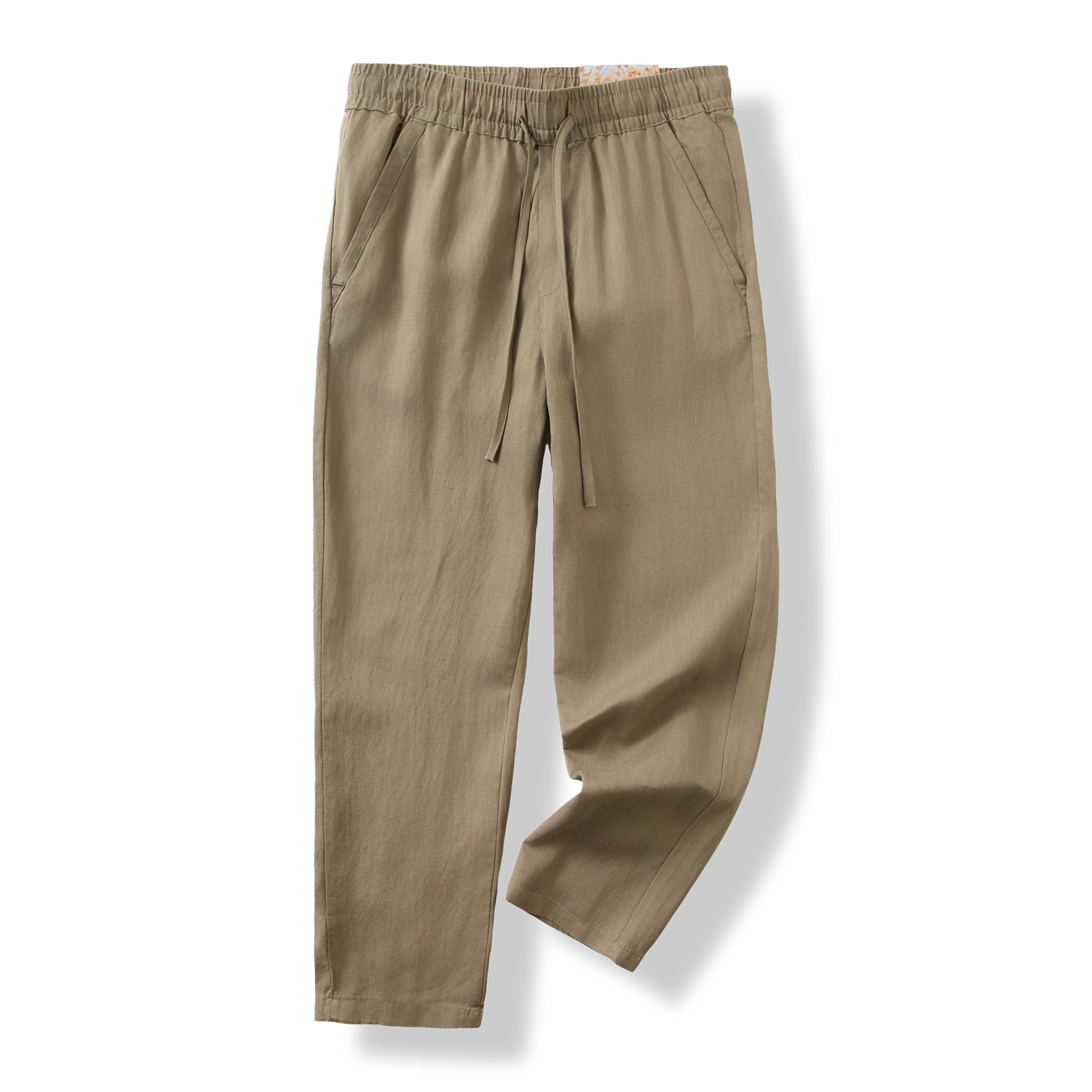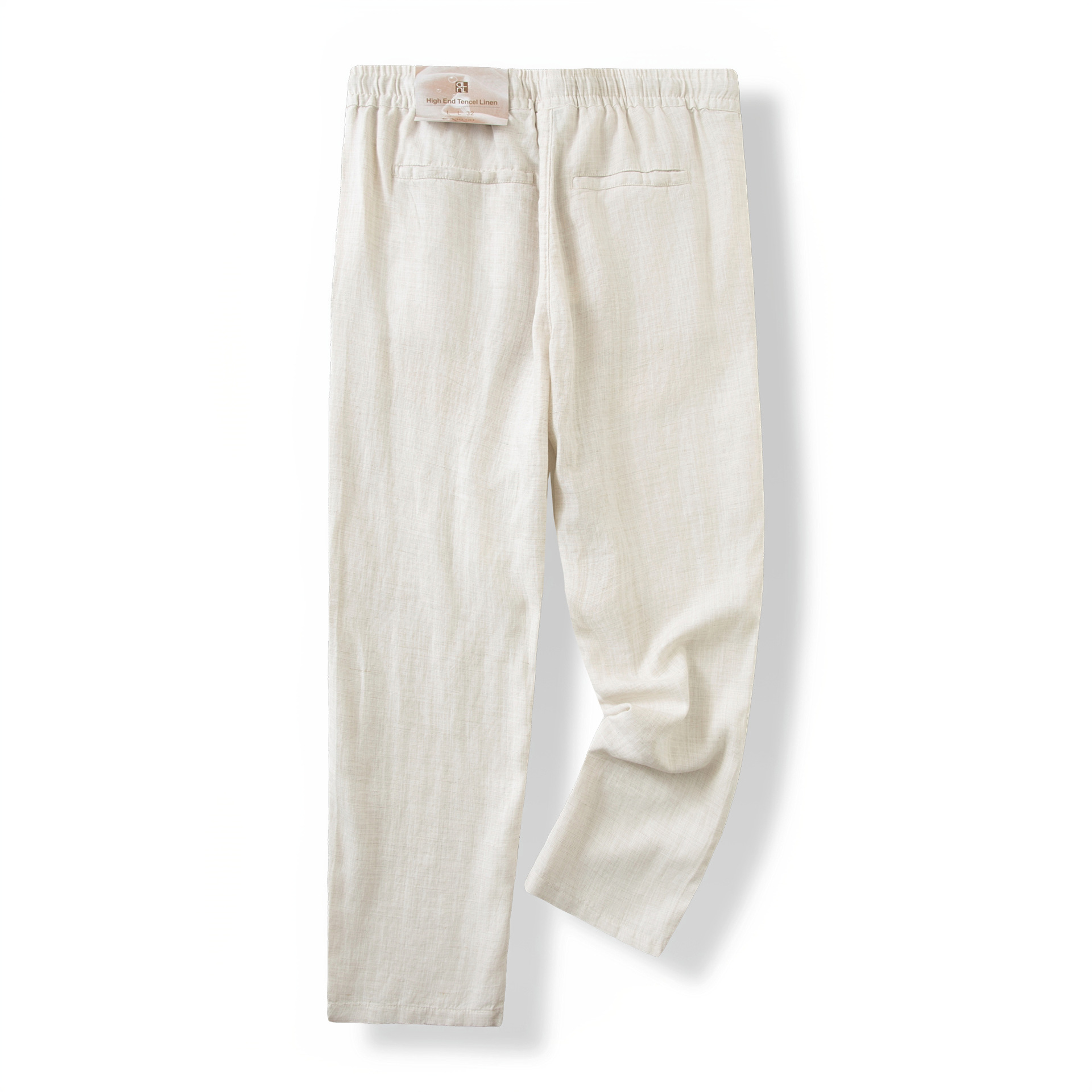 하이 엔드 린넨 팬츠 여름 남성 통기성 얇은 Tencel Lyocell 캐주얼 팬츠 탄성 허리 스트레이트 롱 팬츠