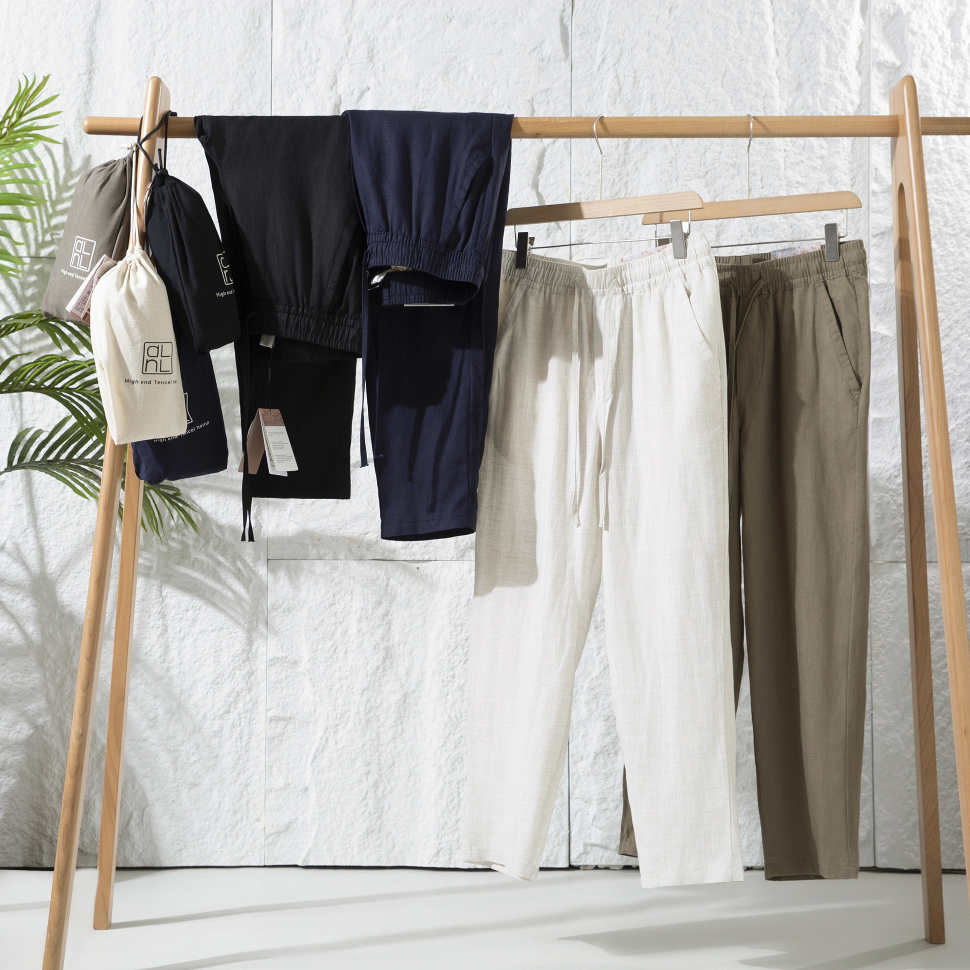 하이 엔드 린넨 팬츠 여름 남성 통기성 얇은 Tencel Lyocell 캐주얼 팬츠 탄성 허리 스트레이트 롱 팬츠스토어 가기