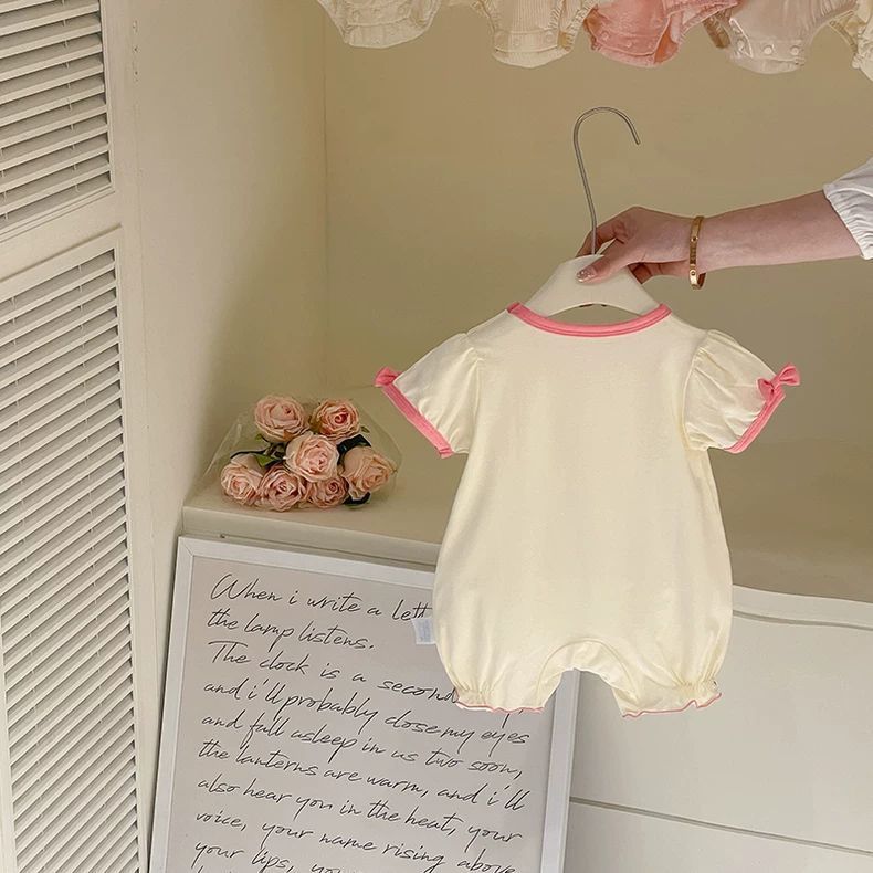 아기 옷 여름 새로운 얇은 유아 소녀 아기 순수 코튼 점프 슈트 백일 공주 반팔 가운