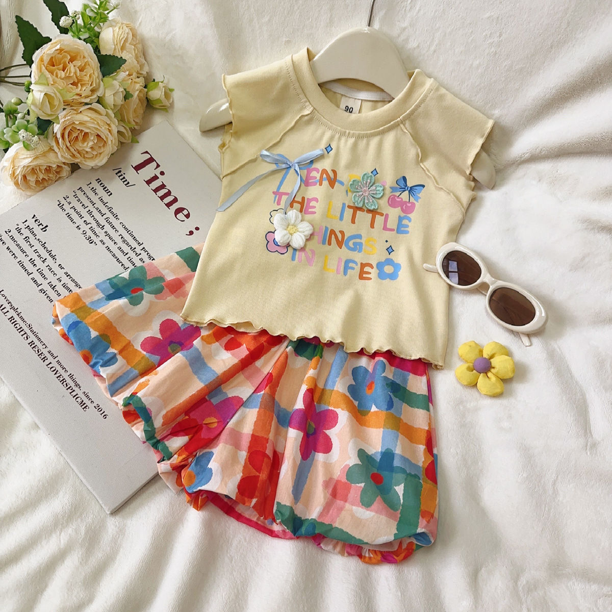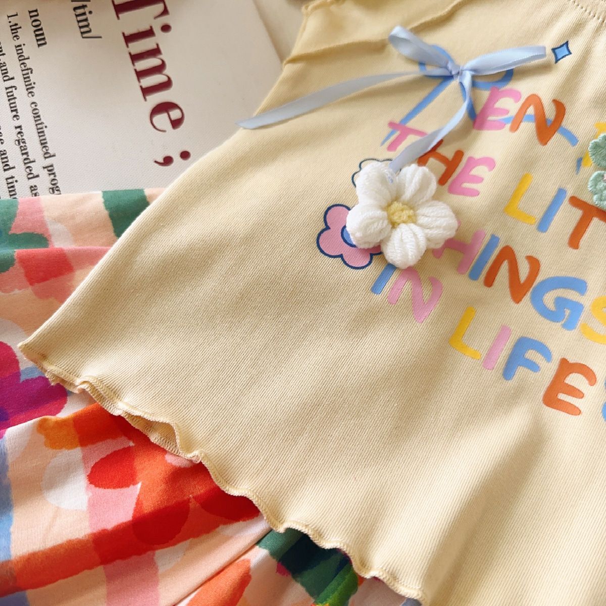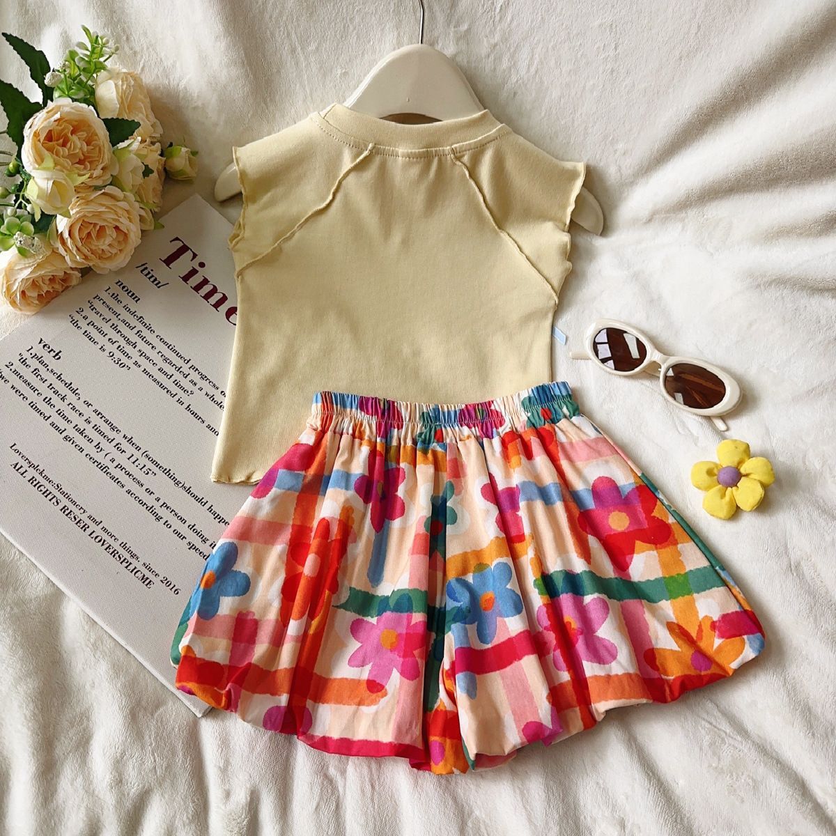 새로운 2025 여자 학교 스타일 반바지 세트 여름 서양 스타일 여름 셔츠 폭발 편지 투피스 트렌디