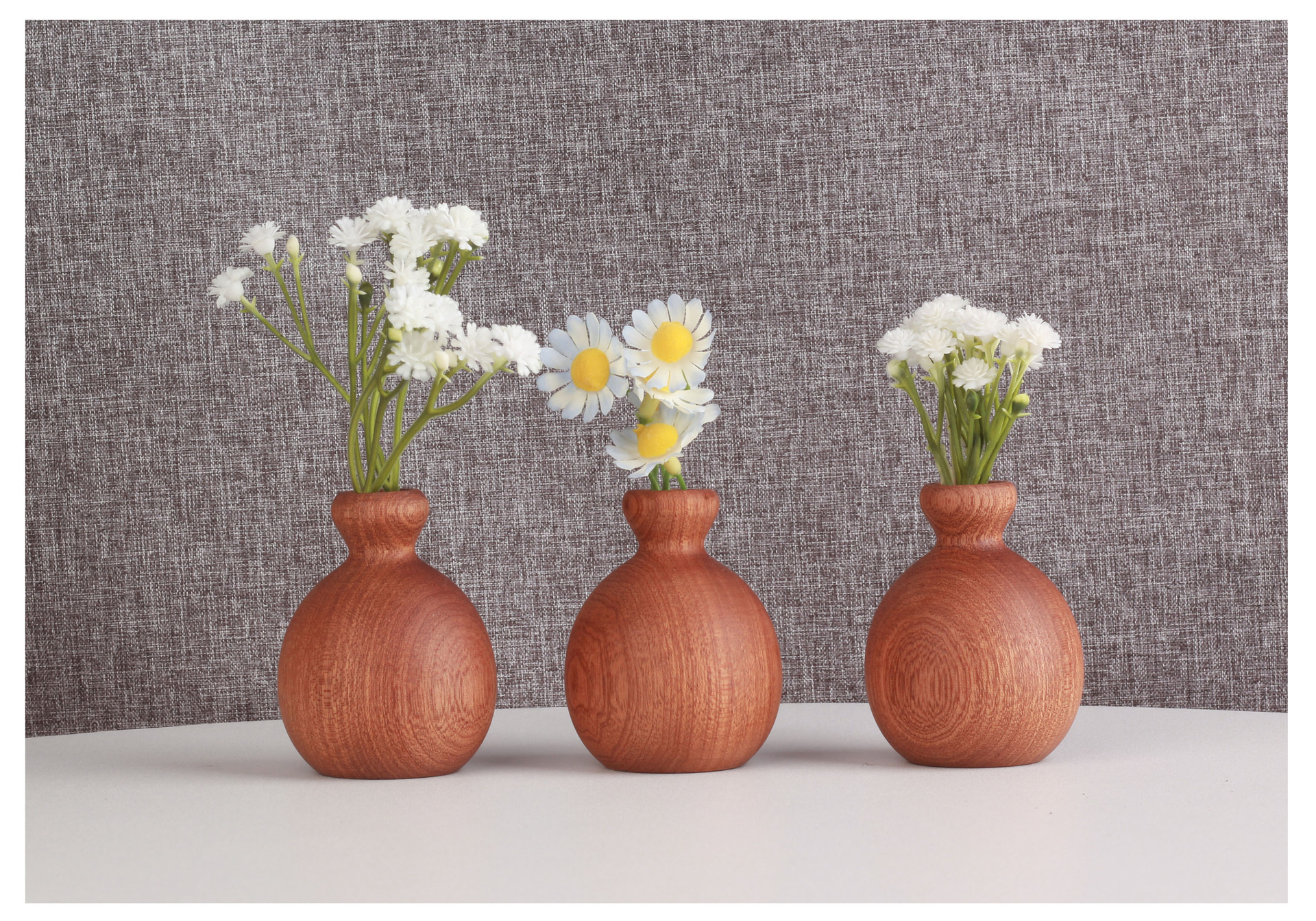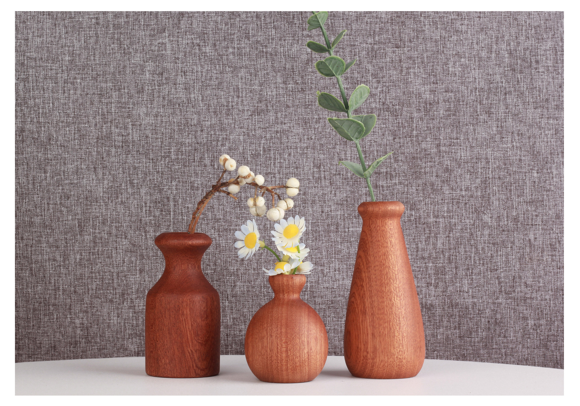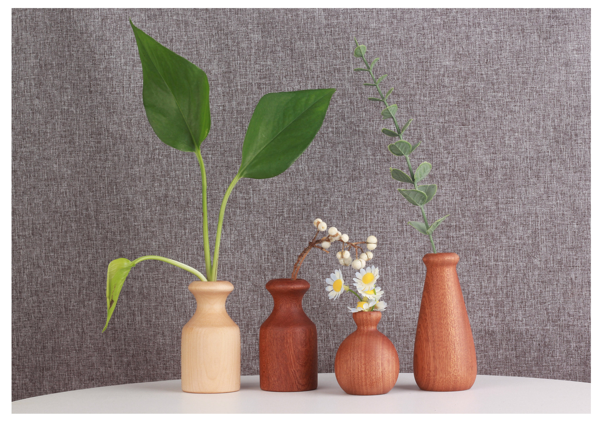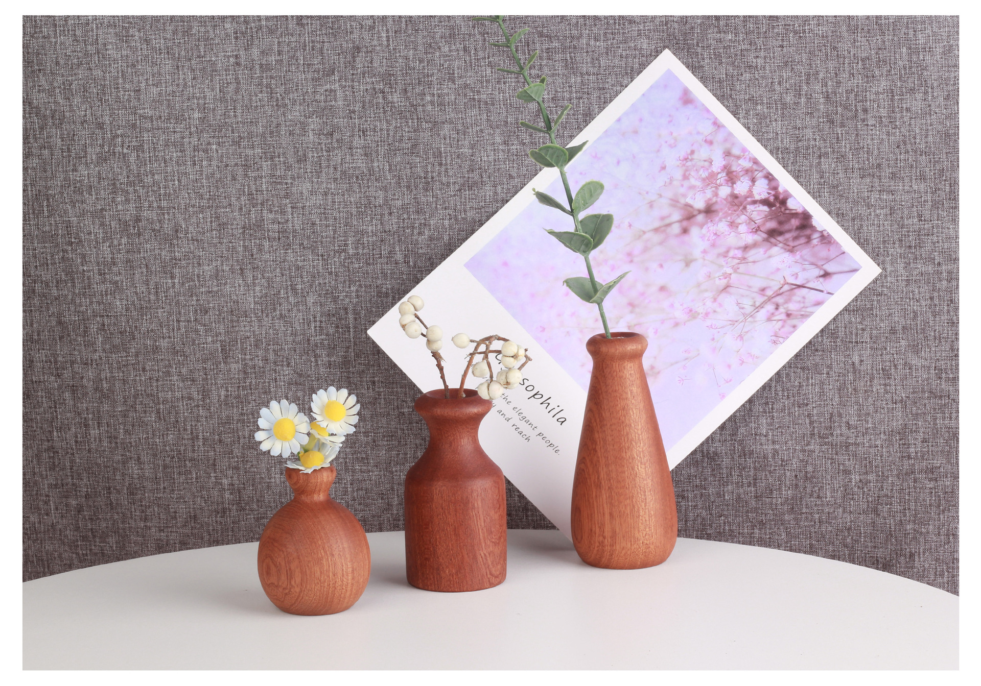 나무 손으로 만든 꽃 꽃병 단단한 나무 꽃 꽃병 데스크탑 장식 빈티지 수제 간단한 말린 꽃병 장식품 도매